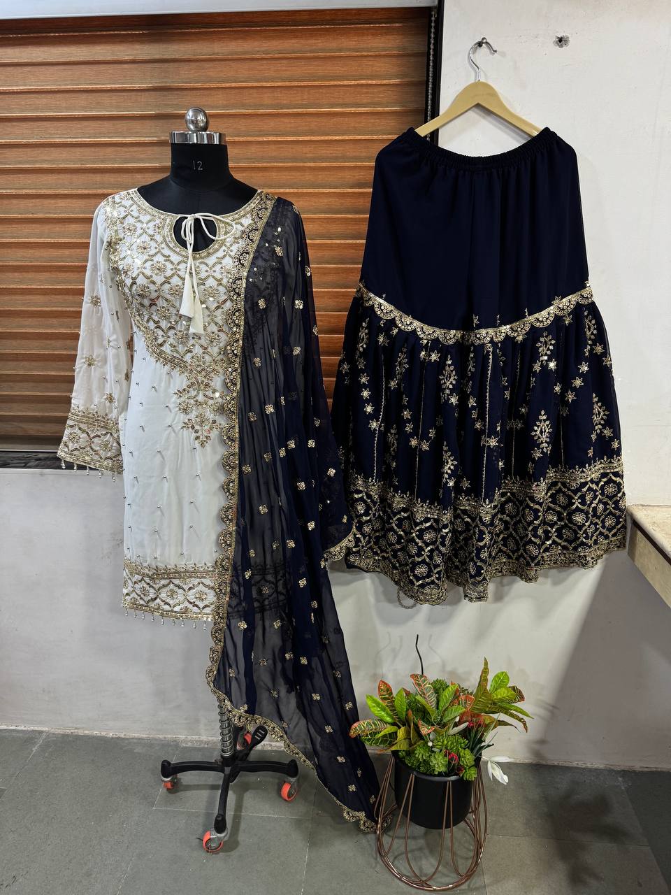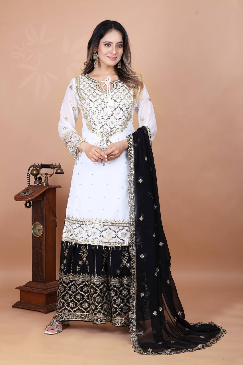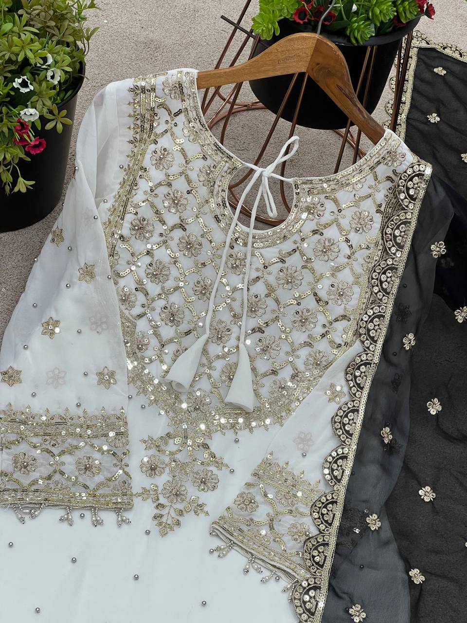 Admiring Black Color Heavy Faux Georgette With Embroidery Sequence Work Sharara Suit