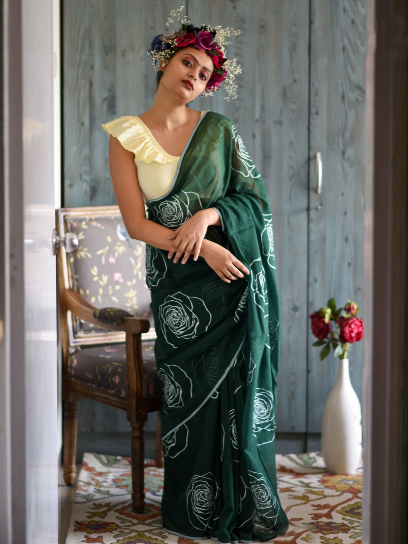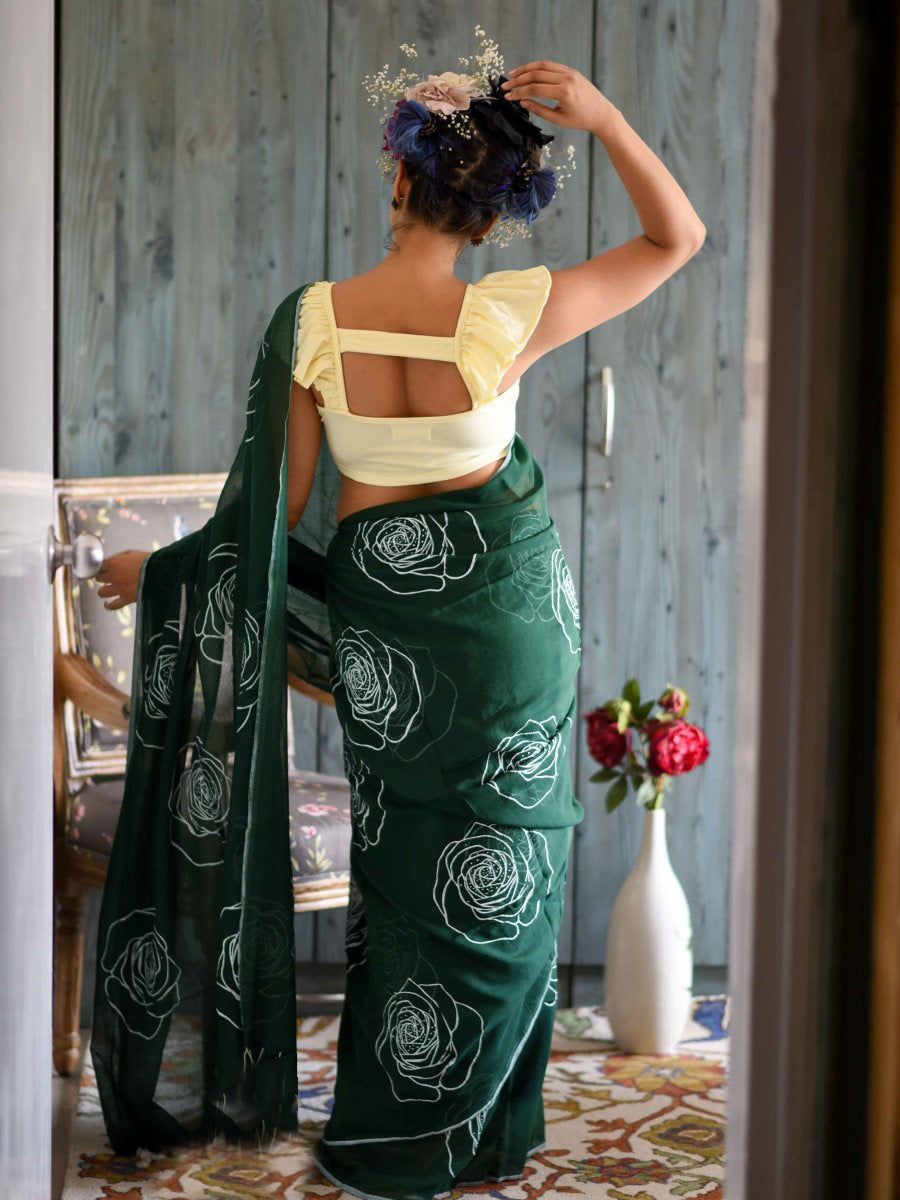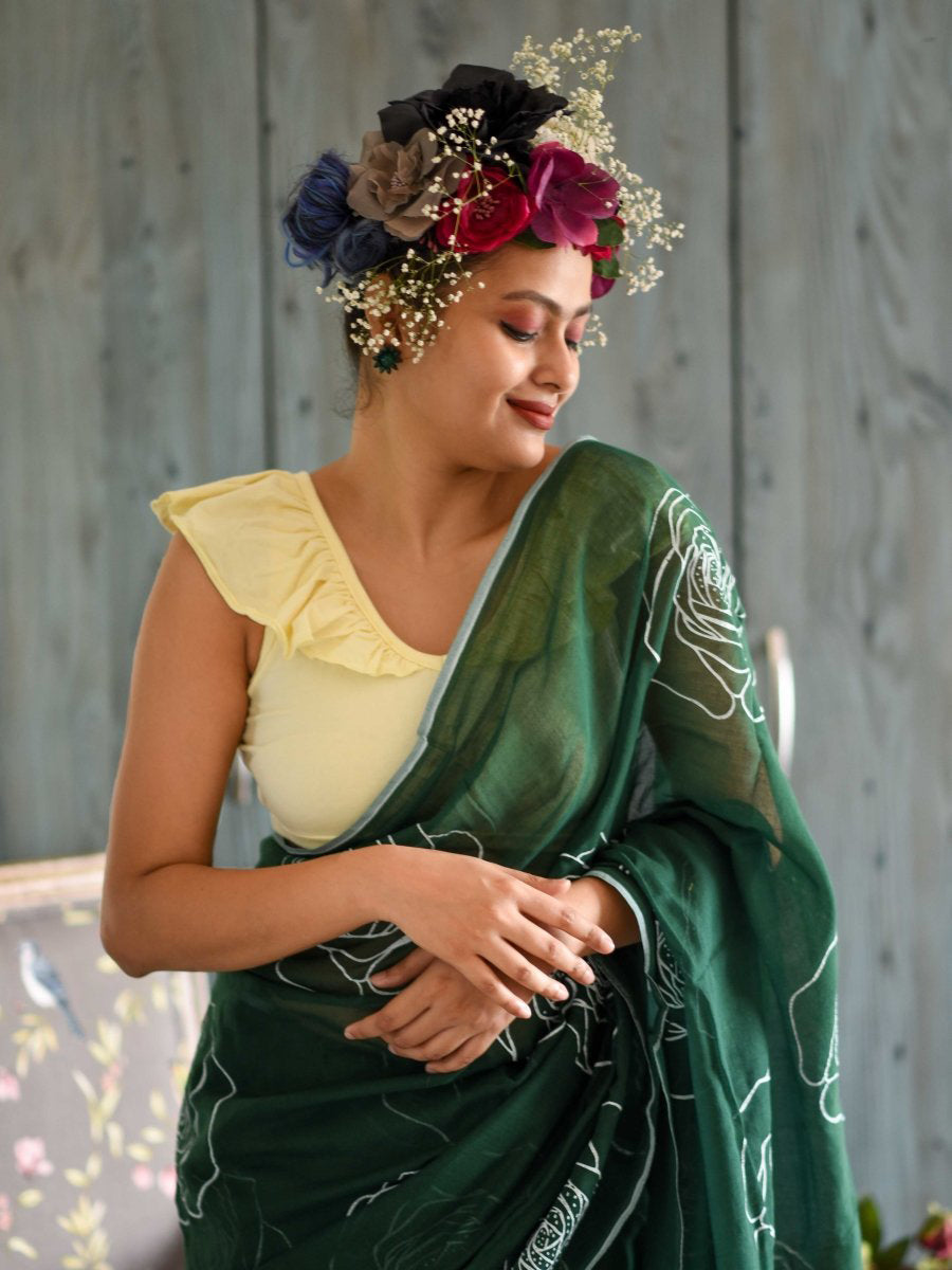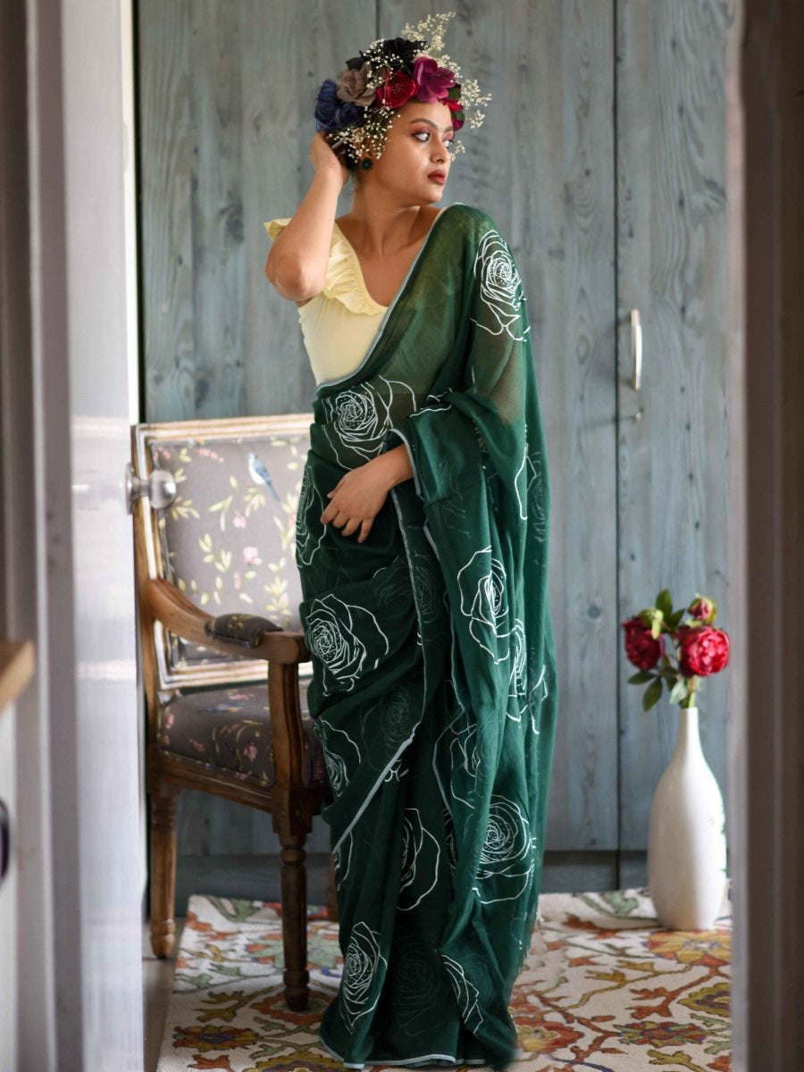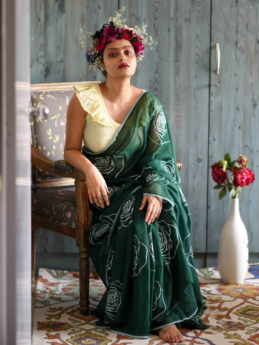 Alluring Green Color Pure Cotton Lilen With Digital Printed Designer Saree