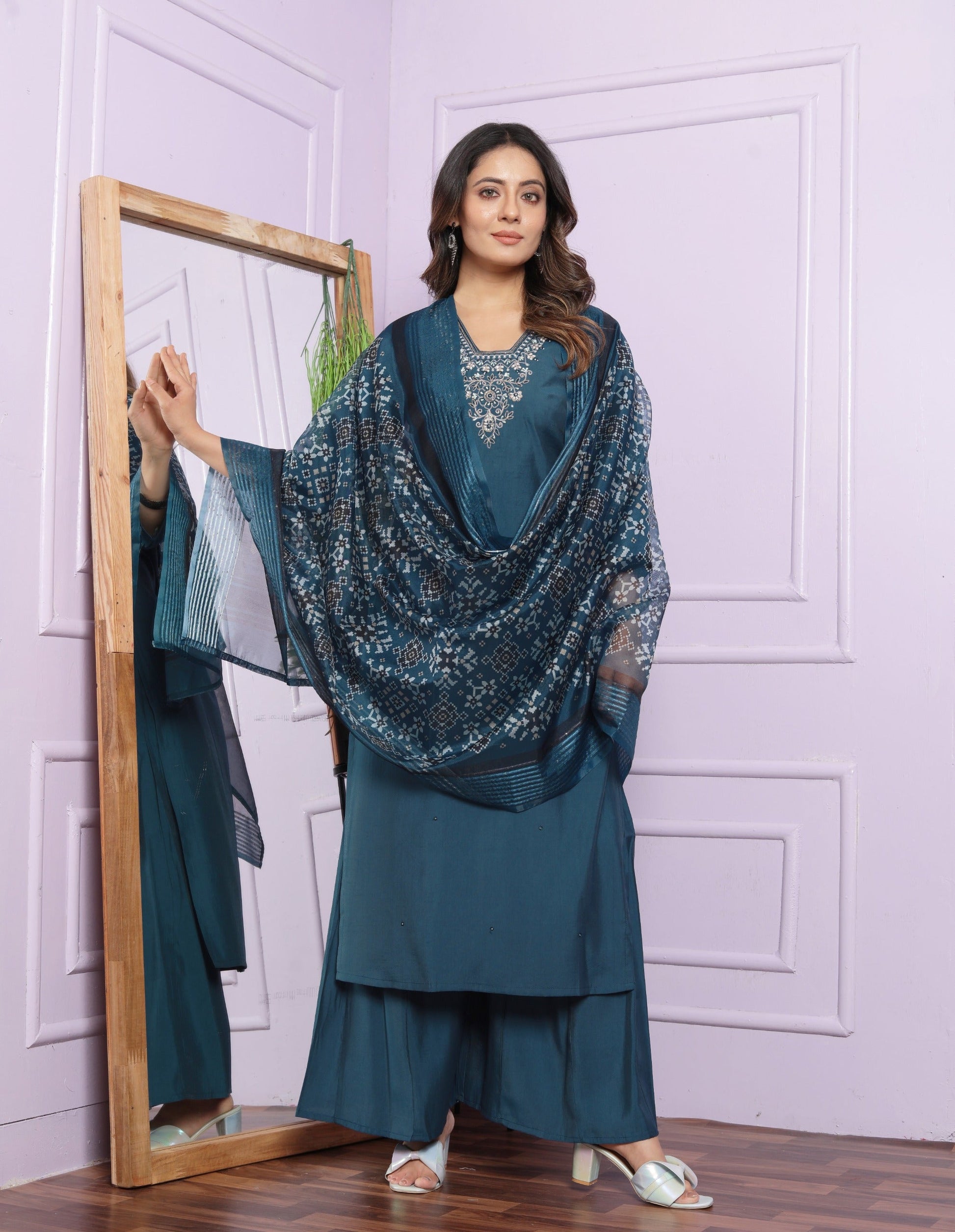 Style | V Neck, Straight Kurt With Divider Plazzo |