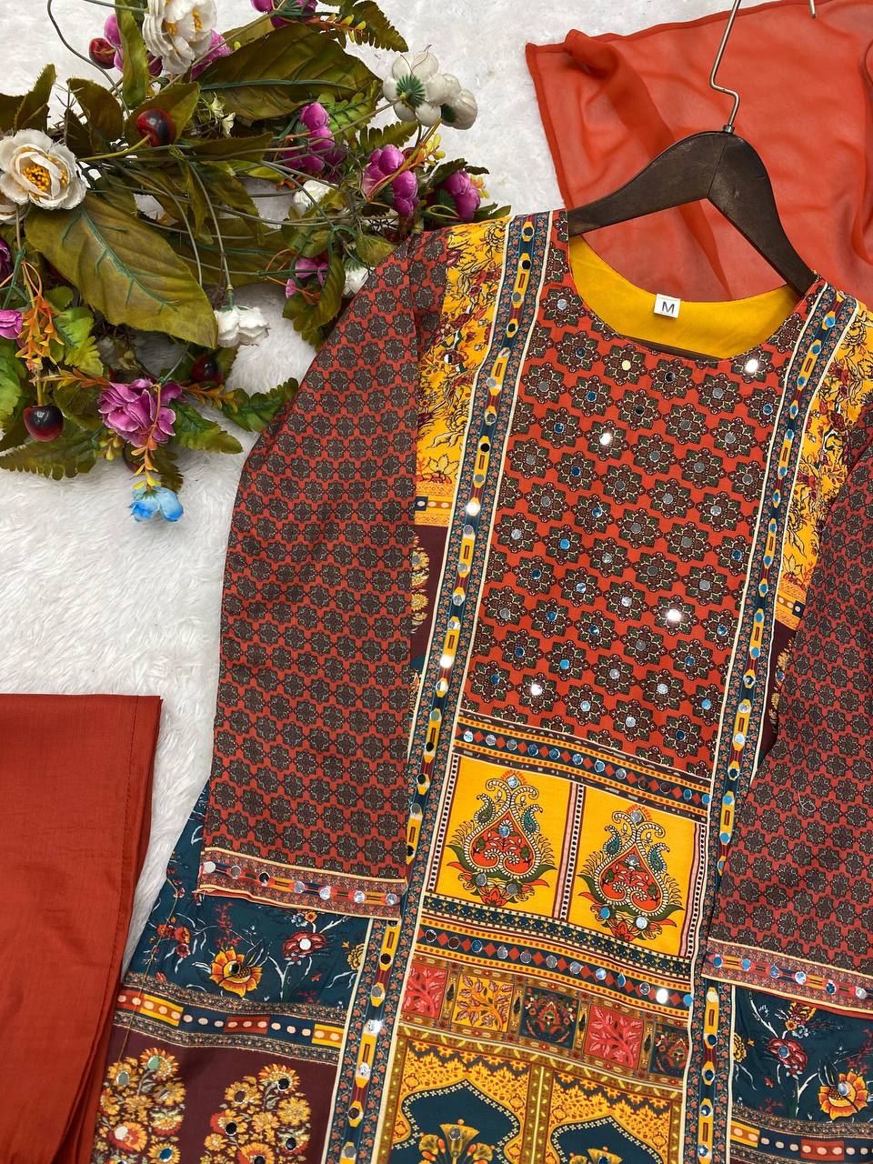 Attractive Red Color Multi Mirror Work Salwar Suit