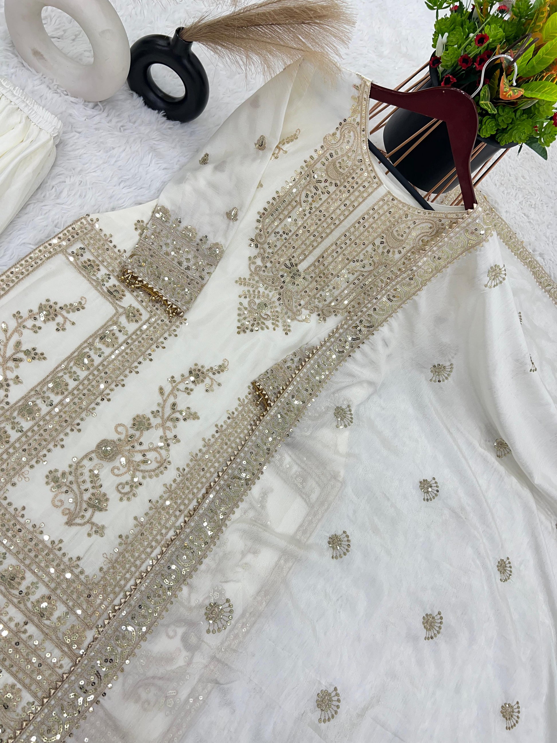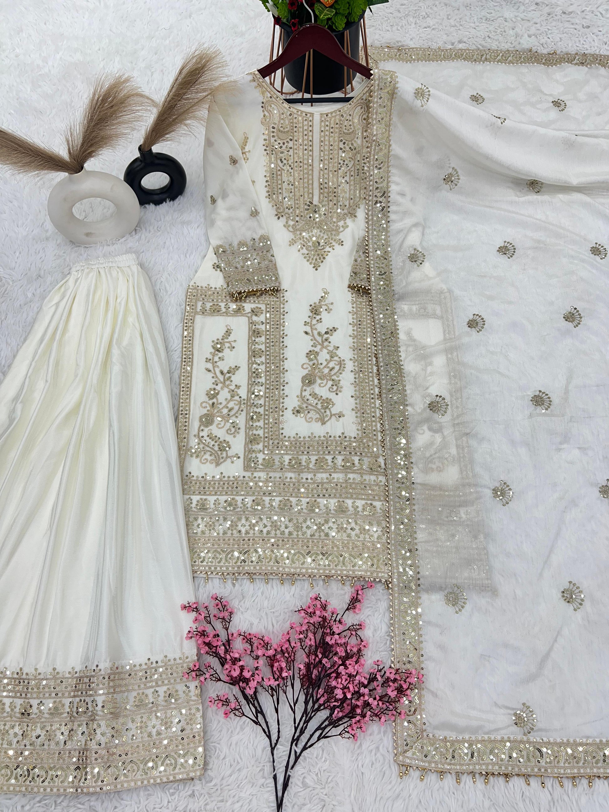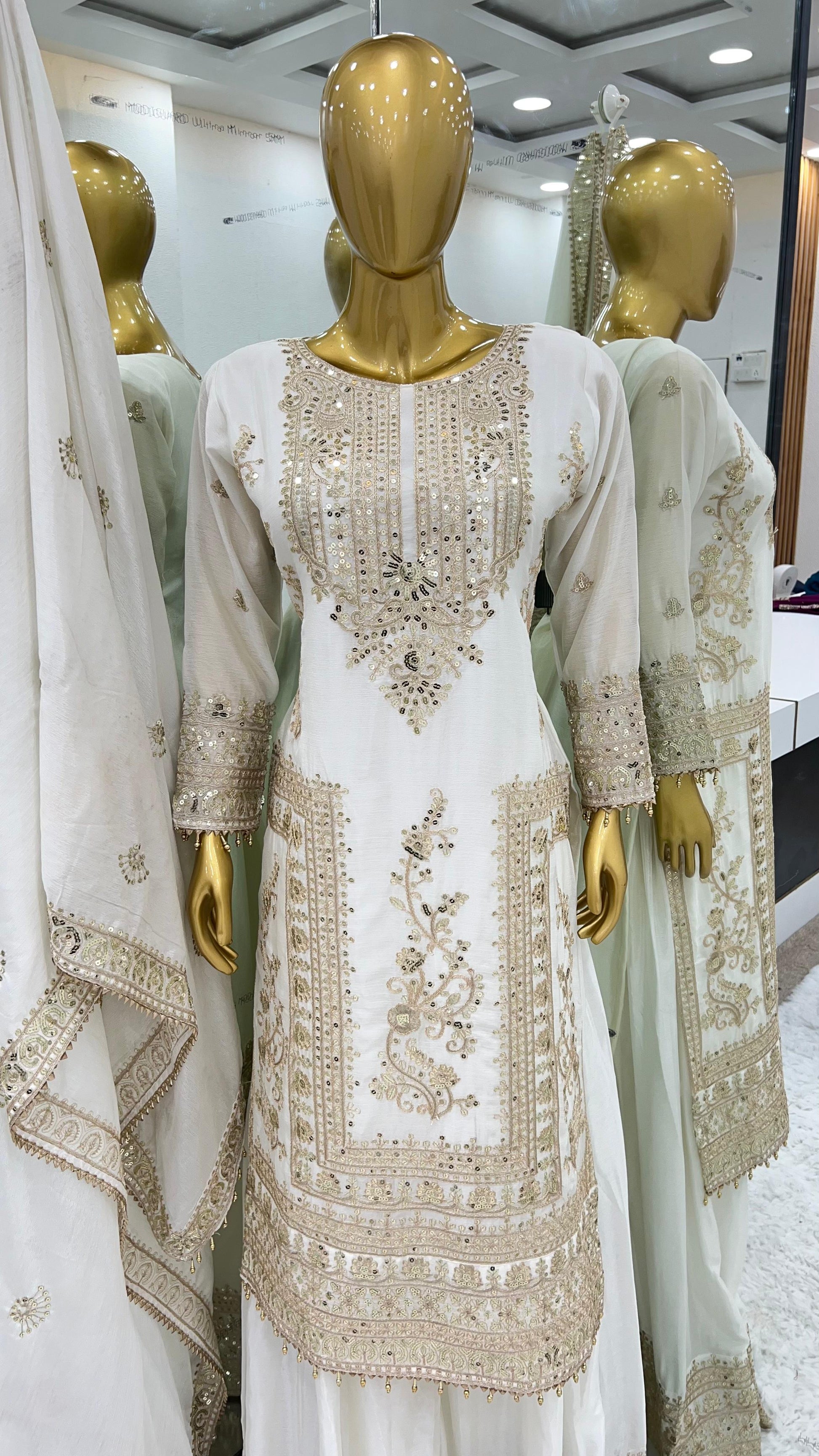 Fabric | Pure Chinnon Silk With Heavy Embroidery Coding Dori-Sequence Work With Elastic |