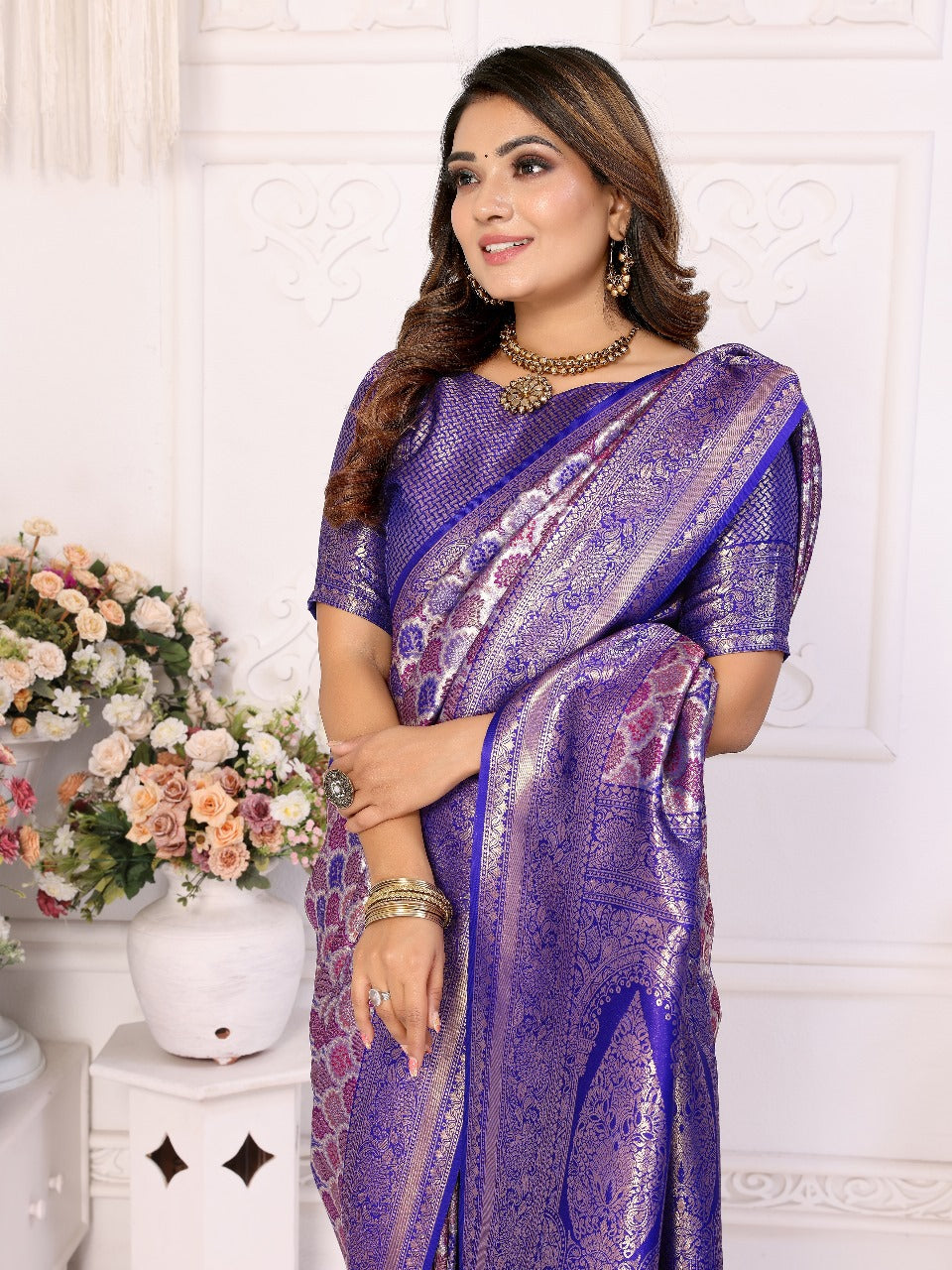 Beautiful Festival Wear Blue Color Zari Weaving Border And Weaving Rich Pallu Banarasi Chaturi Silk Saree