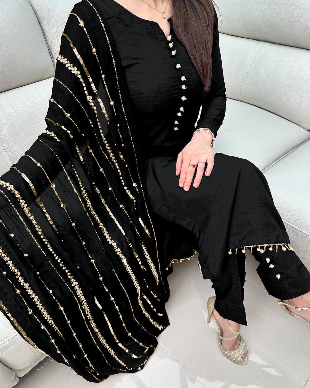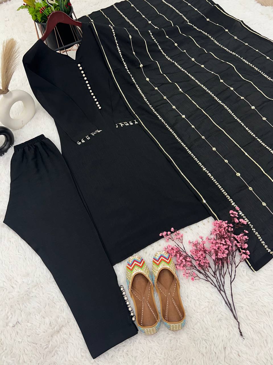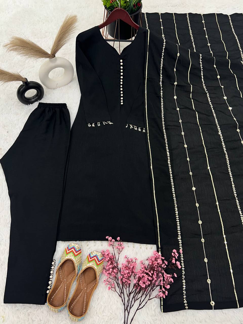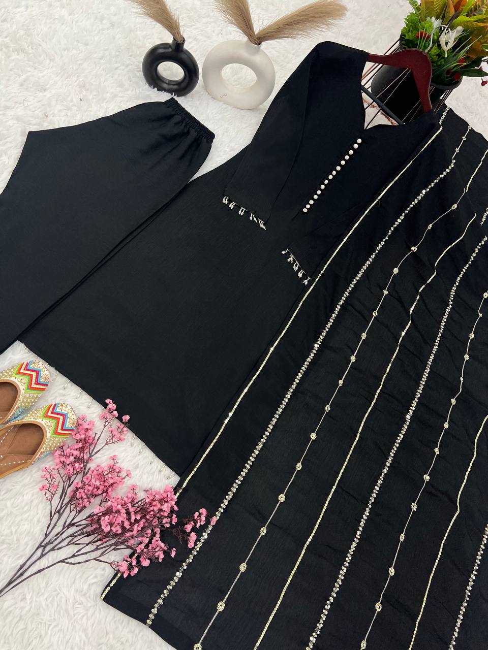 Beautiful Look Black Color Designer Kurti Pent With Dupatta