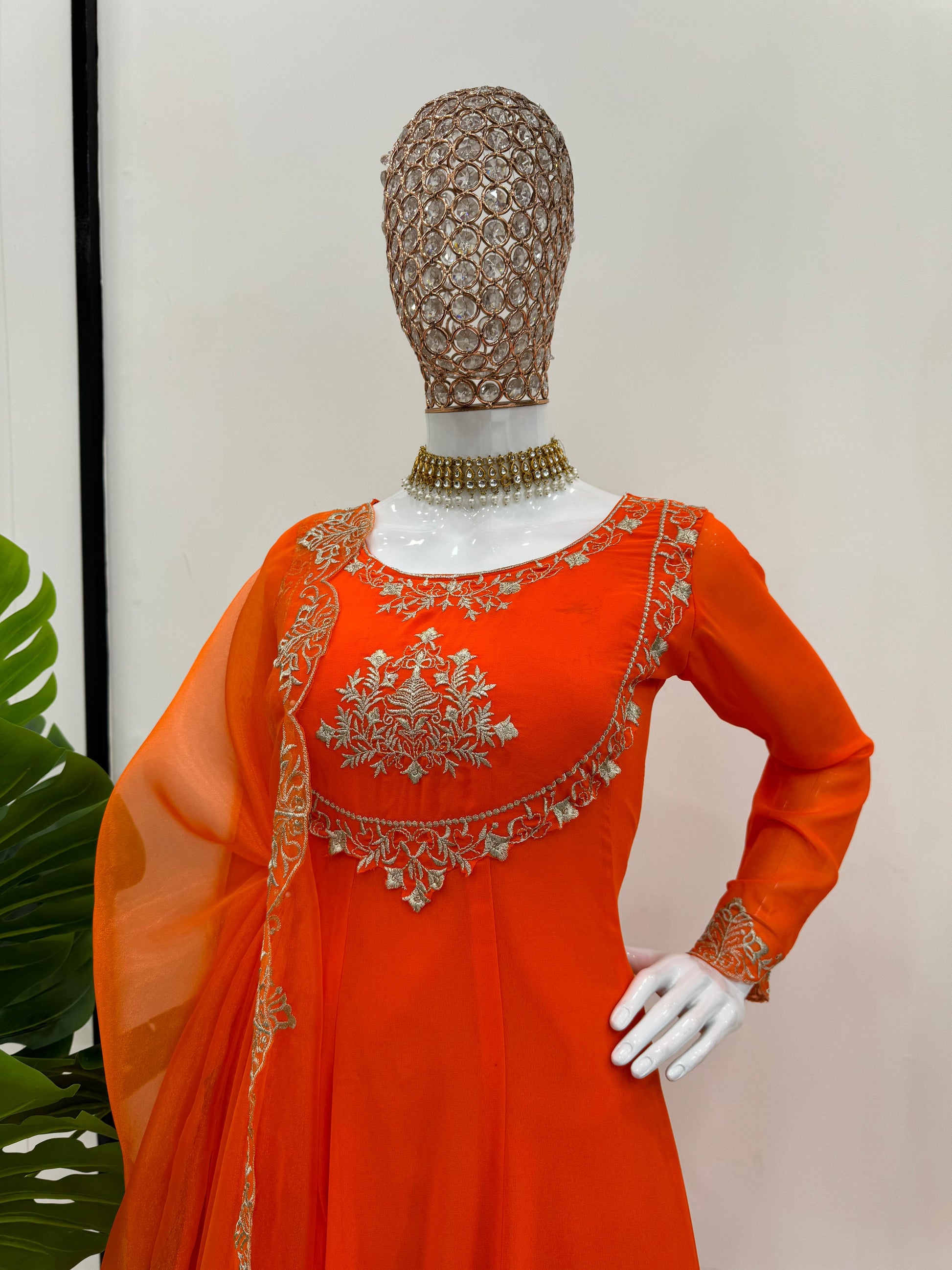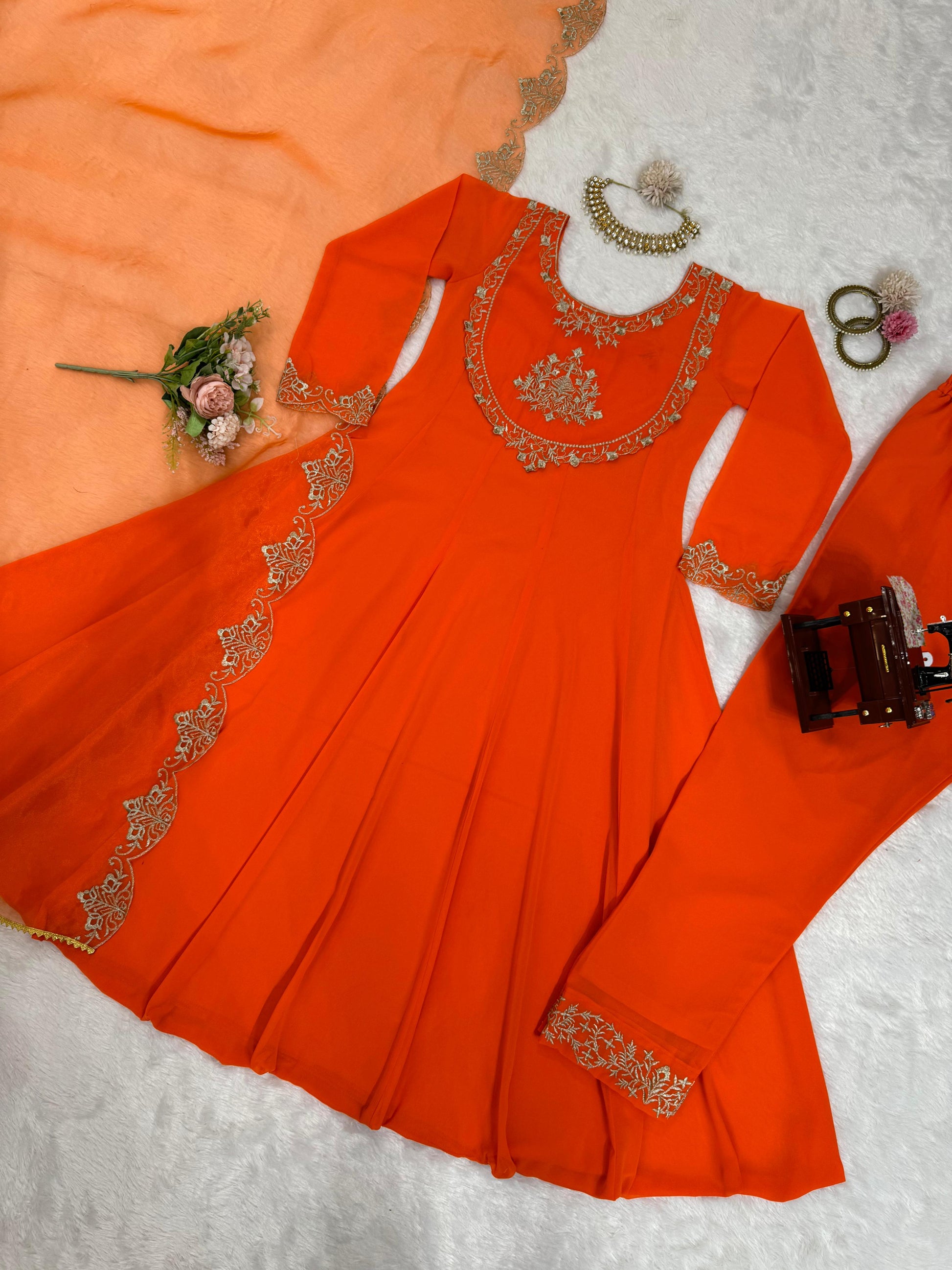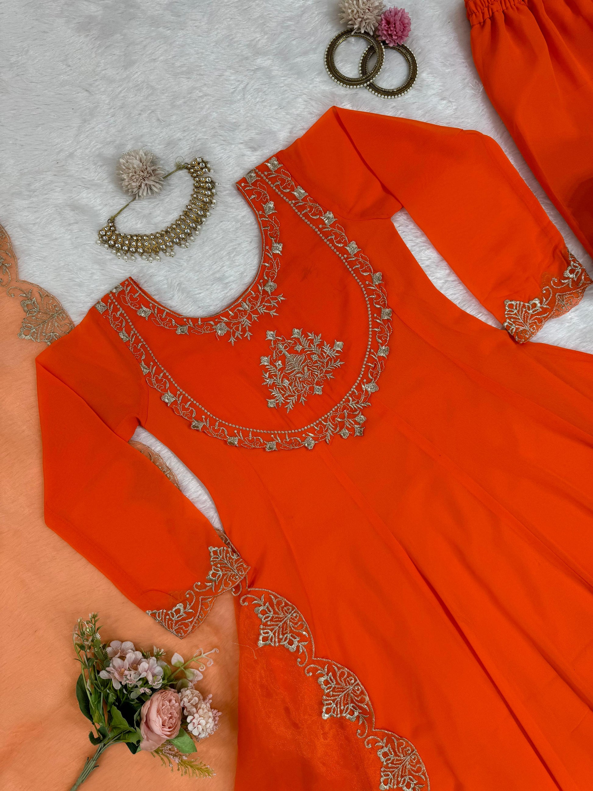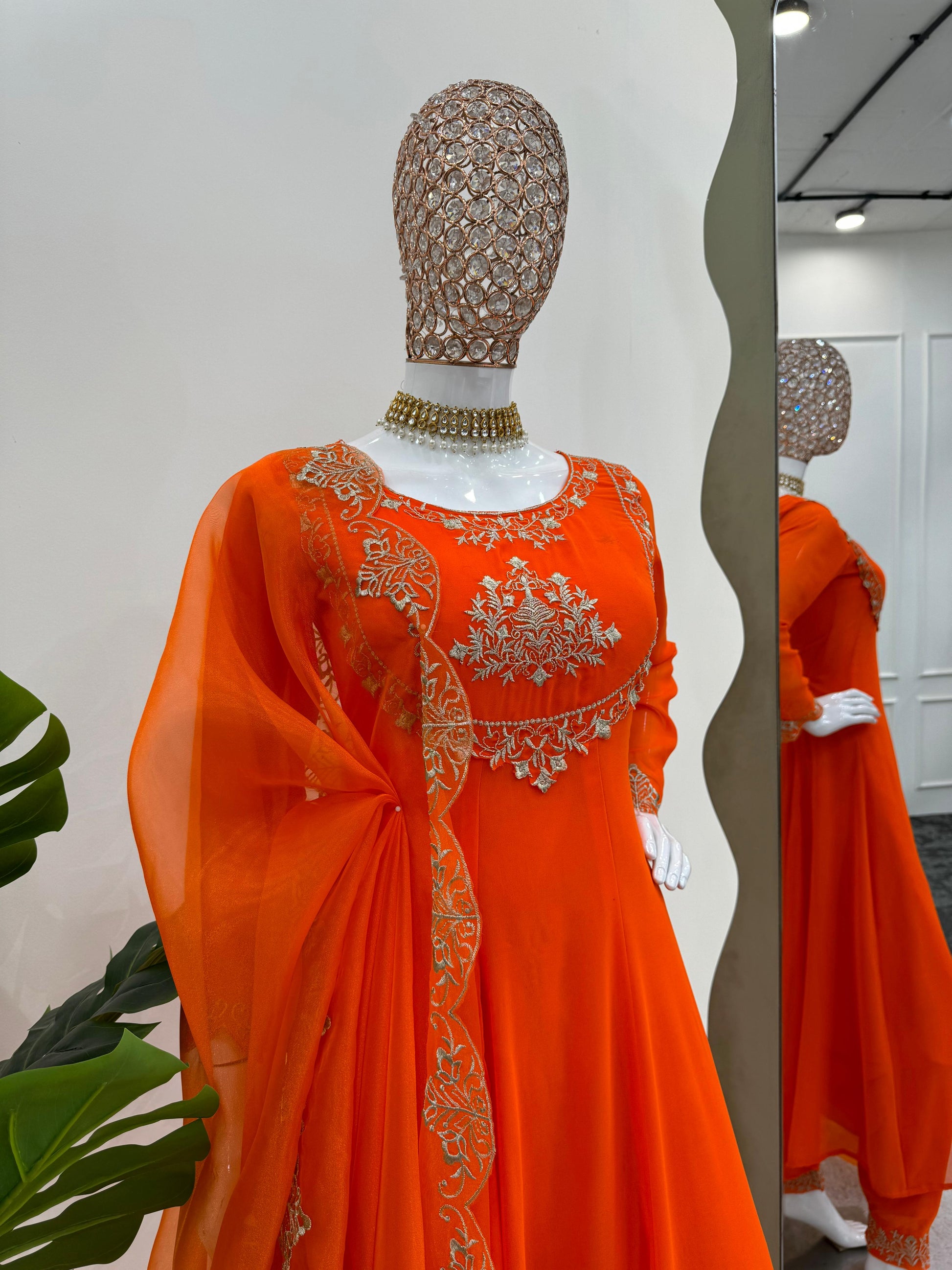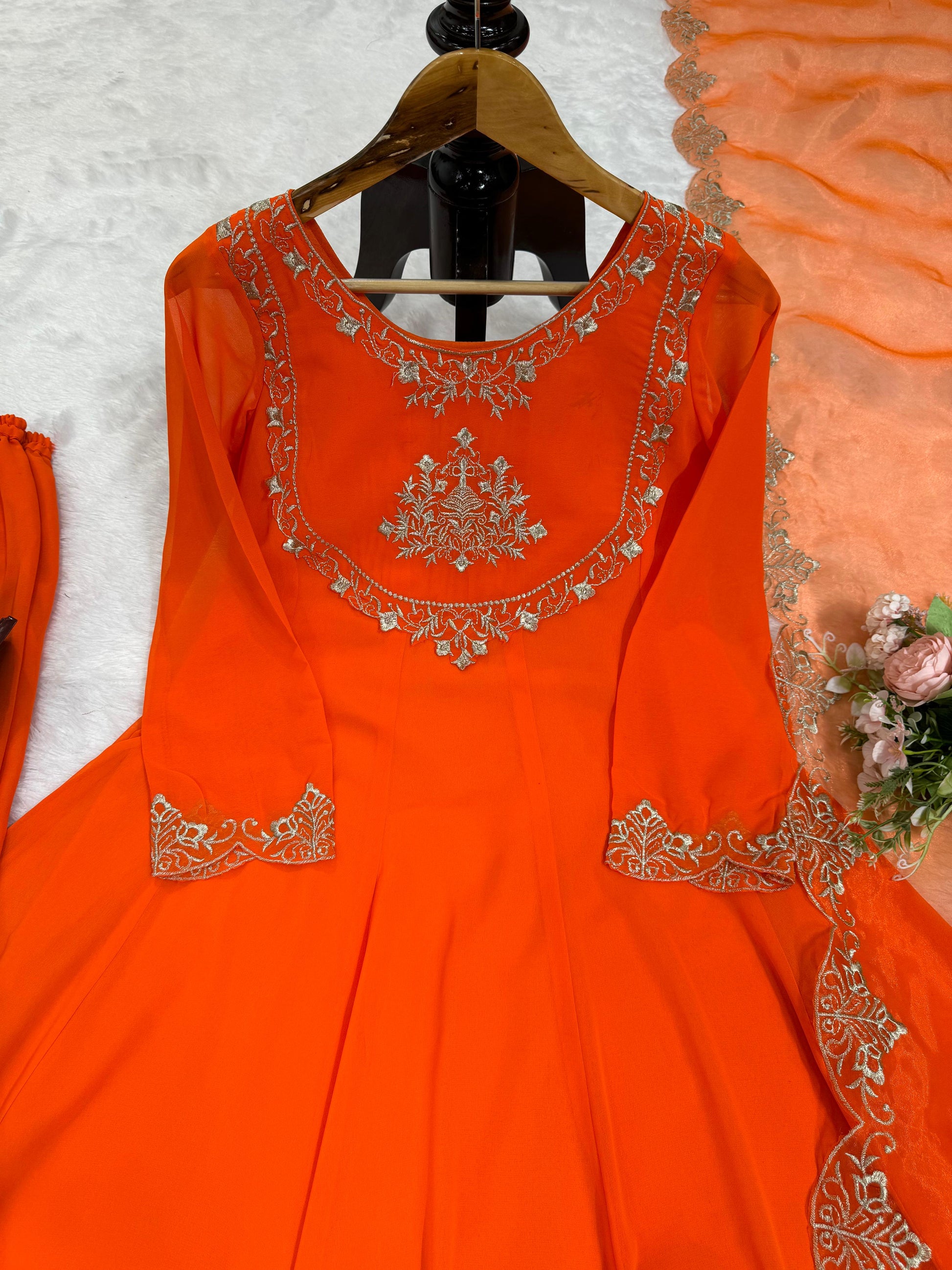 Casual Wear Orange Color Faux Georgette With Thread Work Designer Salwar Suit