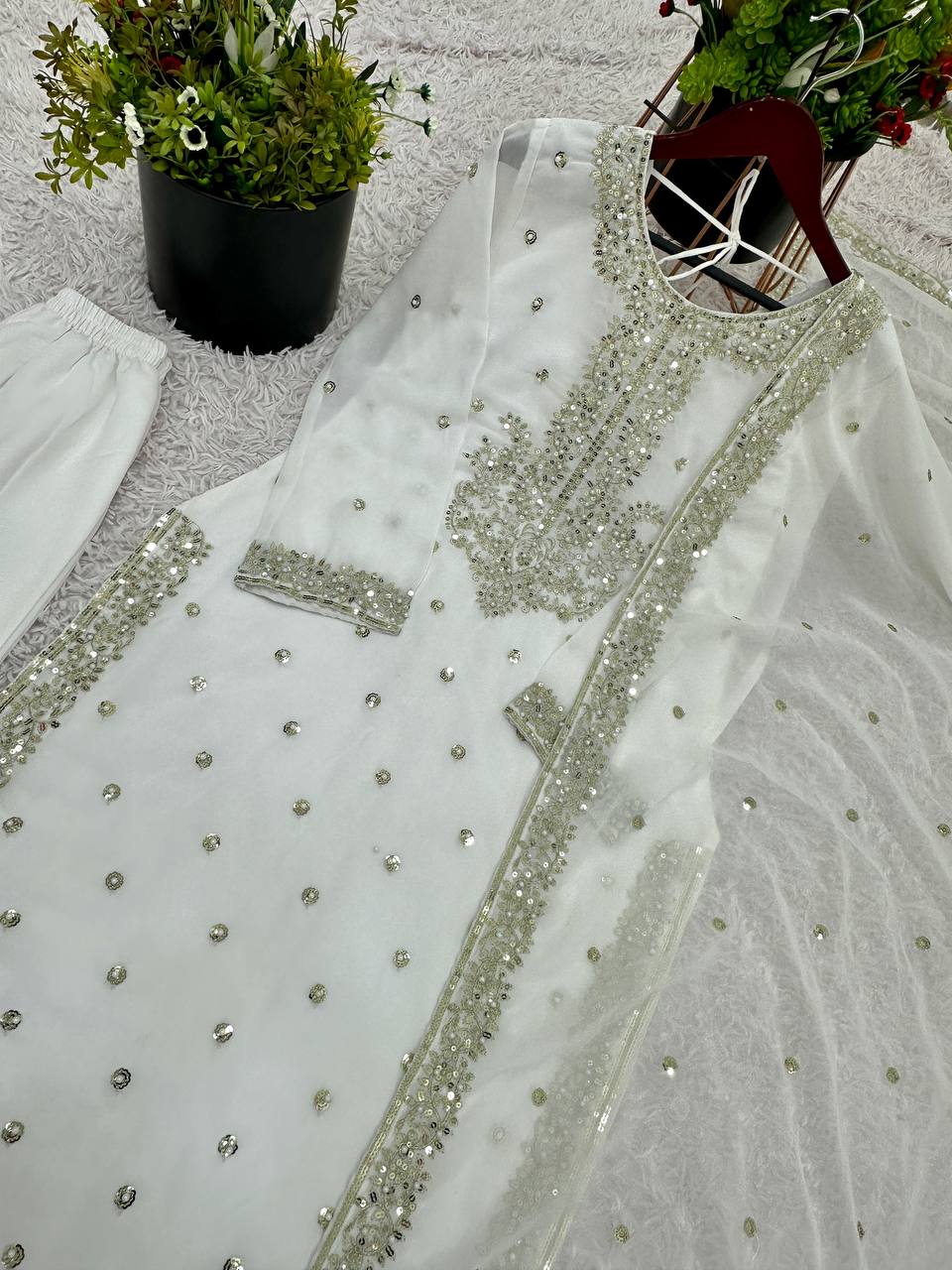 Casual Wear White Color Heavy Georgette With Heavy Embroidery Sequence Work Salwar Suit