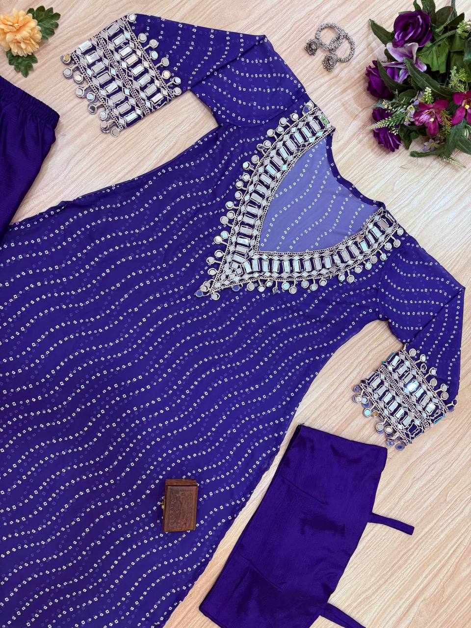 Work:- DIGITAL PRINT, EMBROIDERY AND REAL MIRROR CUT-WORK BORDER