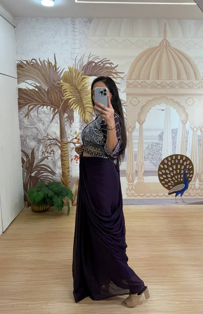 Celebrity Style Purple Color Fully Embroidery Work Blouse Ready To Wear Saree