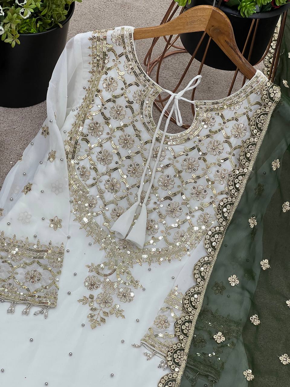 Dupatta Fabric :Heavy Faux Georgette With Embroidery Sequence With Lace Border