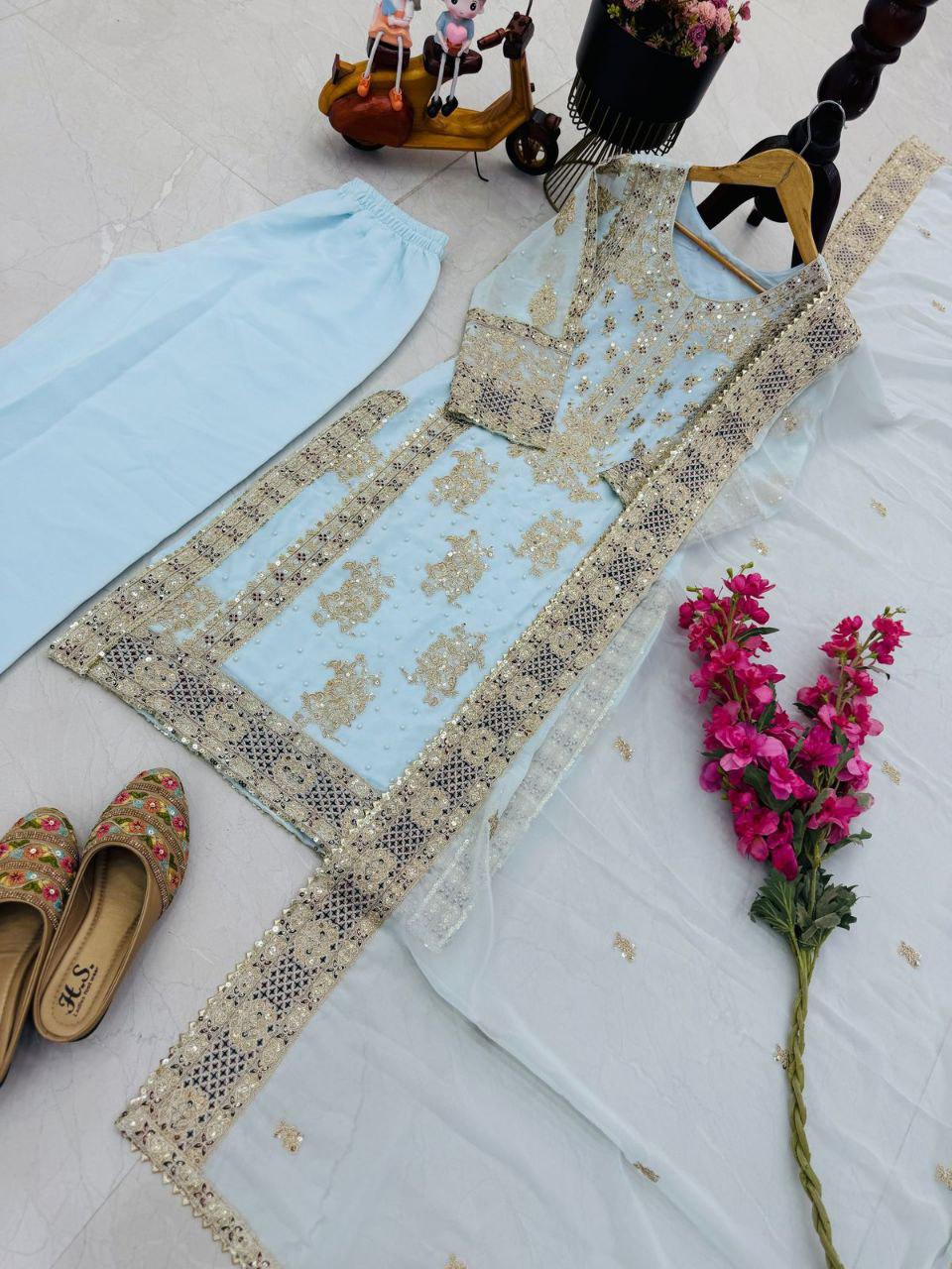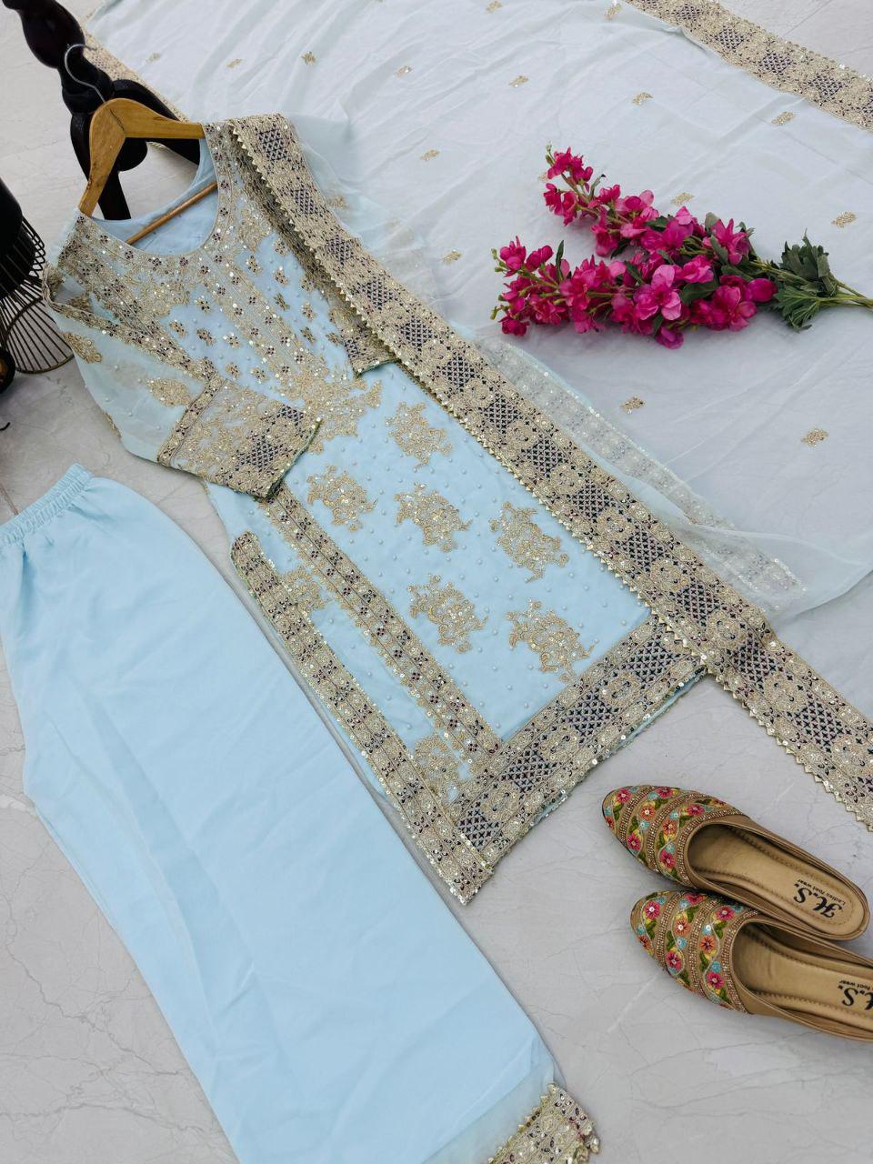 Ceremony Wear Sky Blue Color Sequence Embroidery Work Salwar Suit