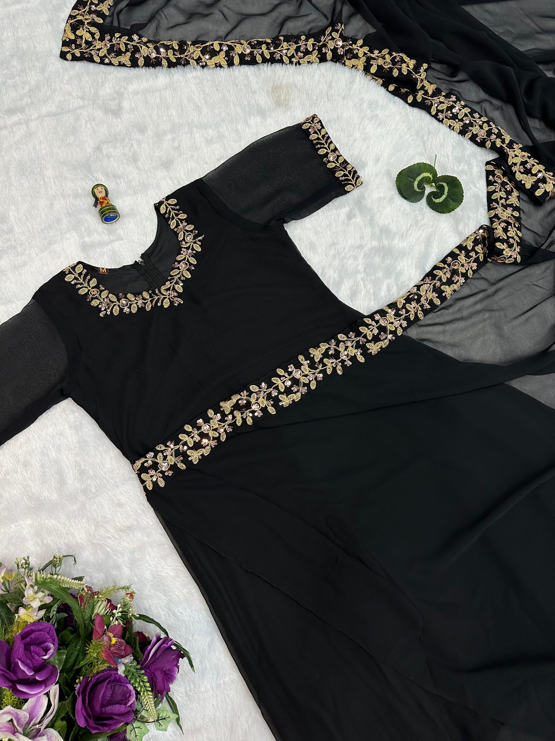 Classic Black Color Faux Georgette Desinger Saree Gown