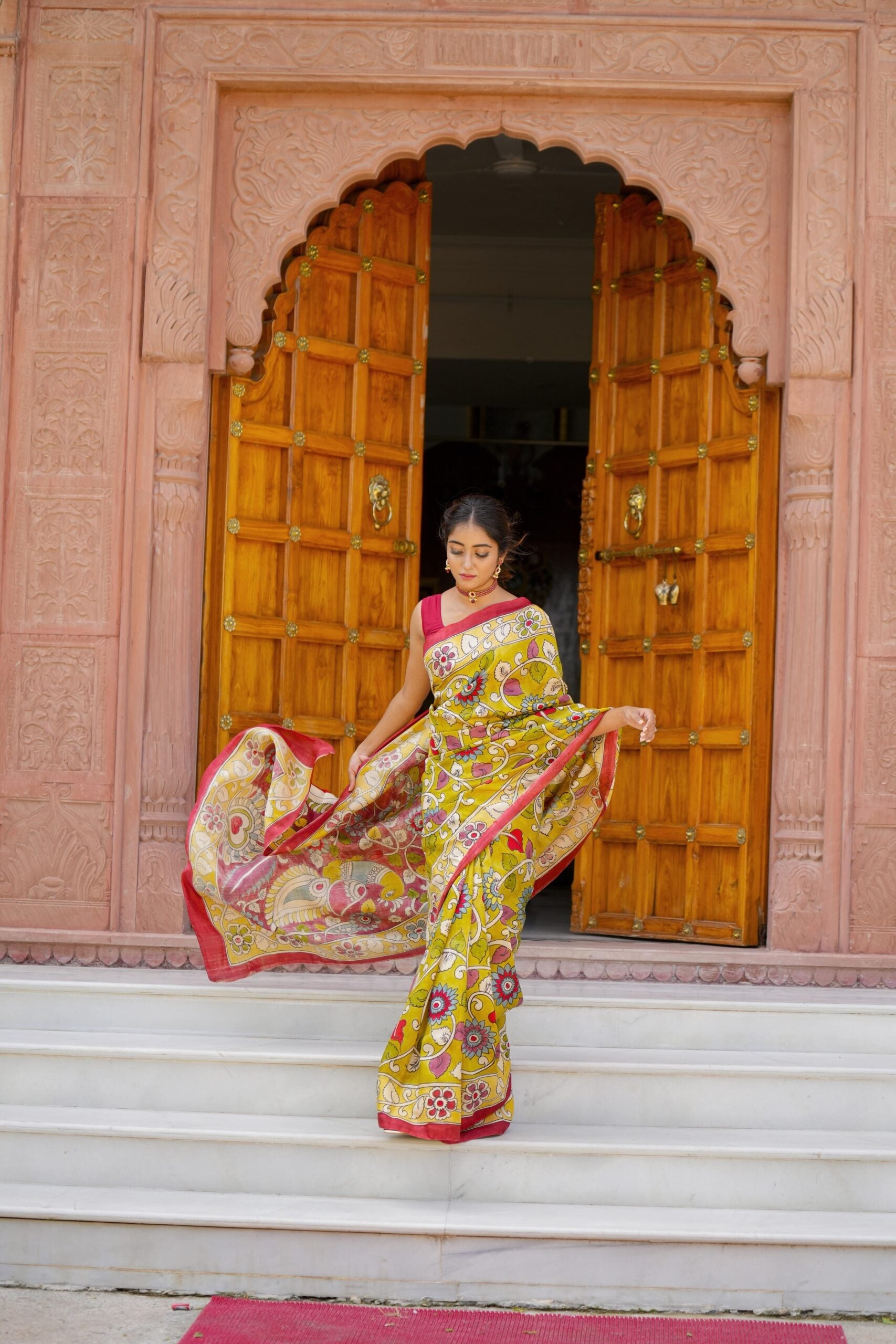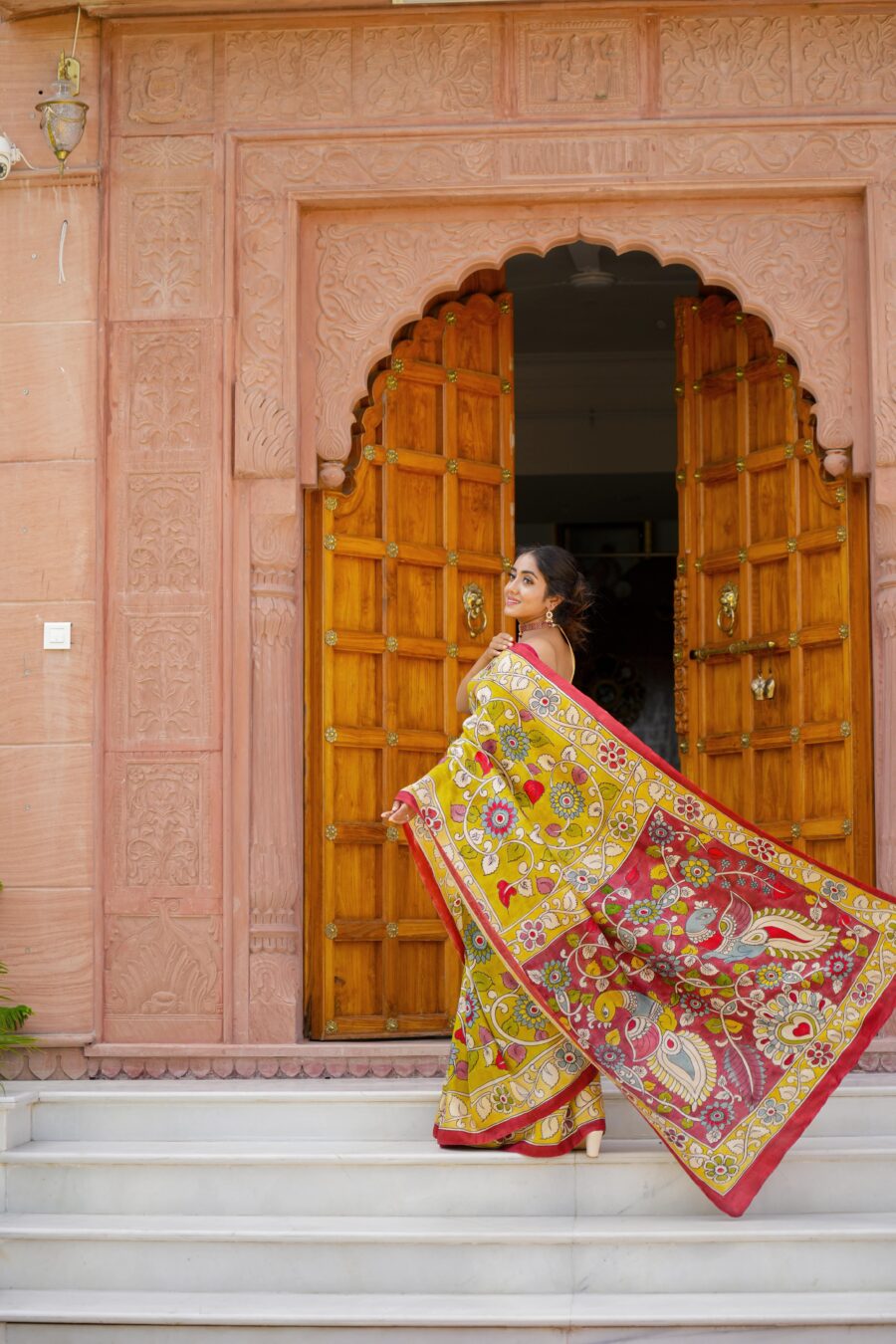Classy Mustard Color Color Pure Cotton Lilen With Digital Printed Designer Saree