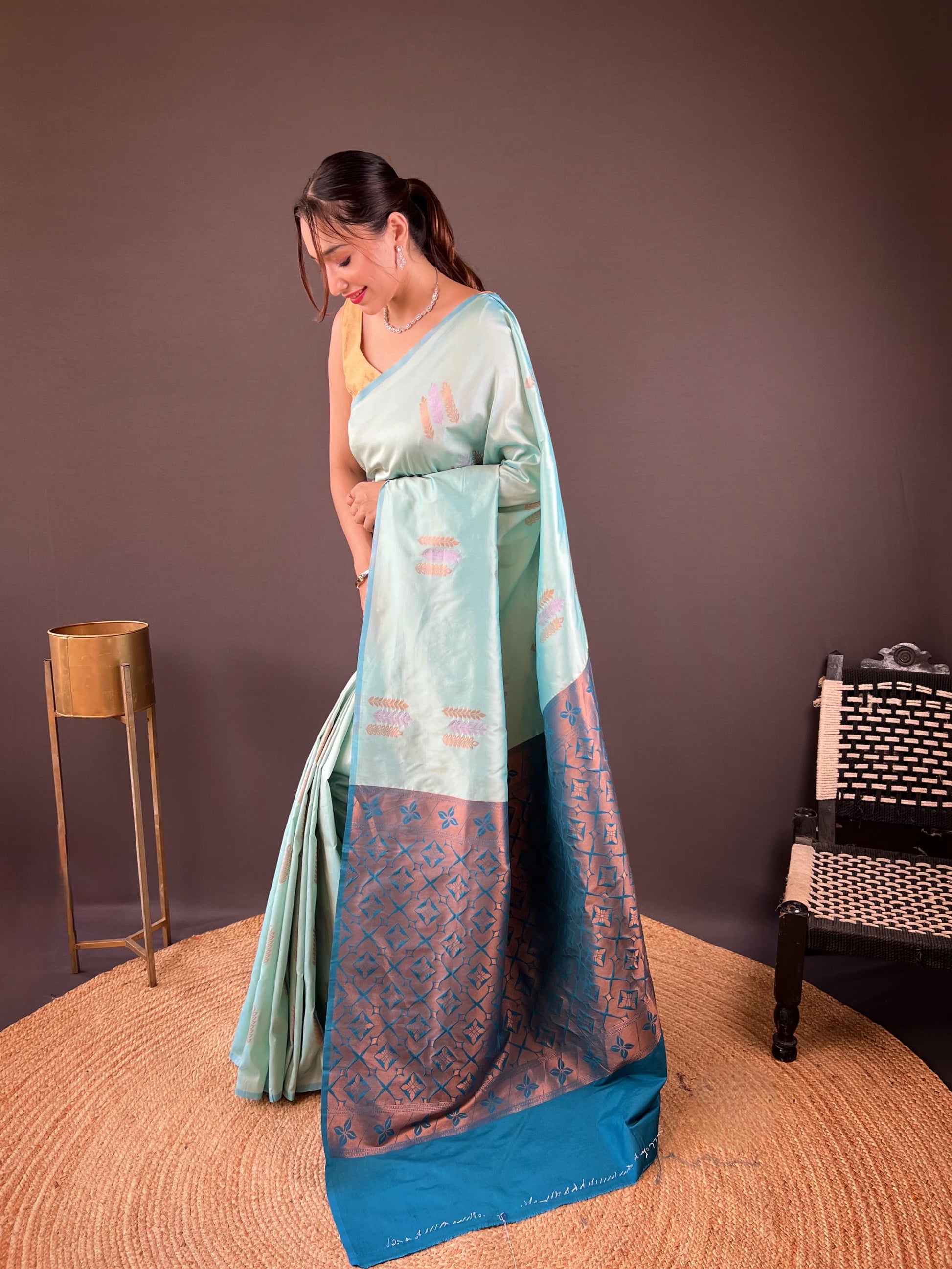 Copper Weaving Border And Pallu Sky Blue Color Saree