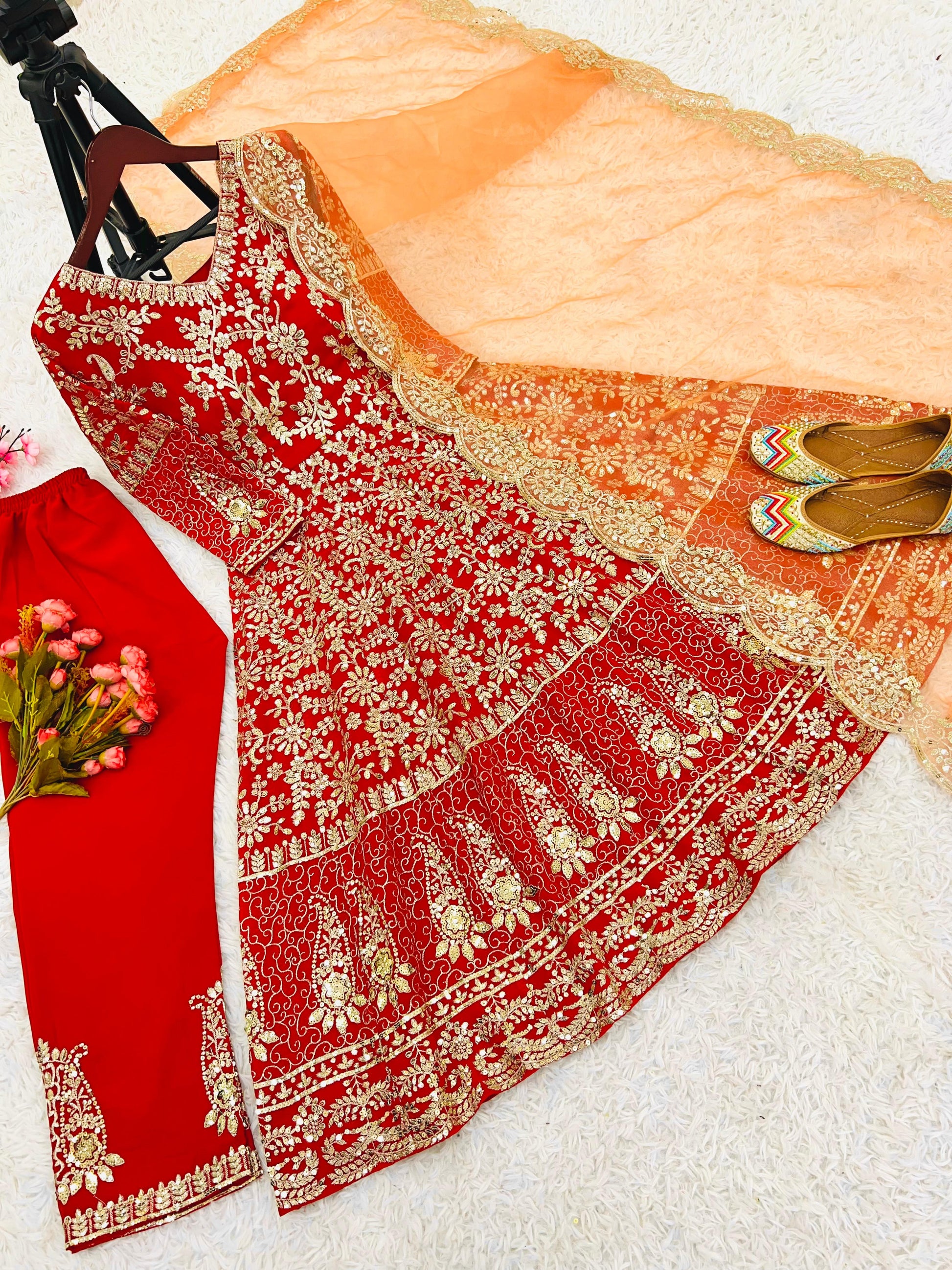 Daisy Red Color Pure Heavy Faux Georgette With Full Heavy Embroidery Sequence Work Anarkali Suit