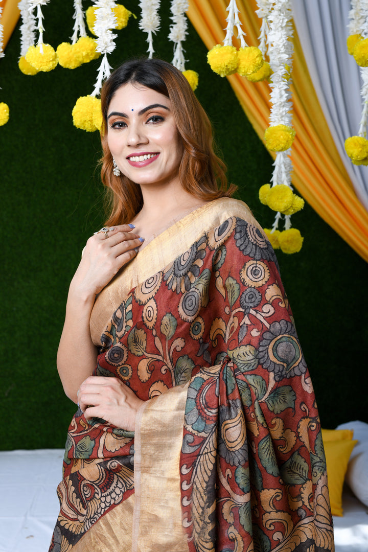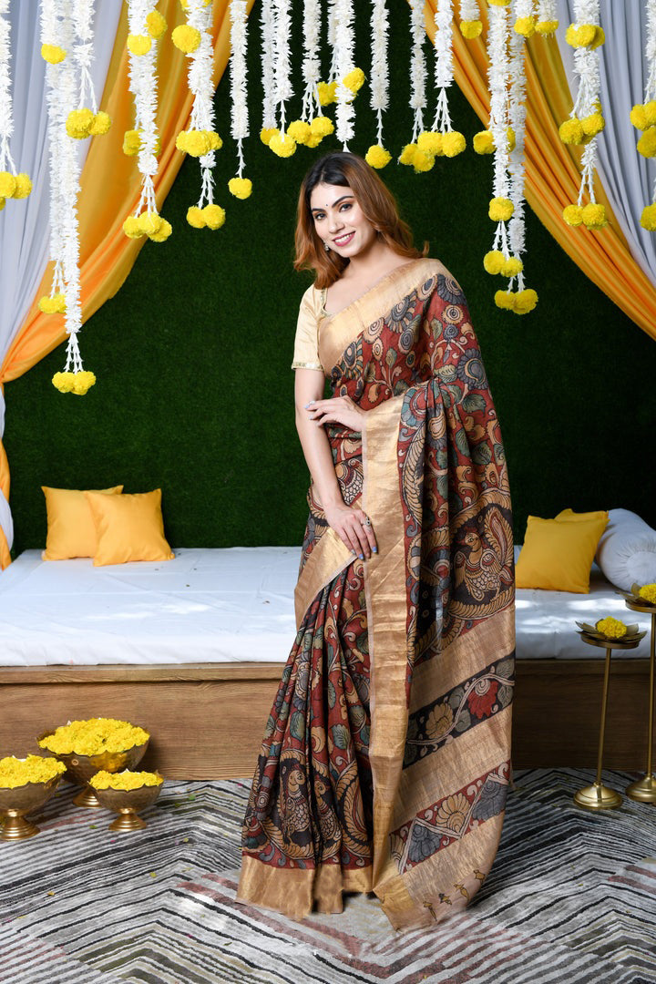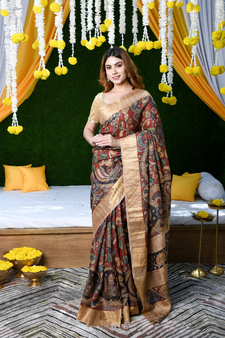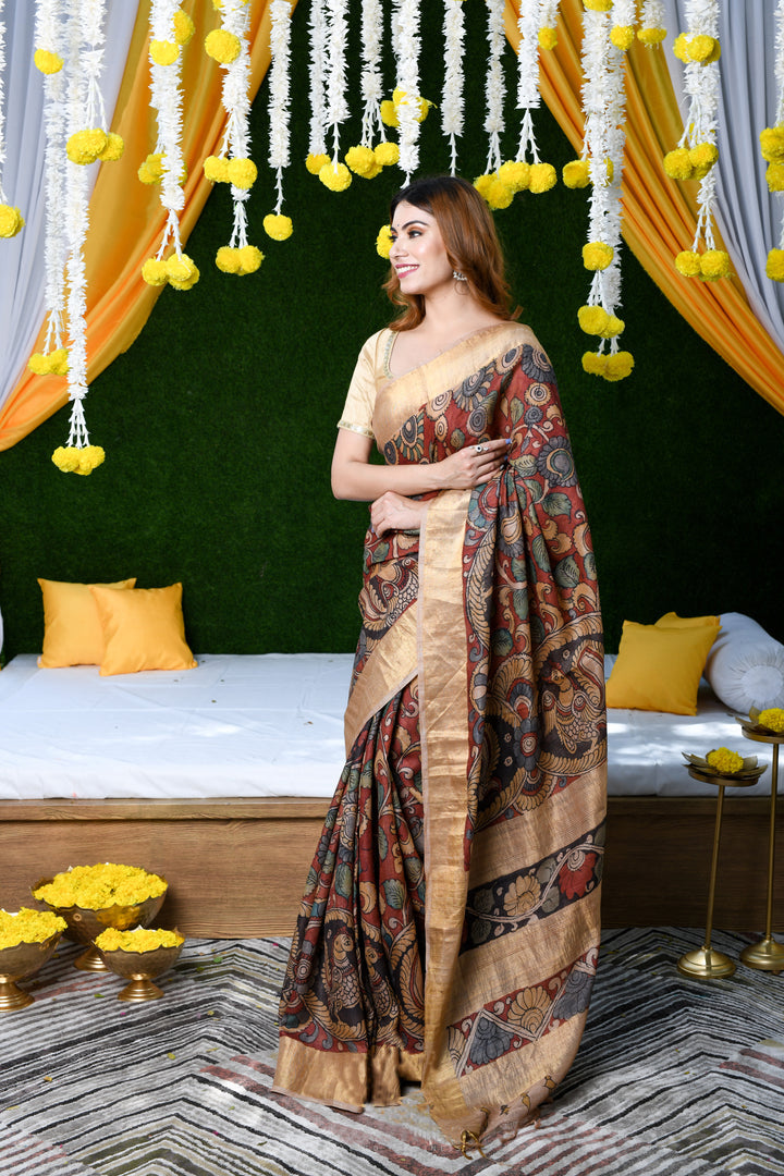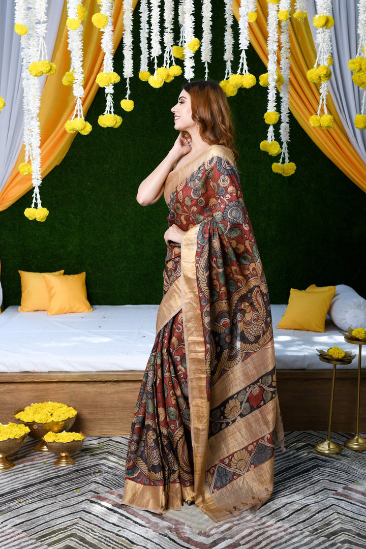 Dazzling Maroon Color Color Pure Cotton Lilen With Digital Printed Designer Saree