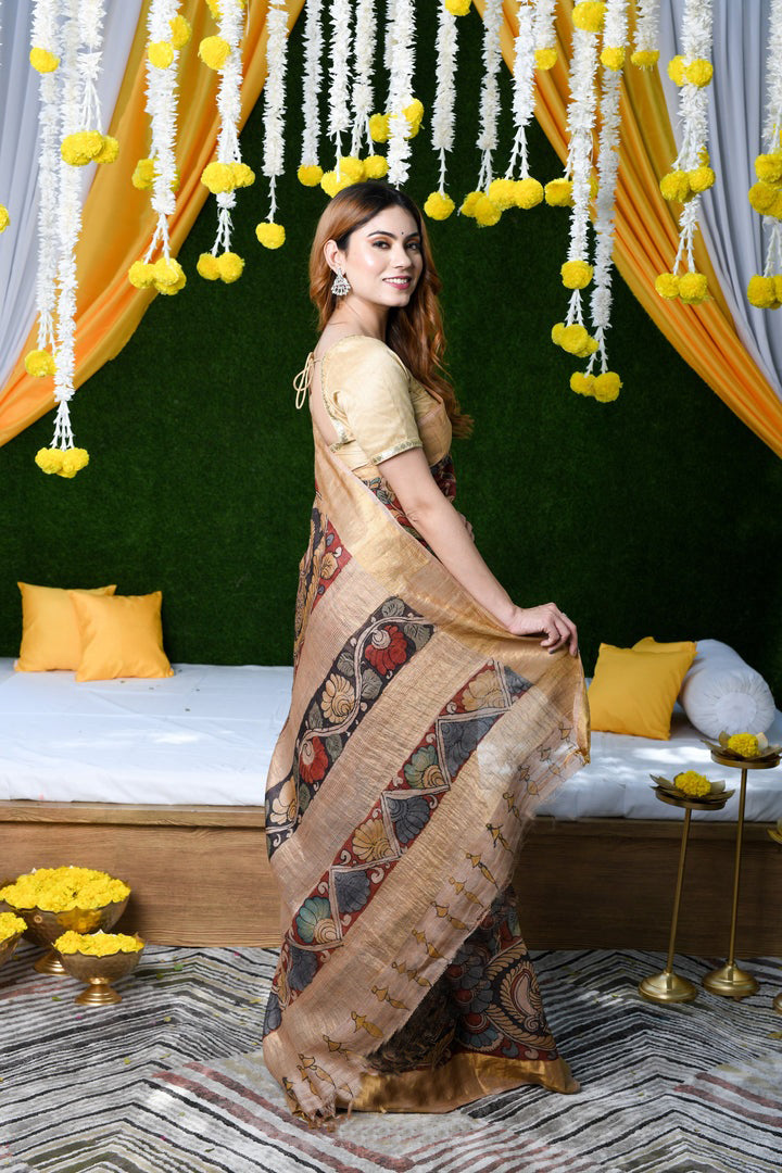 Design :- Zari Patta Pure Cotton Lilen Saree With Digital Print With Digital Blouse Pieces