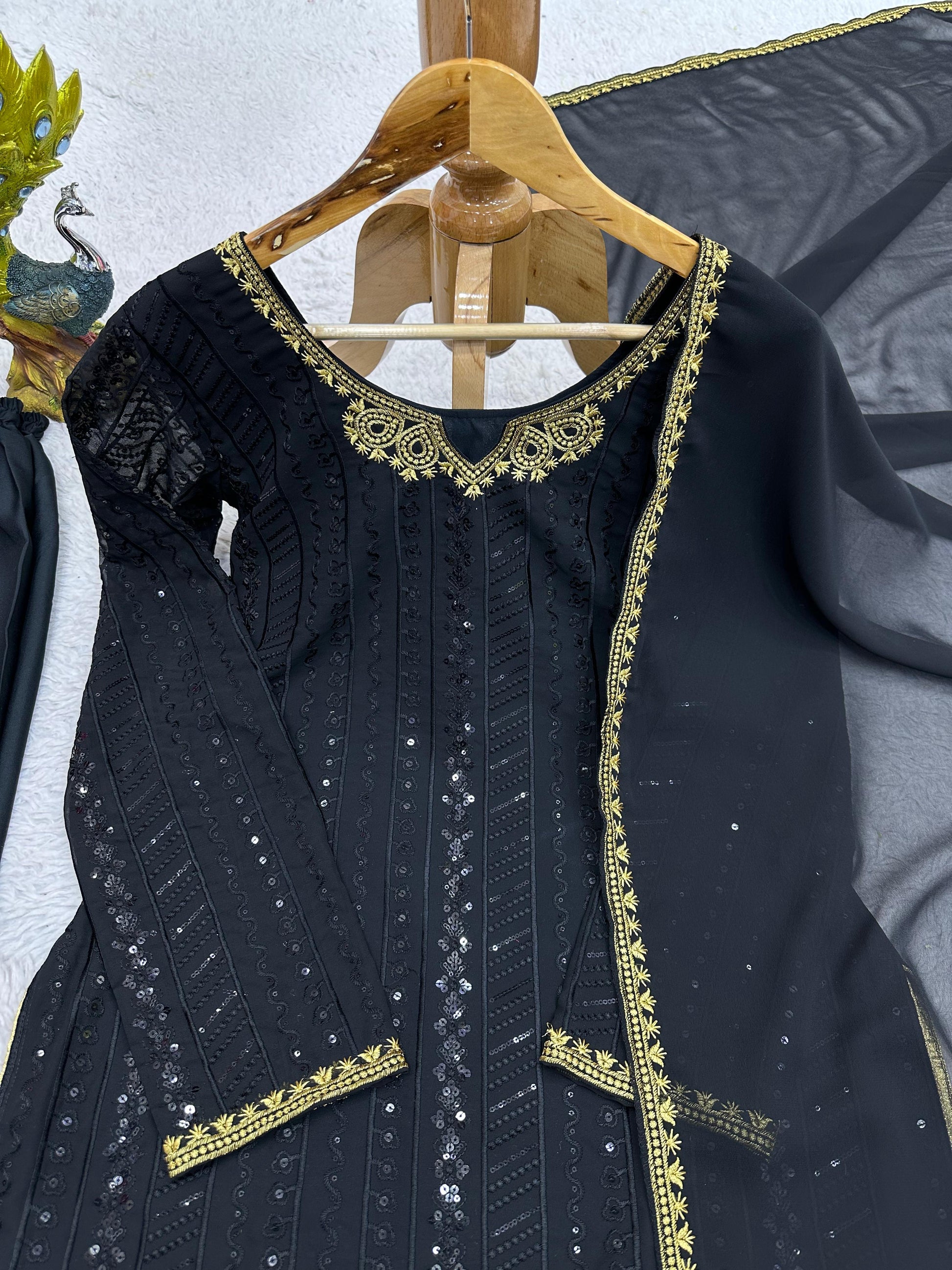 Dazzling Sequence Thread Work Black Color Salwar Suit