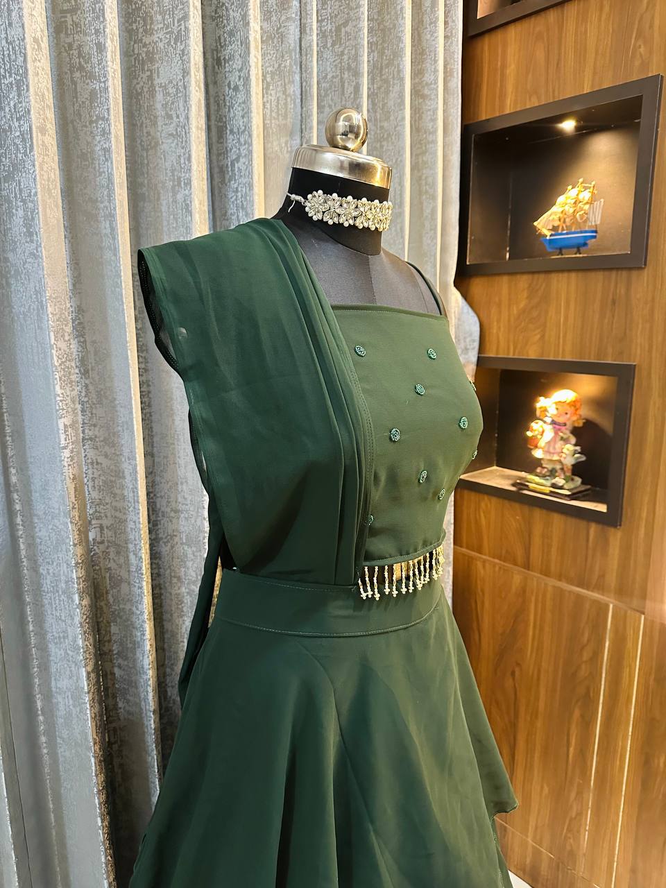 Delightful Green Color Heavy Georgette Designer Ready To Wear Lehenga Saree