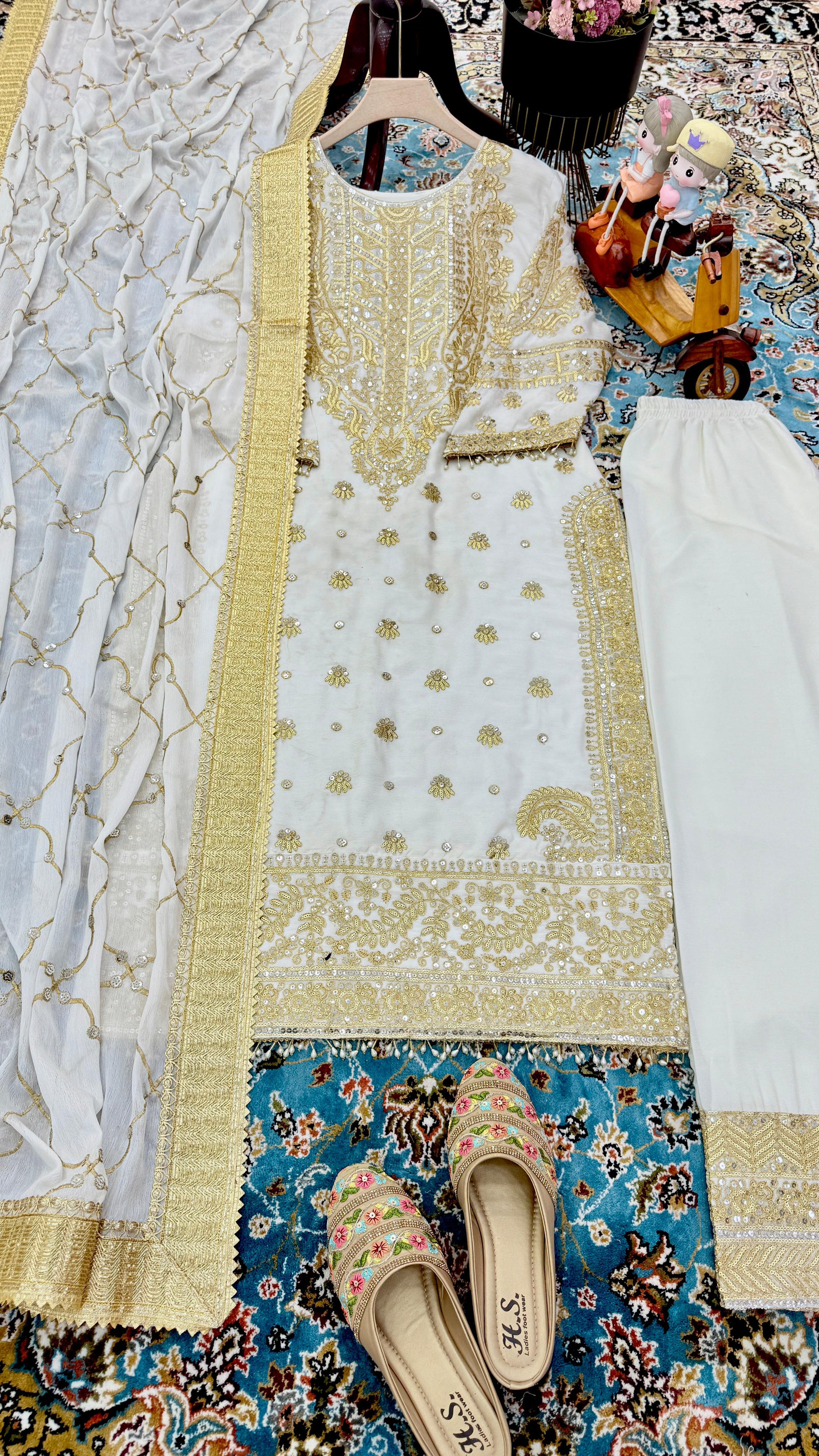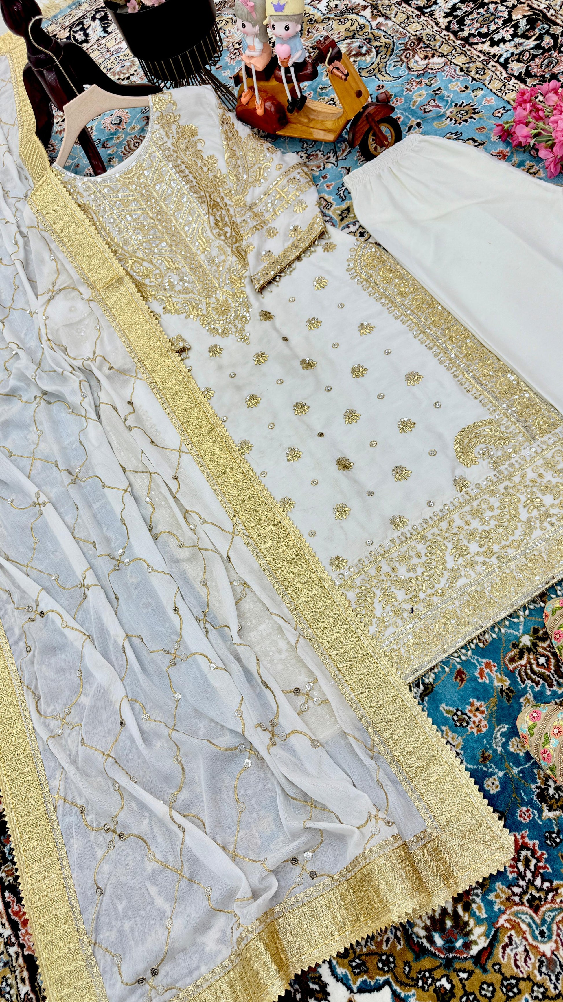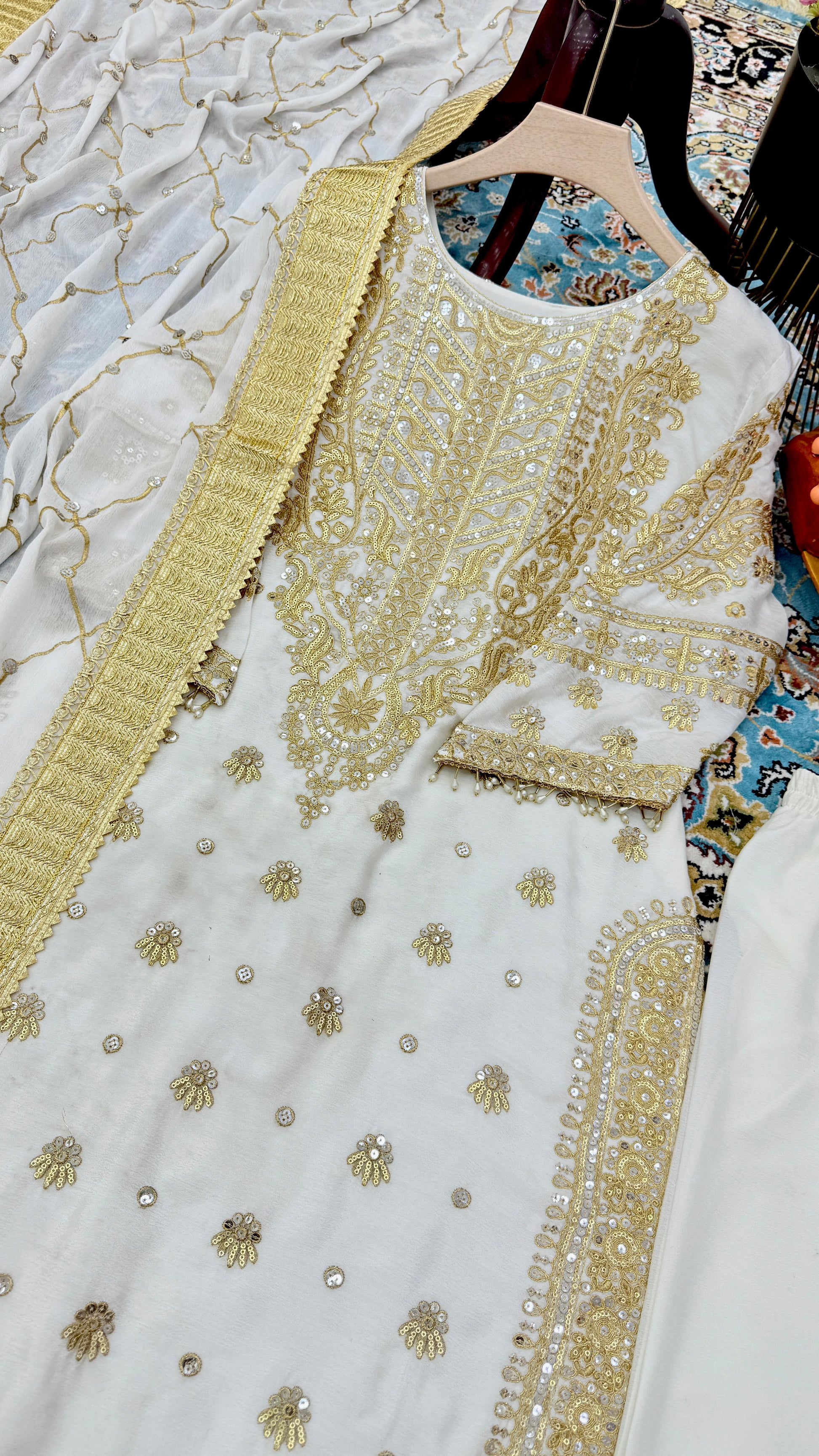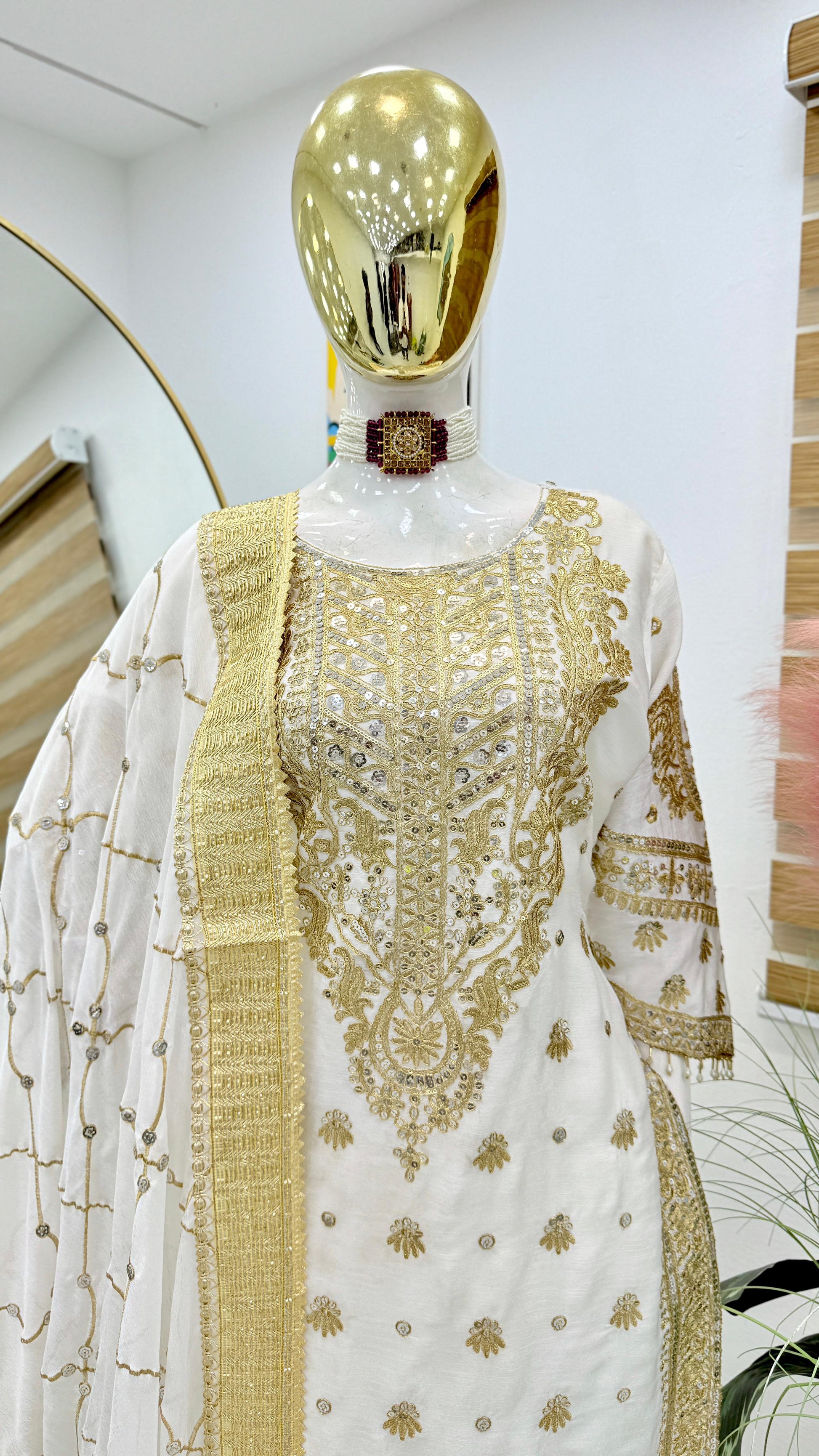 Delightful Off White Color Chinon Silk With Embroidery Codding Sequence Work Salwar Suit