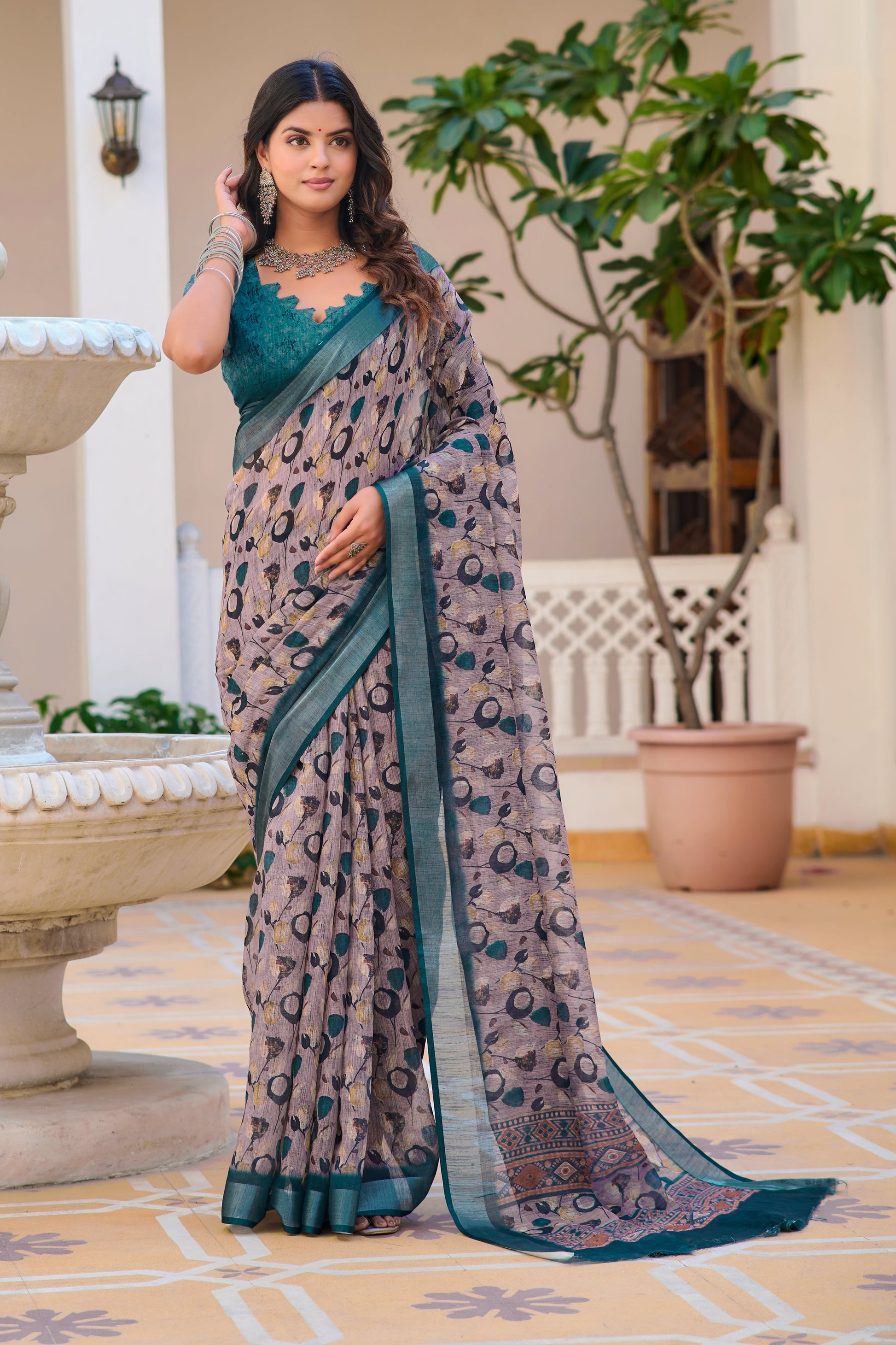 Design :- Zari Patta Pure Cotton Lilen Saree With Digital Print With Digital Blouse Pieces