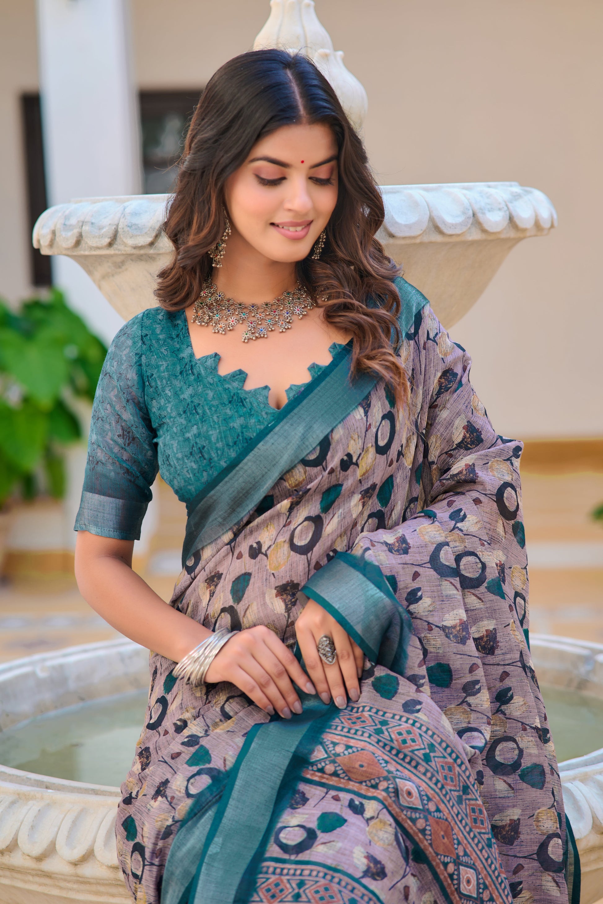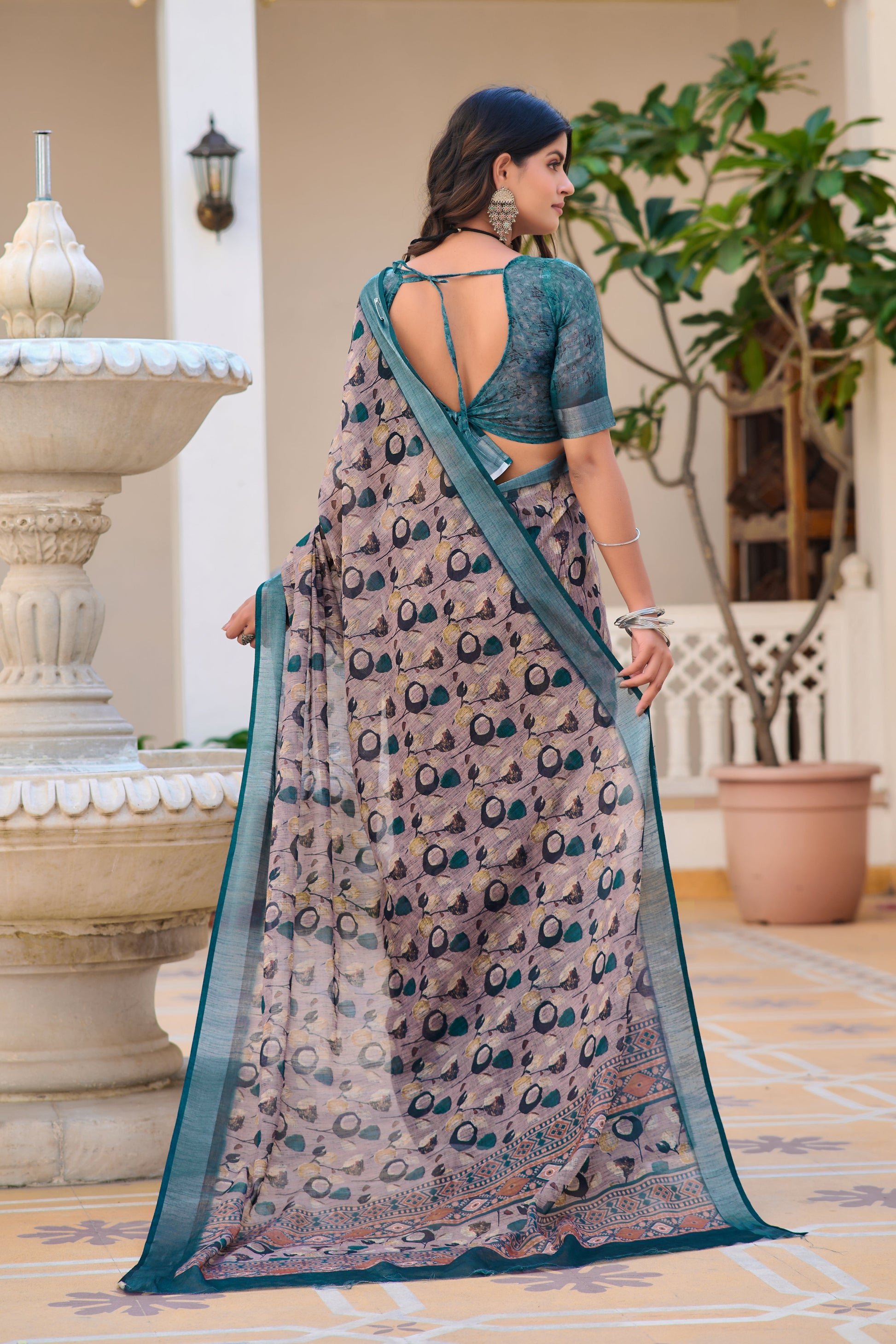 Demanding Coffee Color Color Pure Cotton Lilen With Digital Printed Designer Saree