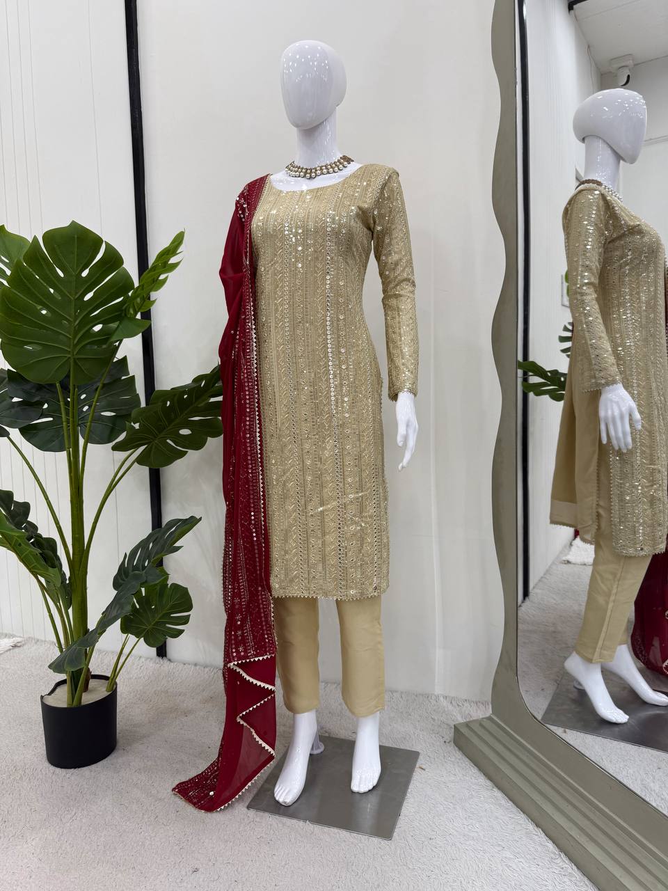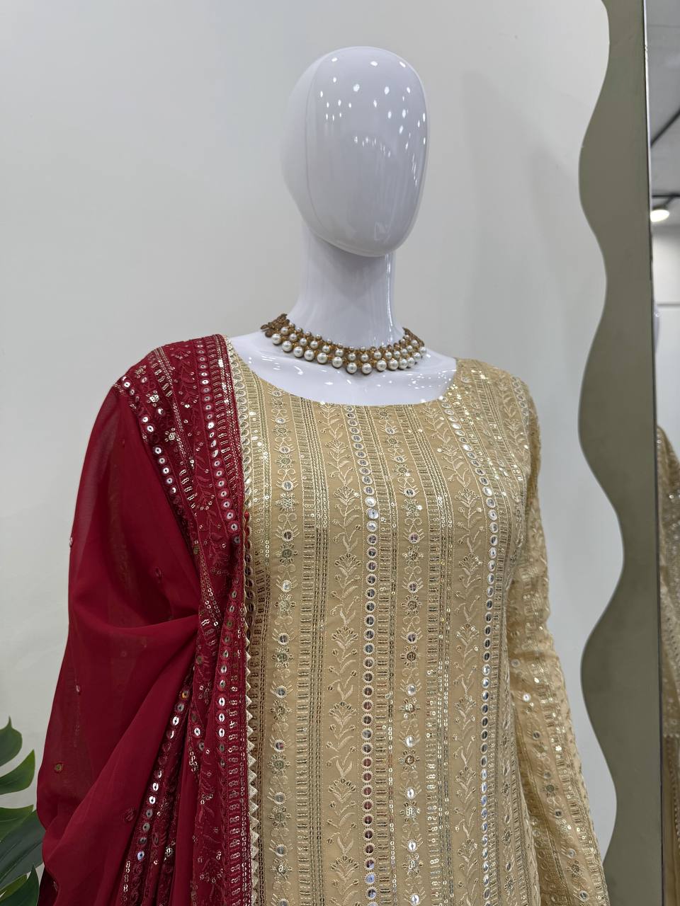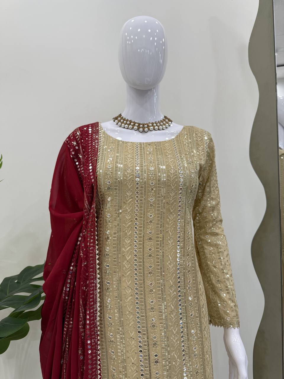 Refresh Your Ethnic Collection With This Beautiful Designer Suit Set, Crafted From High-Quality Faux Georgette Fabric. This Elegant Ensemble Features Rich Thread Embroidery And 9mm Sequin Work That Creates A Graceful And Festive Look.