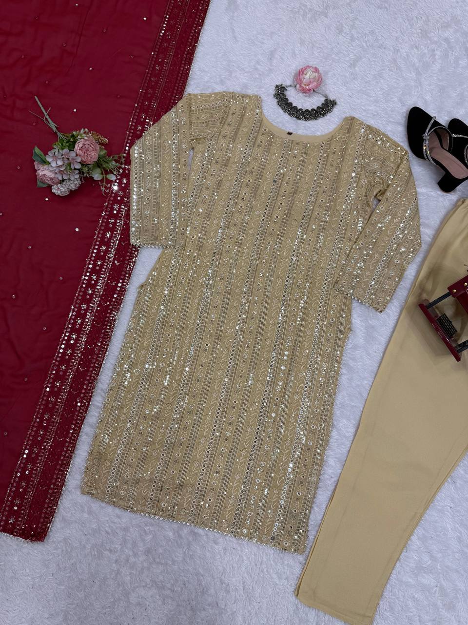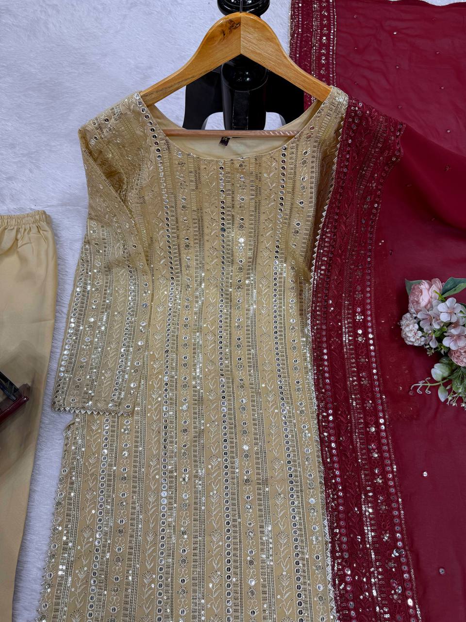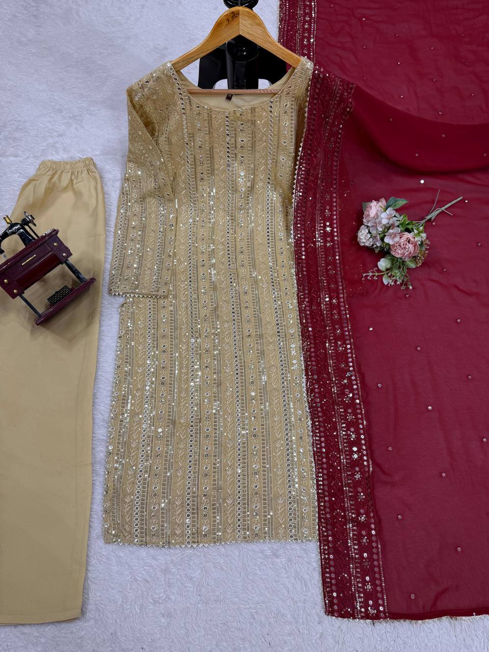 Refresh Your Ethnic Collection With This Beautiful Designer Suit Set, Crafted From High-Quality Faux Georgette Fabric. This Elegant Ensemble Features Rich Thread Embroidery And 9mm Sequin Work That Creates A Graceful And Festive Look.