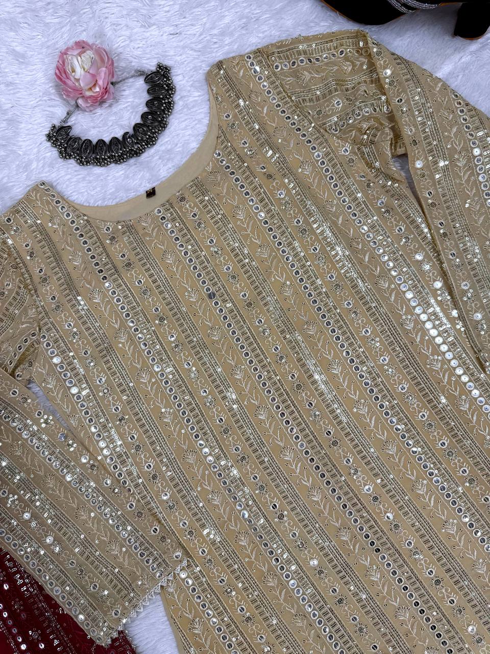 Designer Cream Color Thread Embroidery Work Salwar Suit