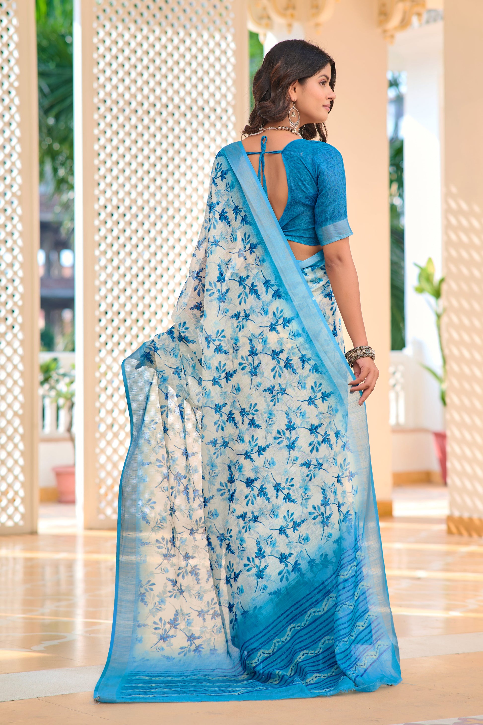 Designer Sky Blue Color Color Pure Cotton Lilen With Digital Printed Designer Saree