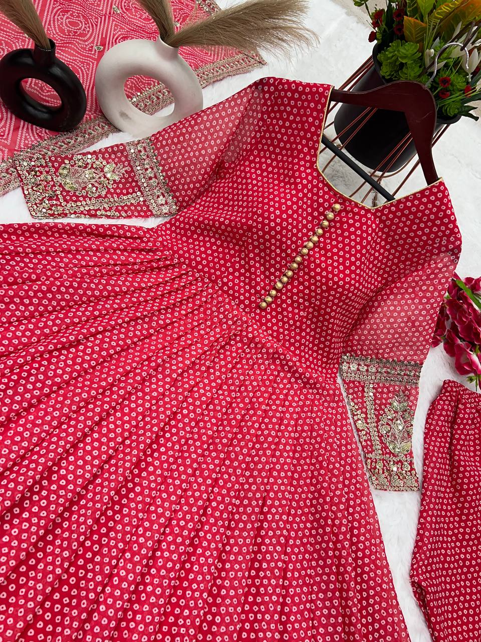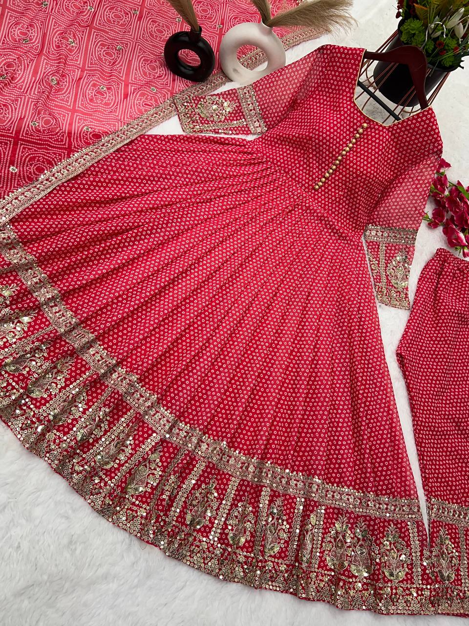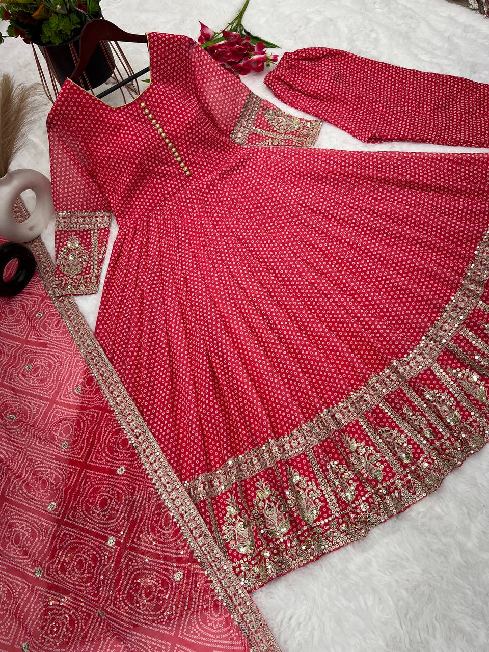 | Fabric | Heavy Faux Georgette With Digital Print With Embroidery Sequence Work (Full Stitched) |