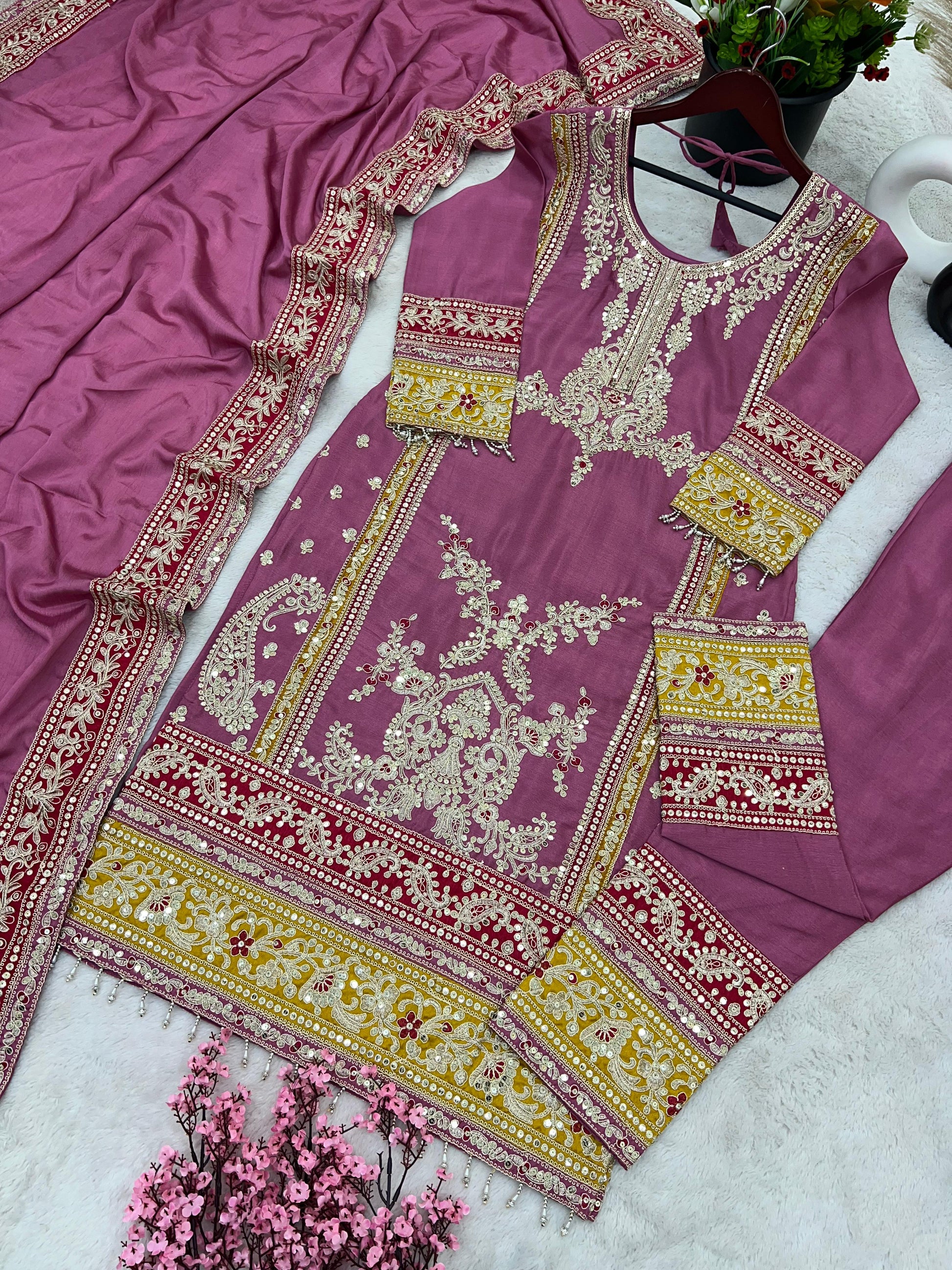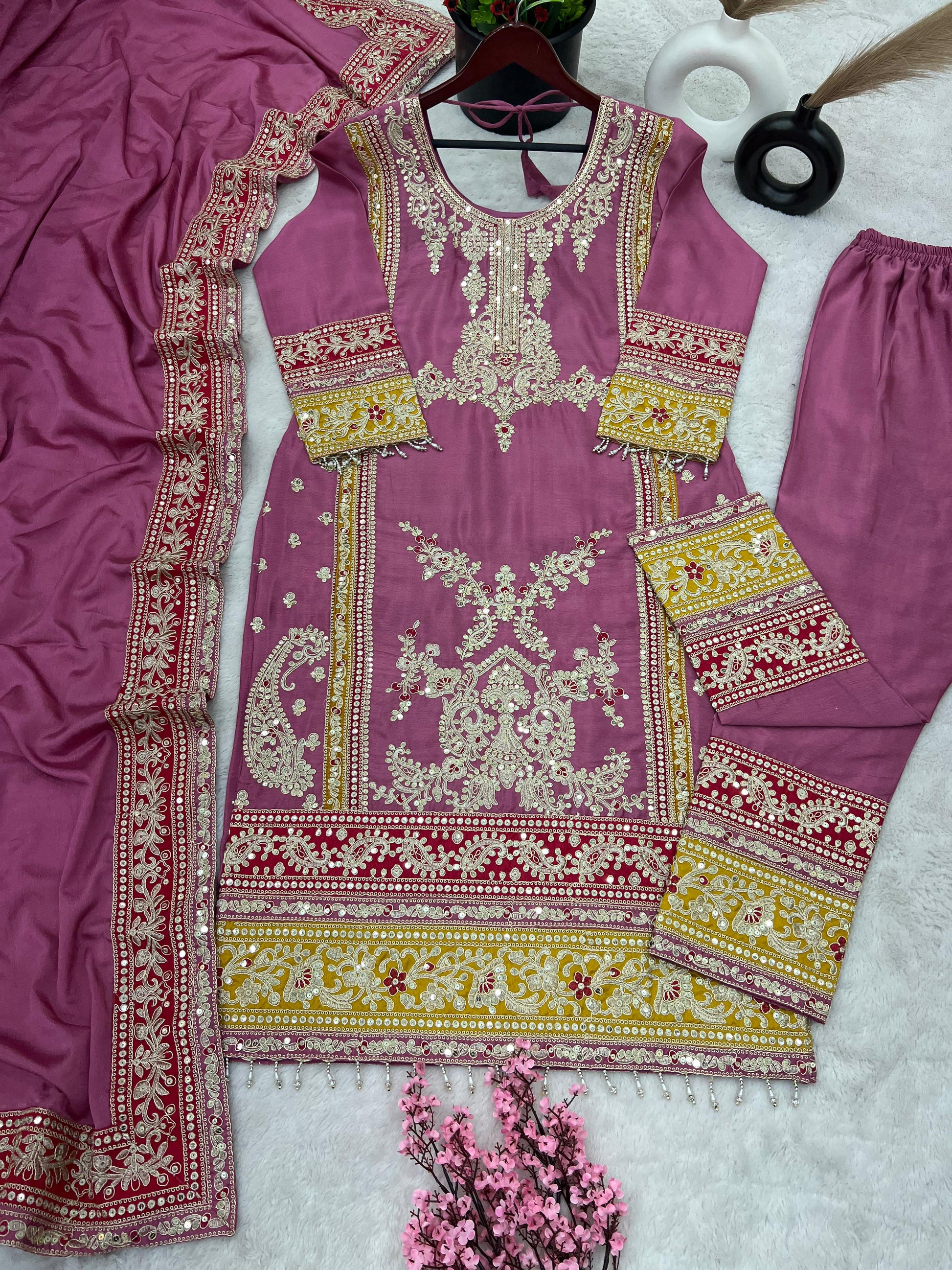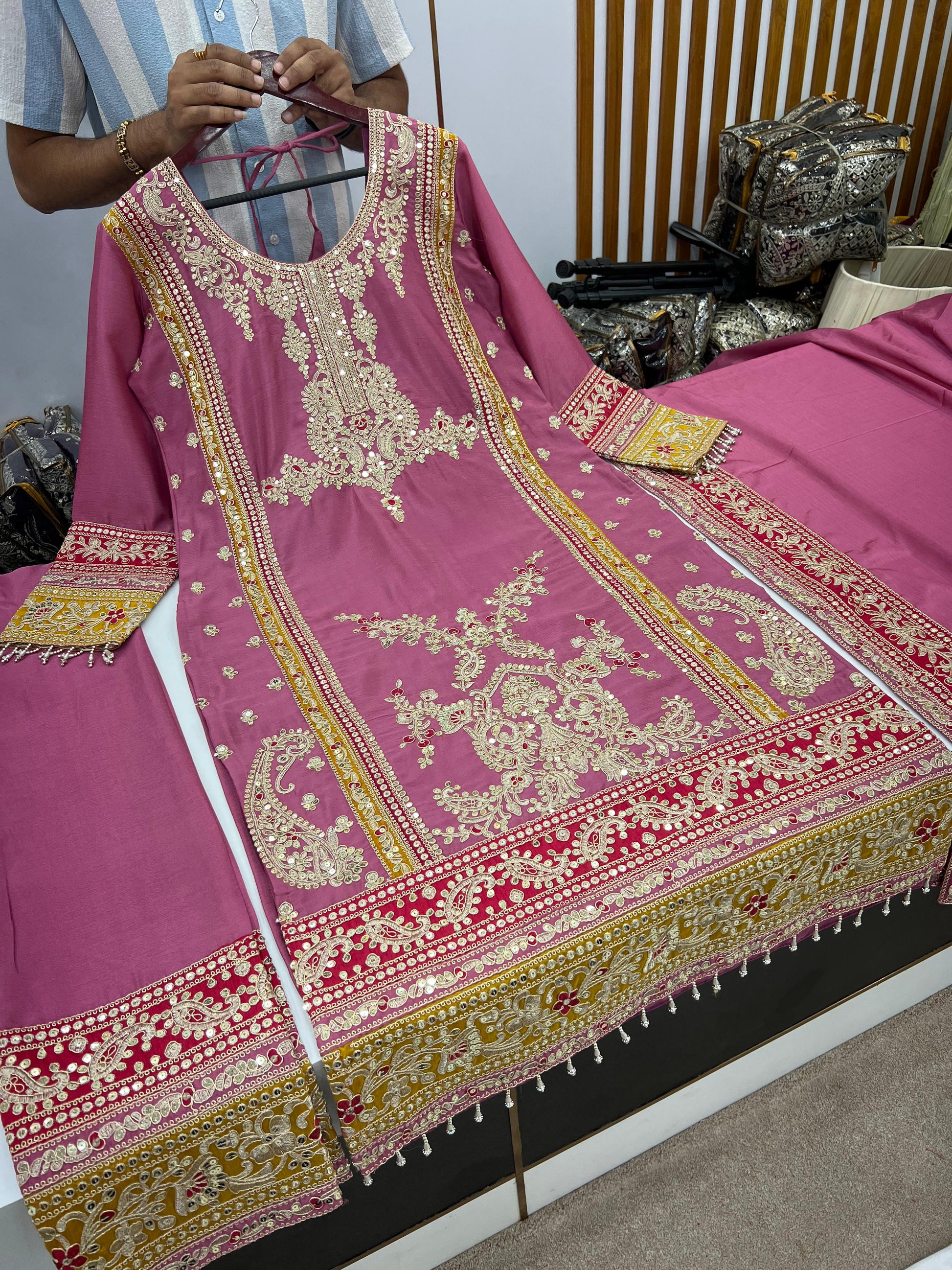 Dusty Pink Salwar Suit With Beautiful Sequence Embroidery Work
