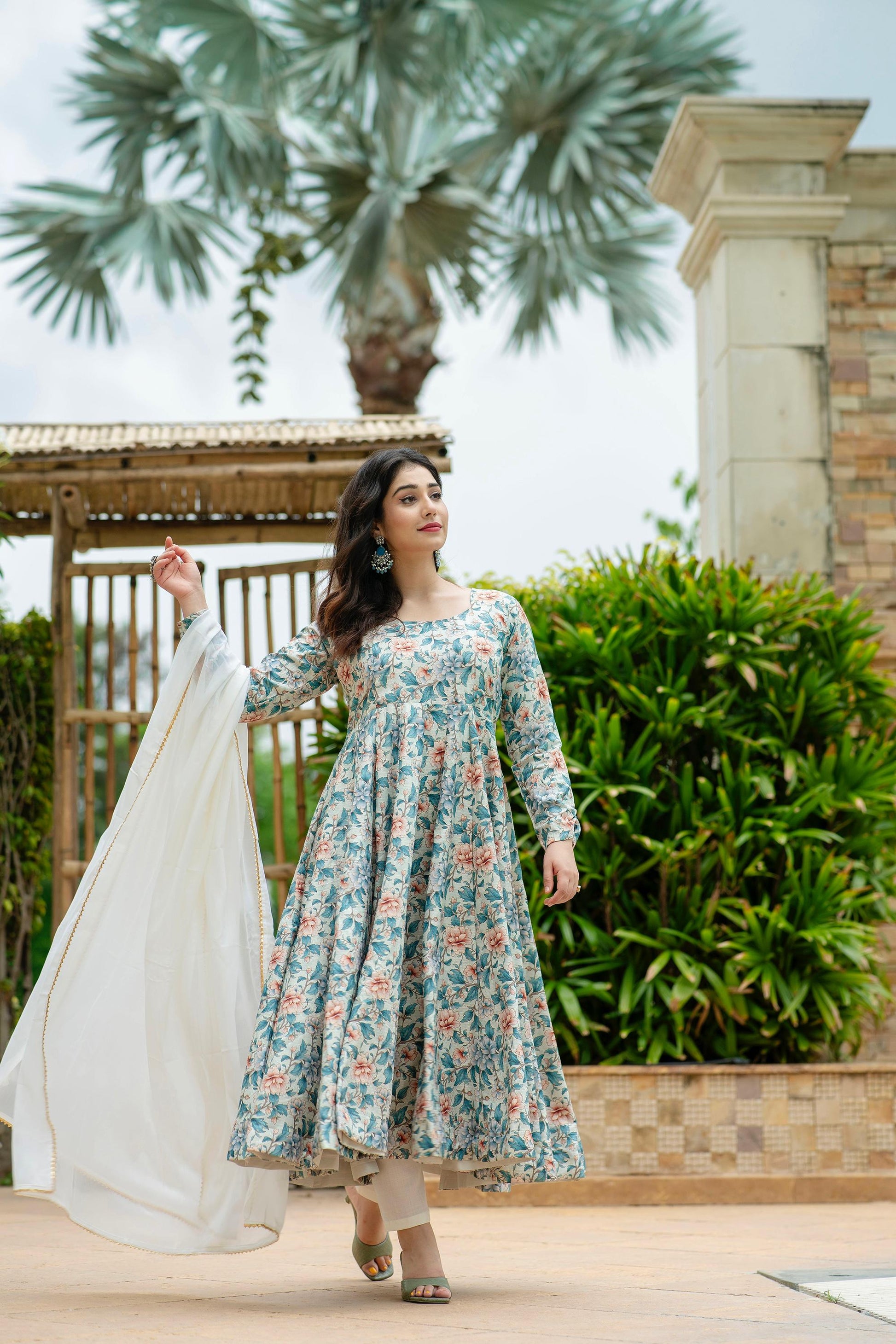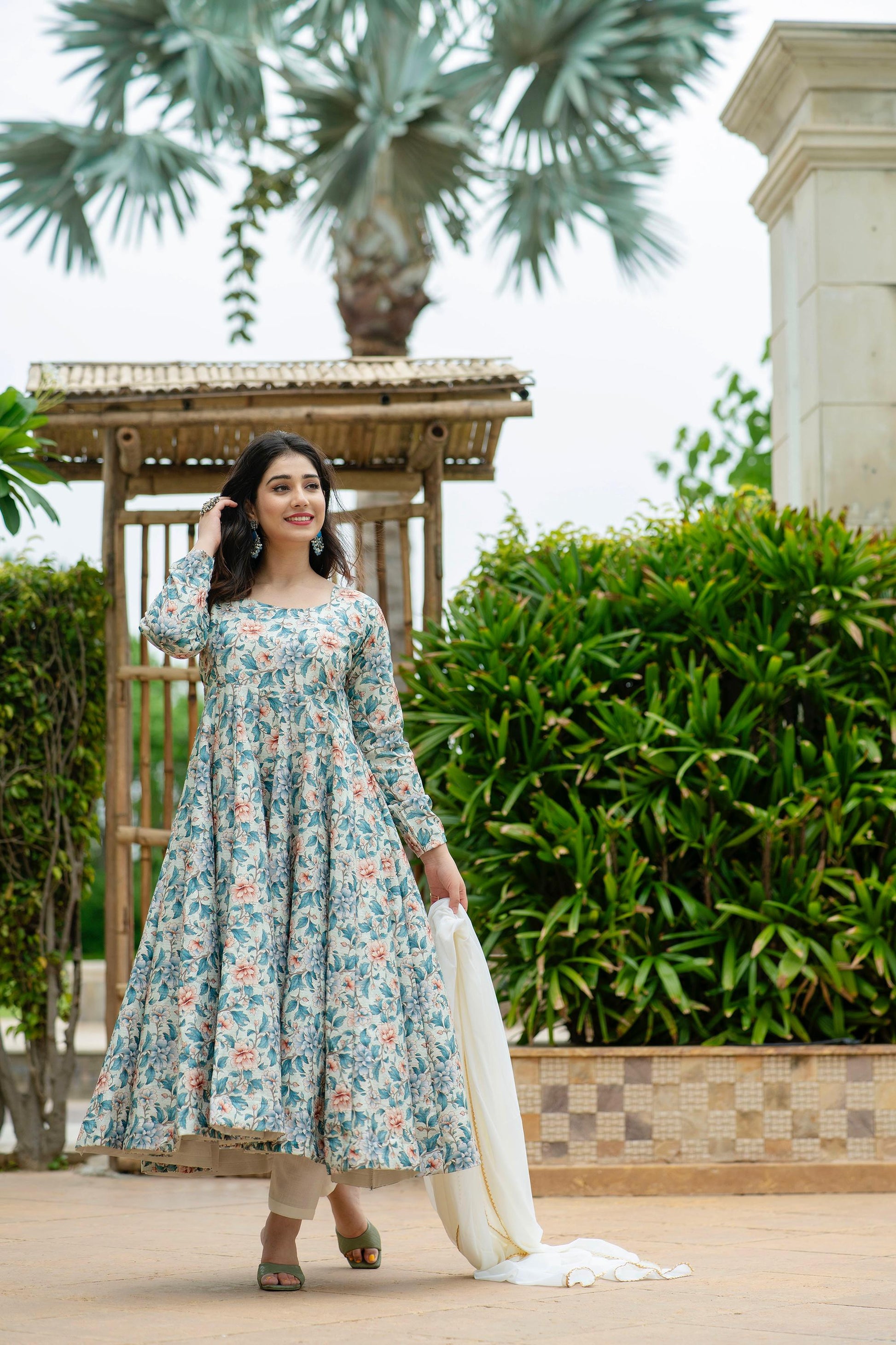 Elegant Sky Blue Color Heavy Pure Muslin Designer Anarkali Suit
