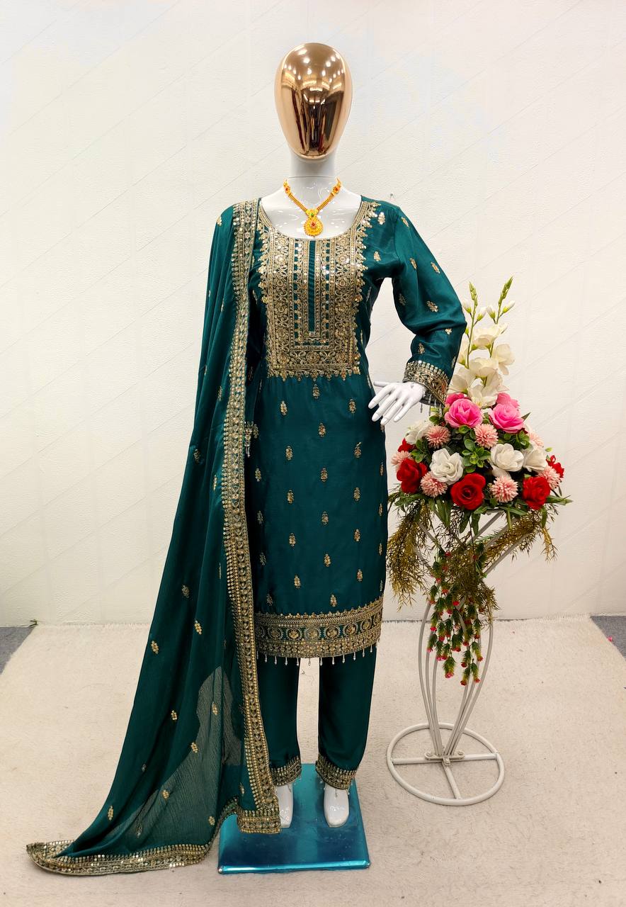 Elegant Teal Green Color Salwar Suit With Dupatta
