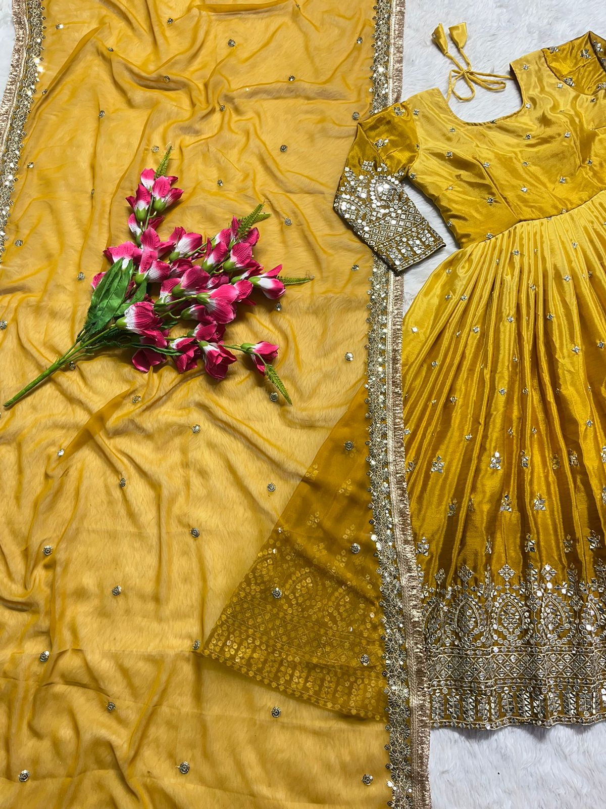 Exclusive Mustard Color Double Shade Anarkali Gown