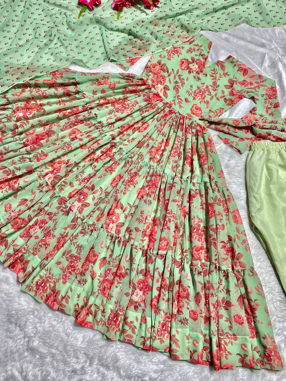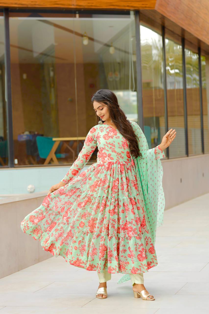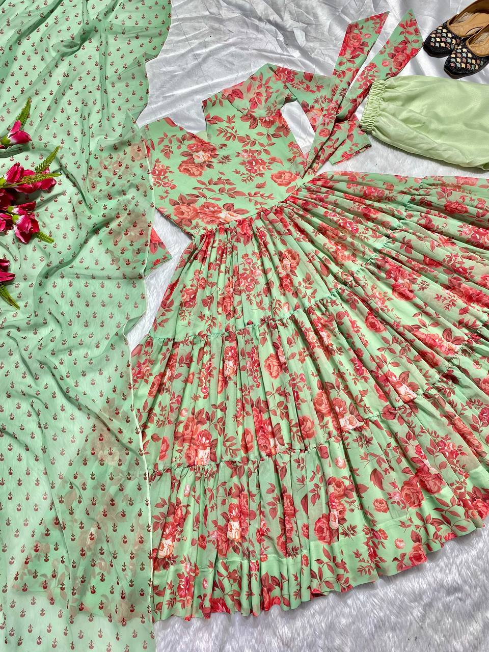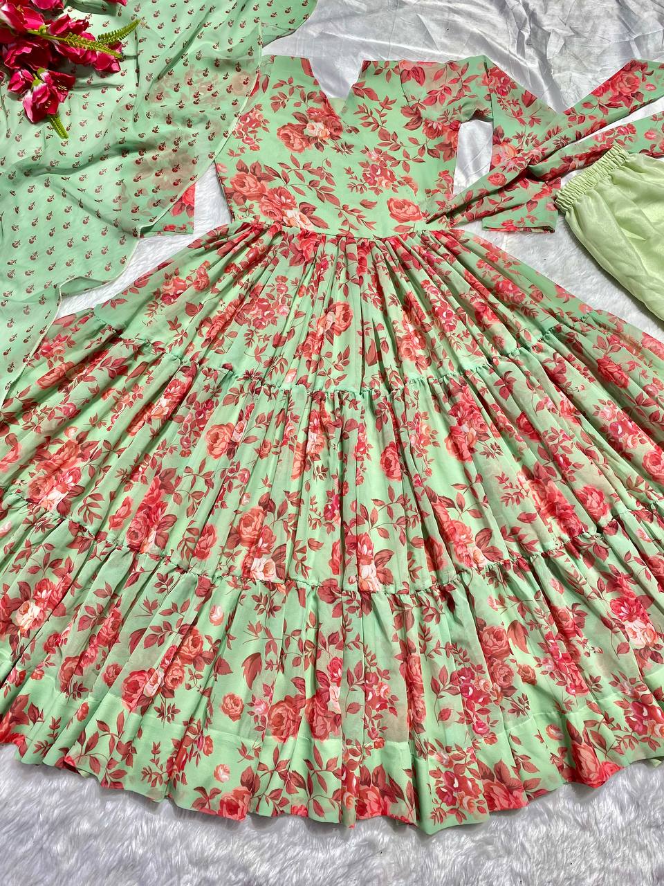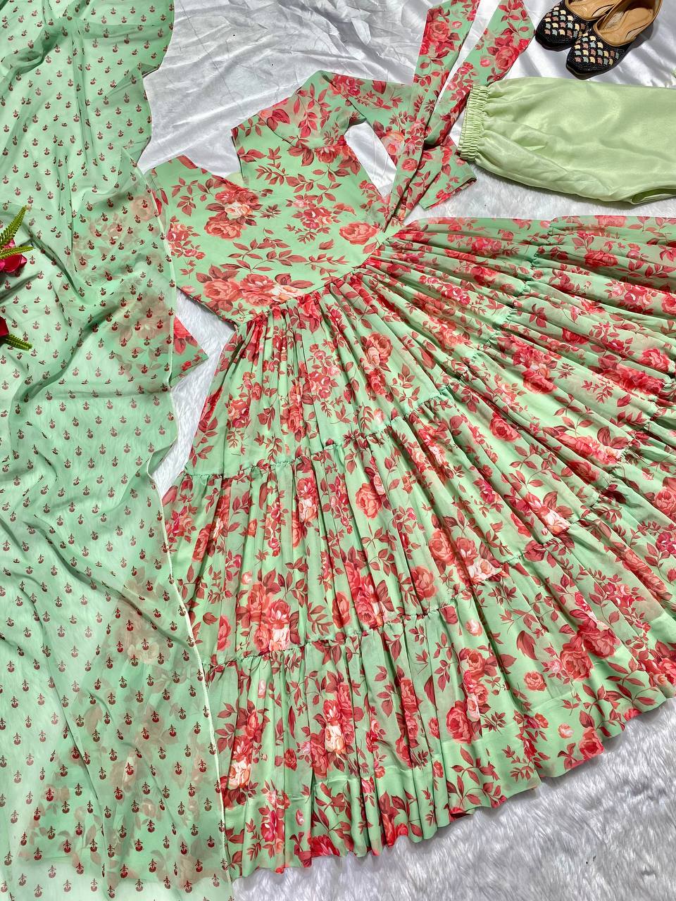 Exclusive Pista Color Digital Printed Anarkali Gown