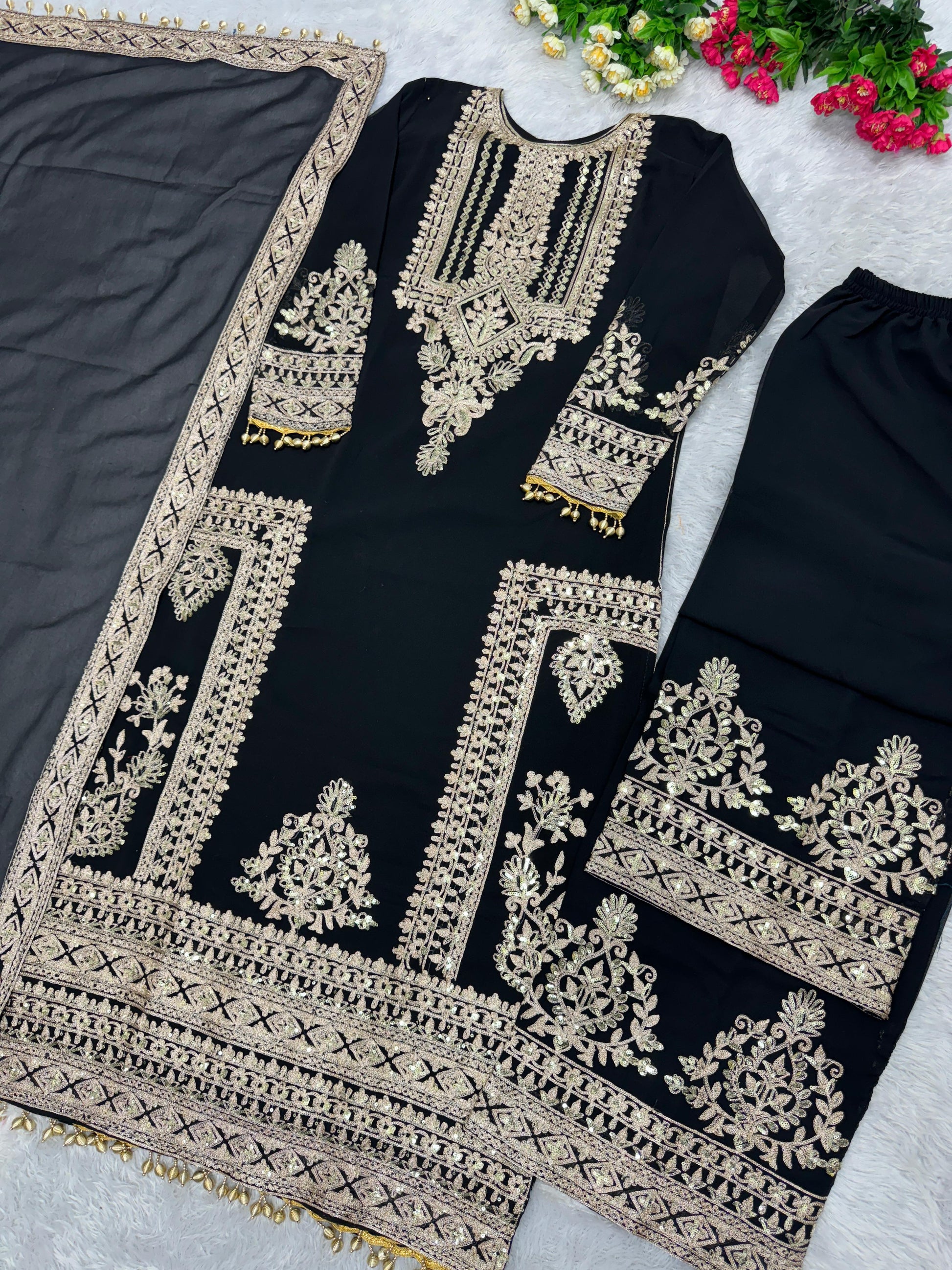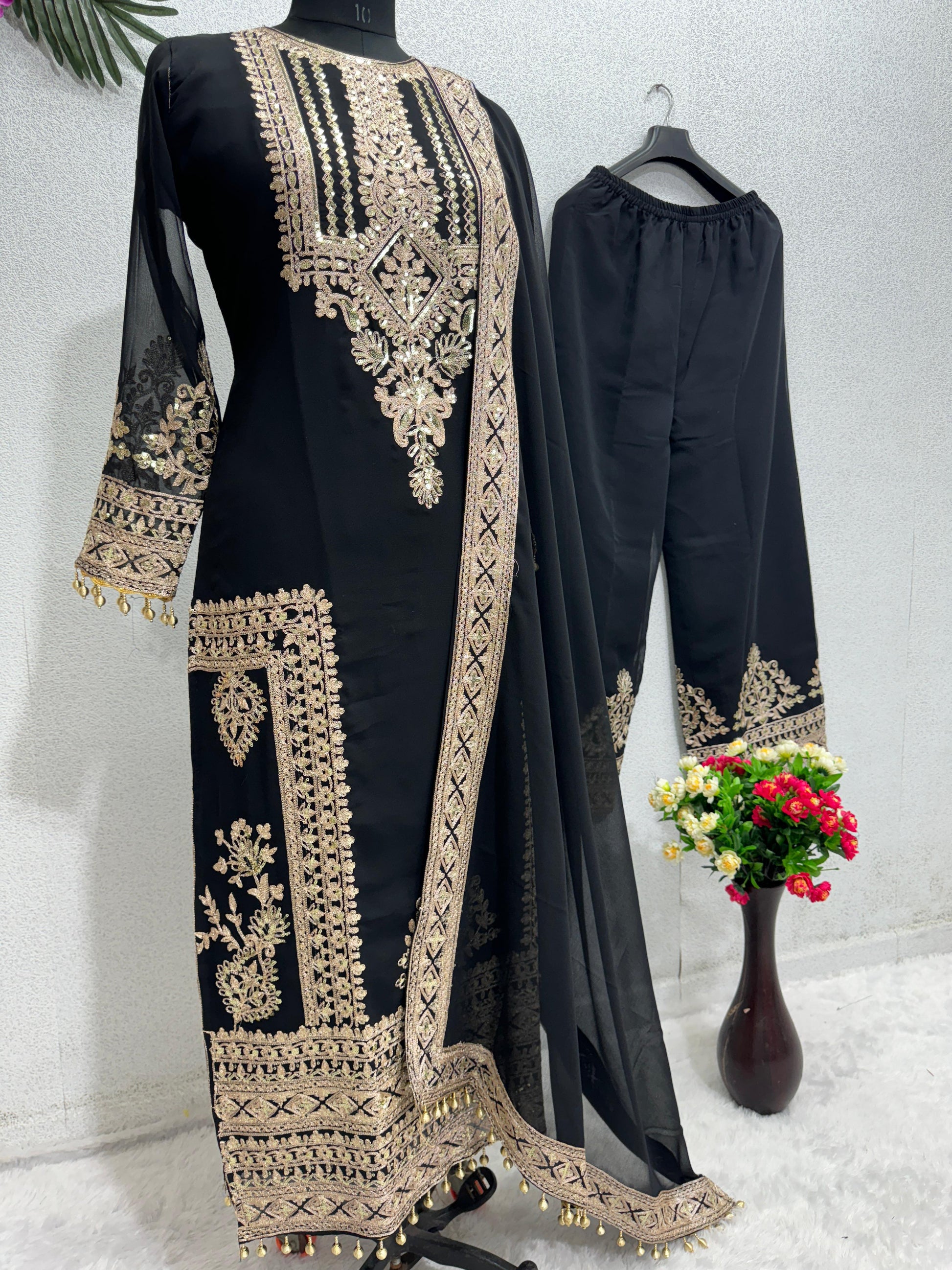 Exotic Black Color Chine Sequence Work Pakistani Suit