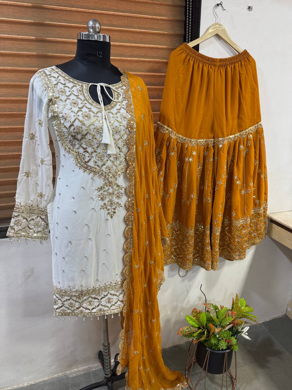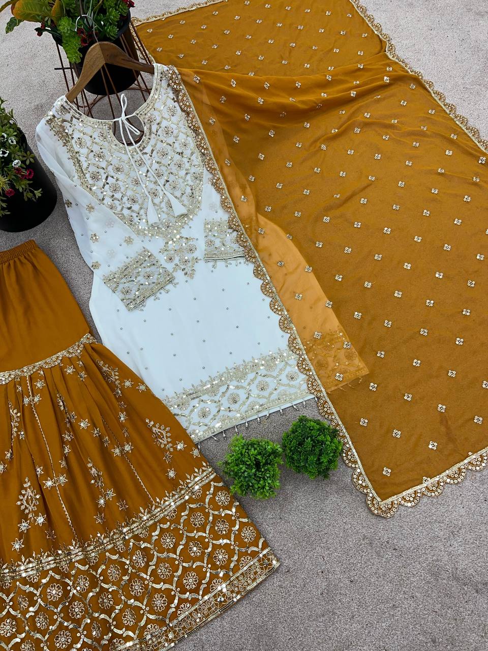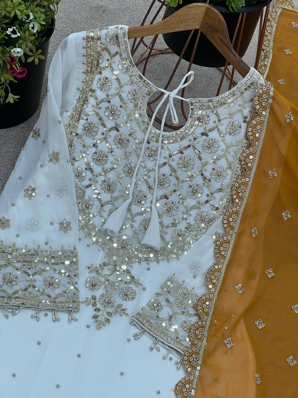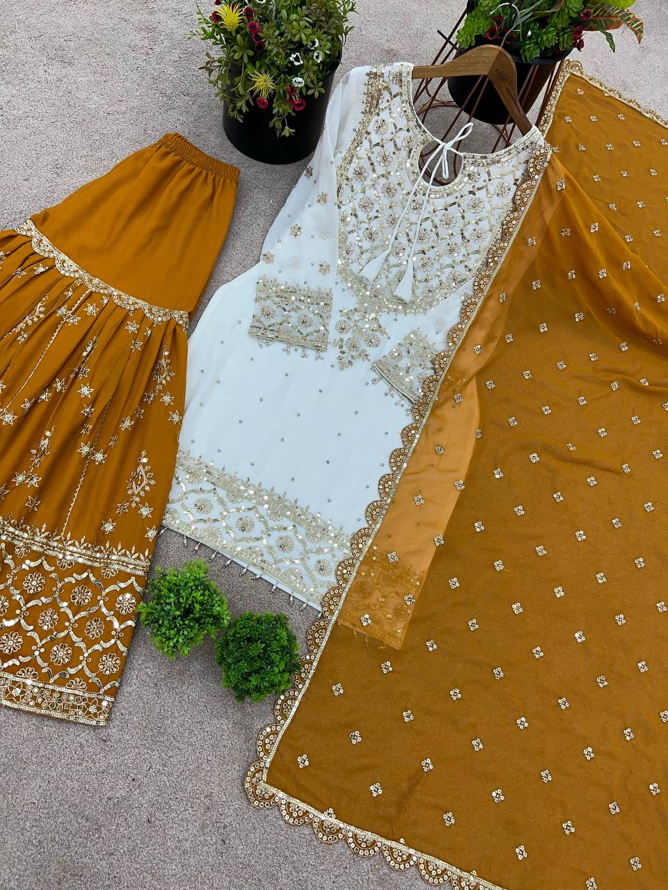 Eyes Catching Haldi Special Yellow Color Heavy Faux Georgette With Embroidery Sequence Work Sharara Suit