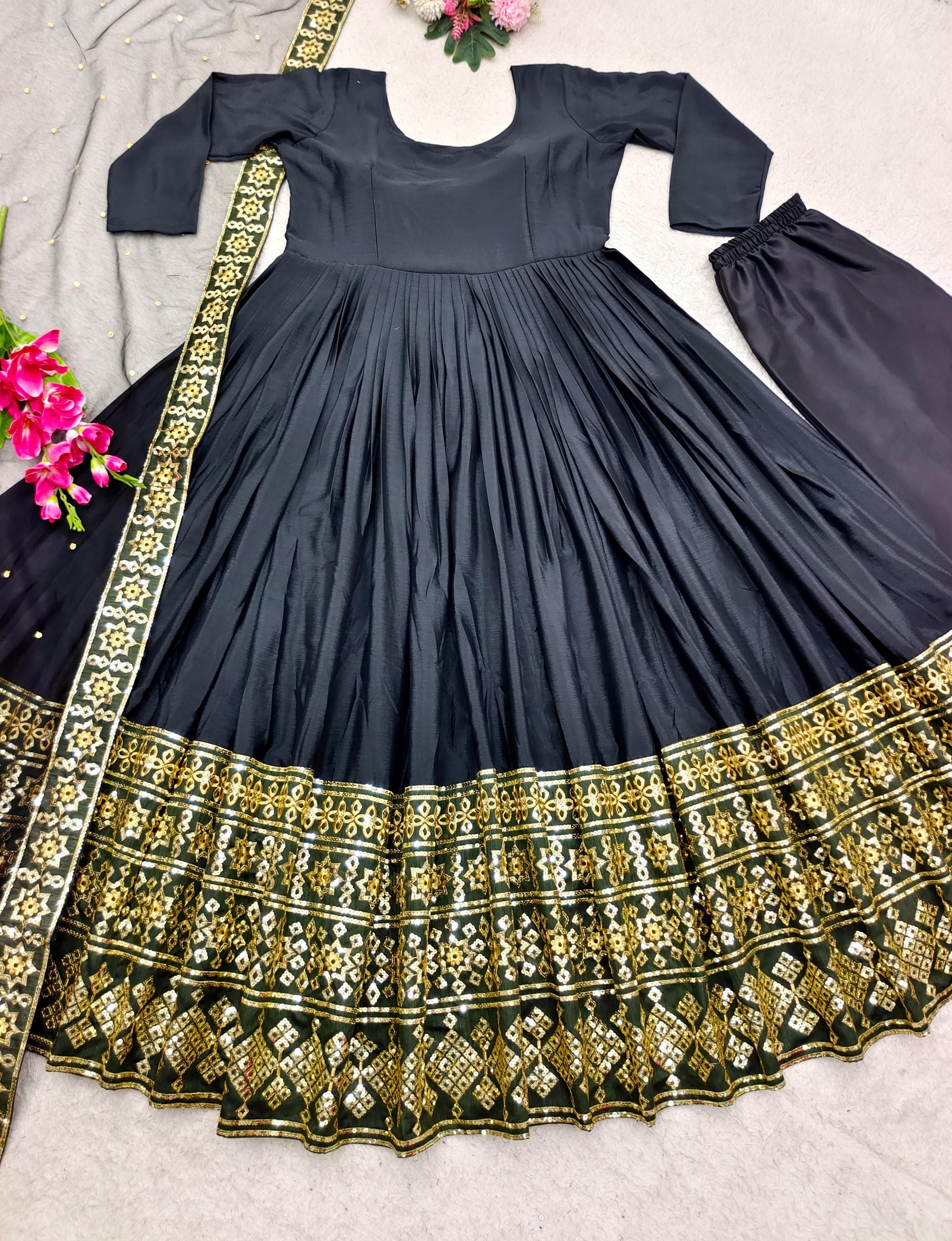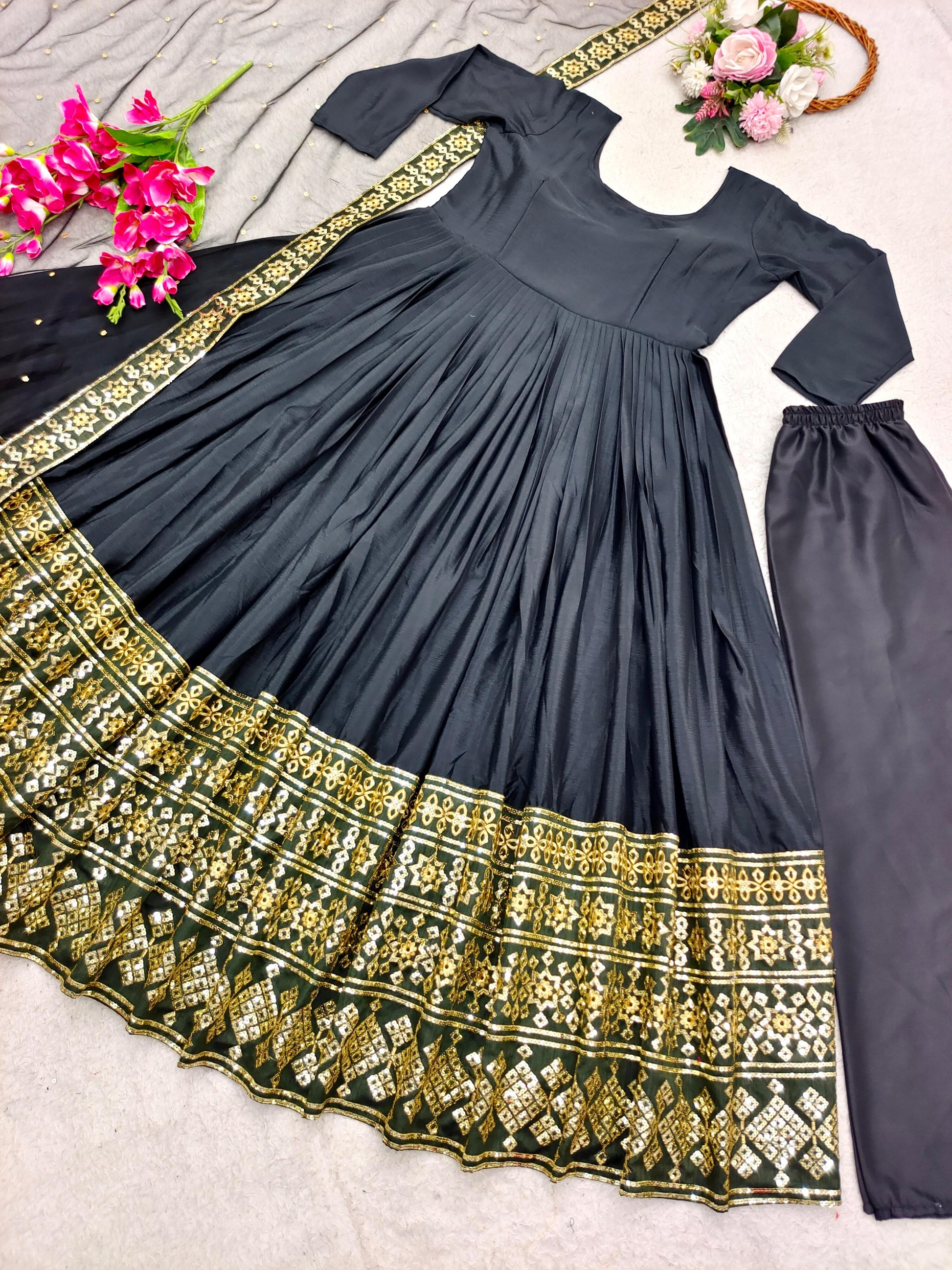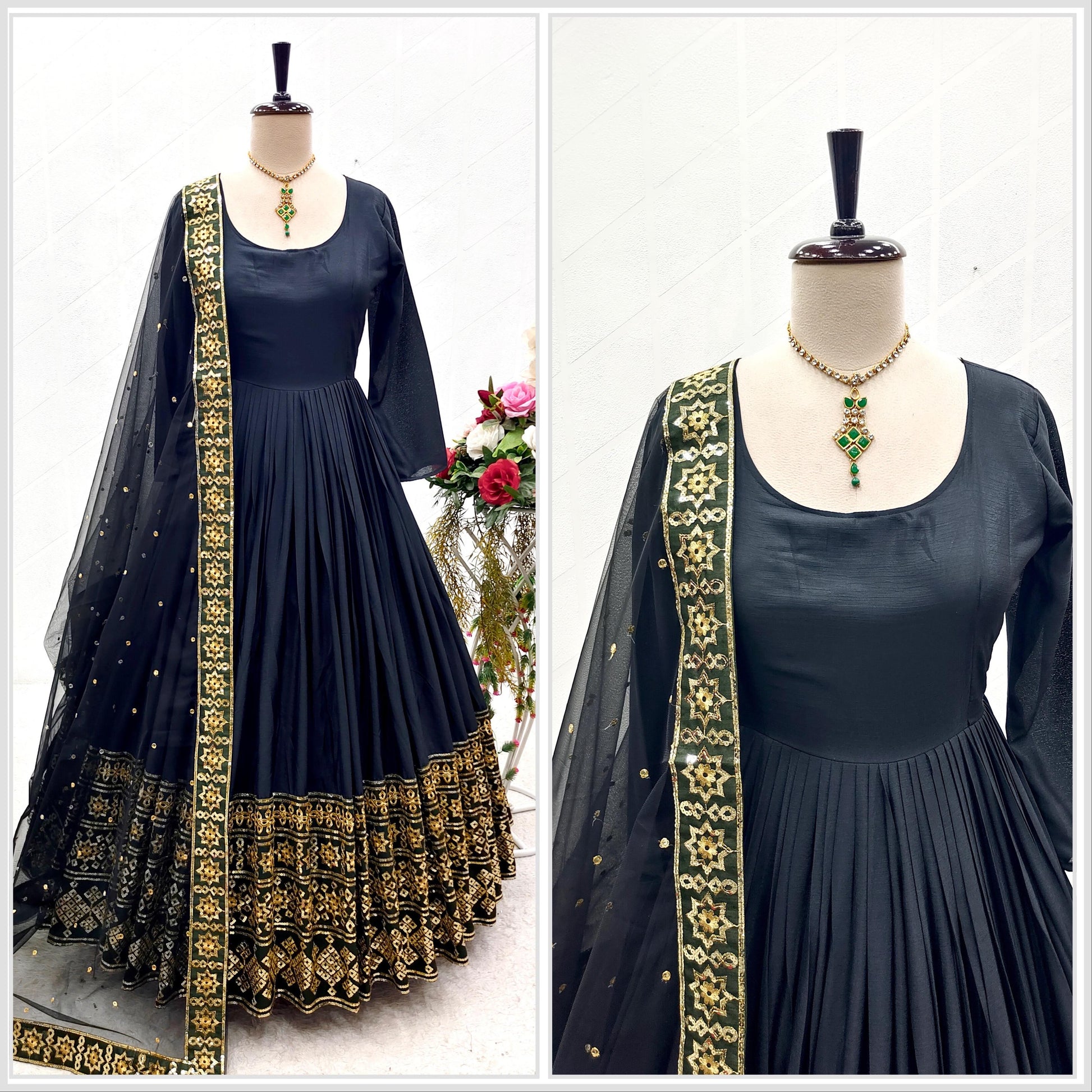 Fabulous Black Color Embroidery Work Border Anarkali Gown