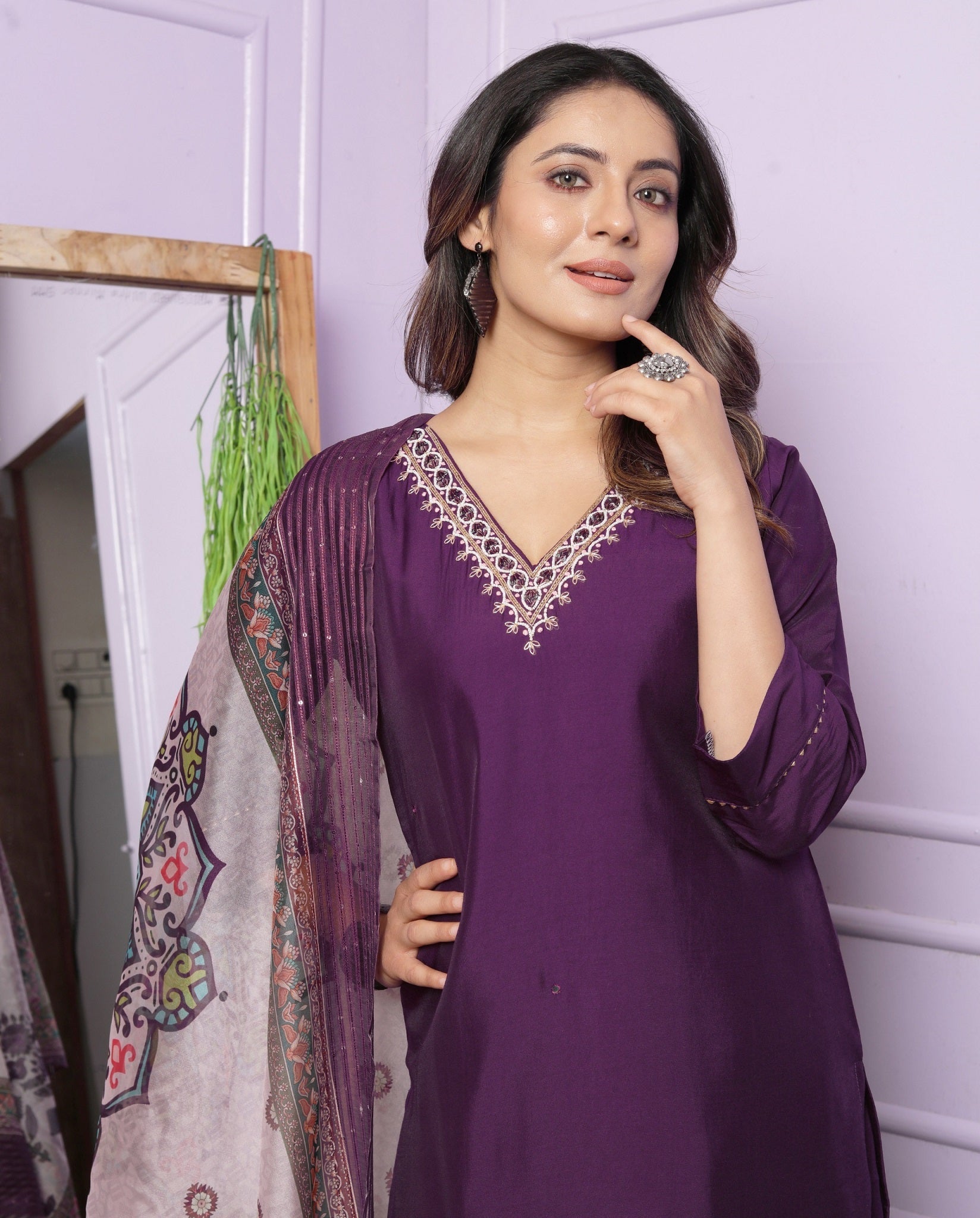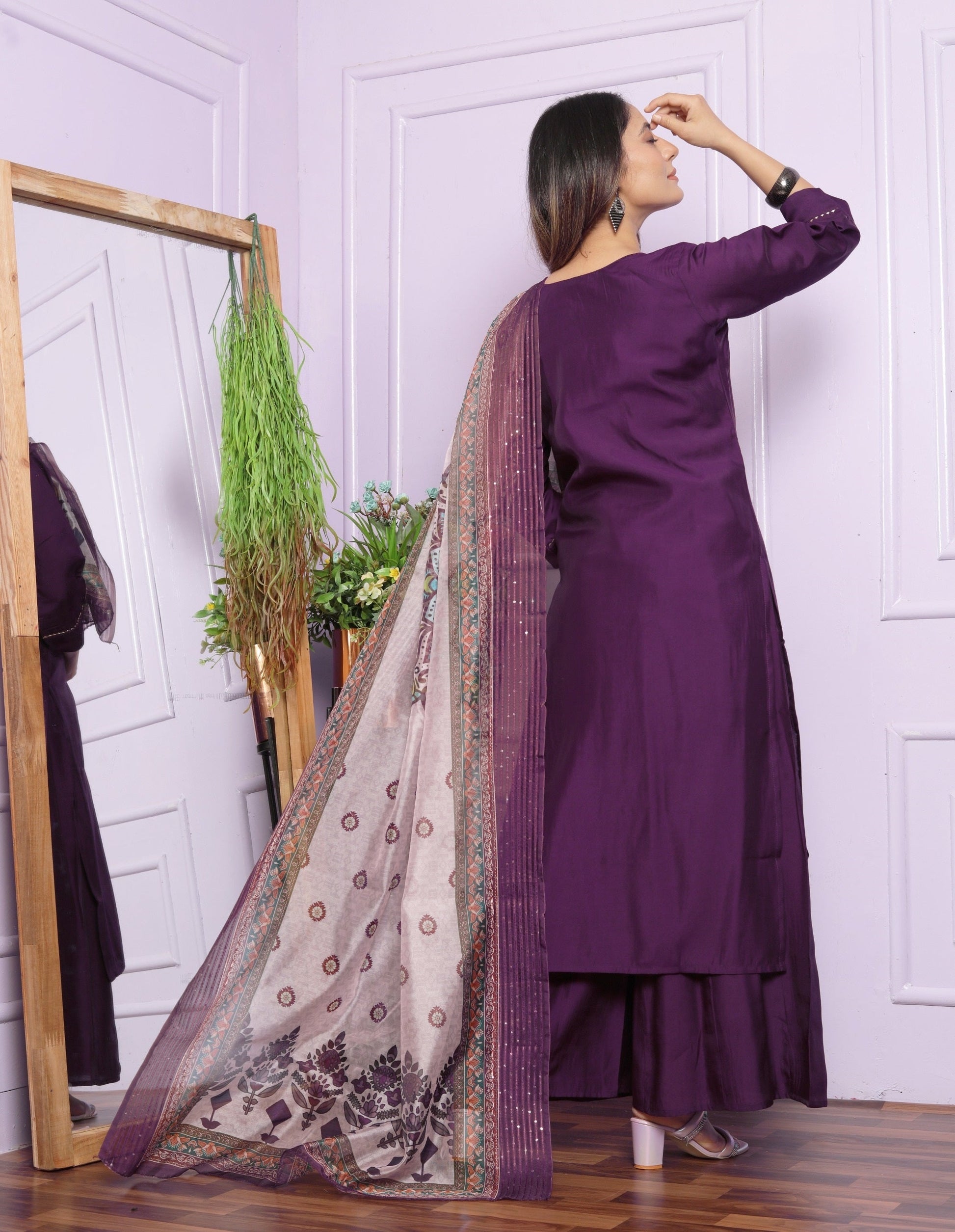 Fabulous Hand Work Purple Color Palazzo Suit