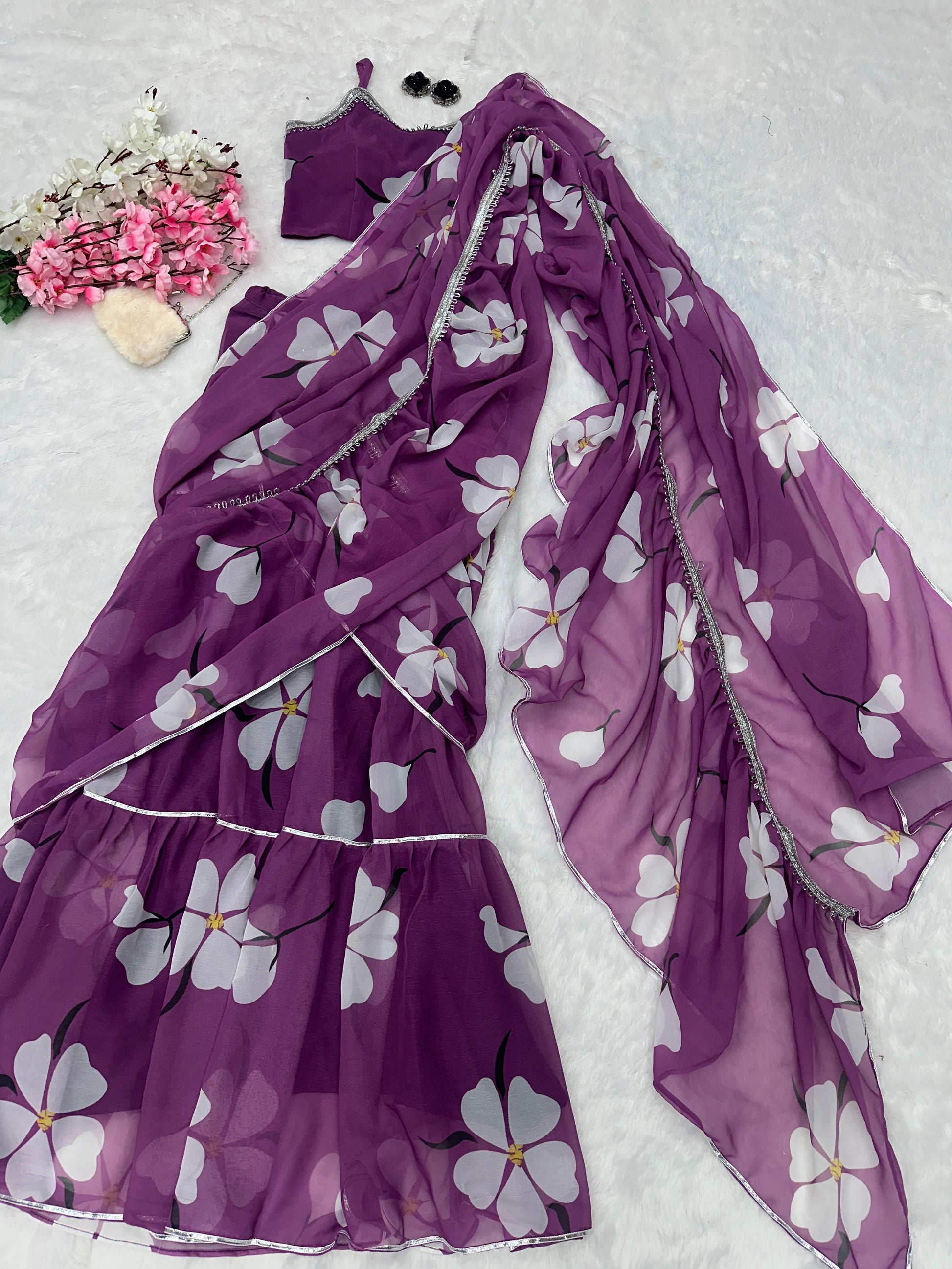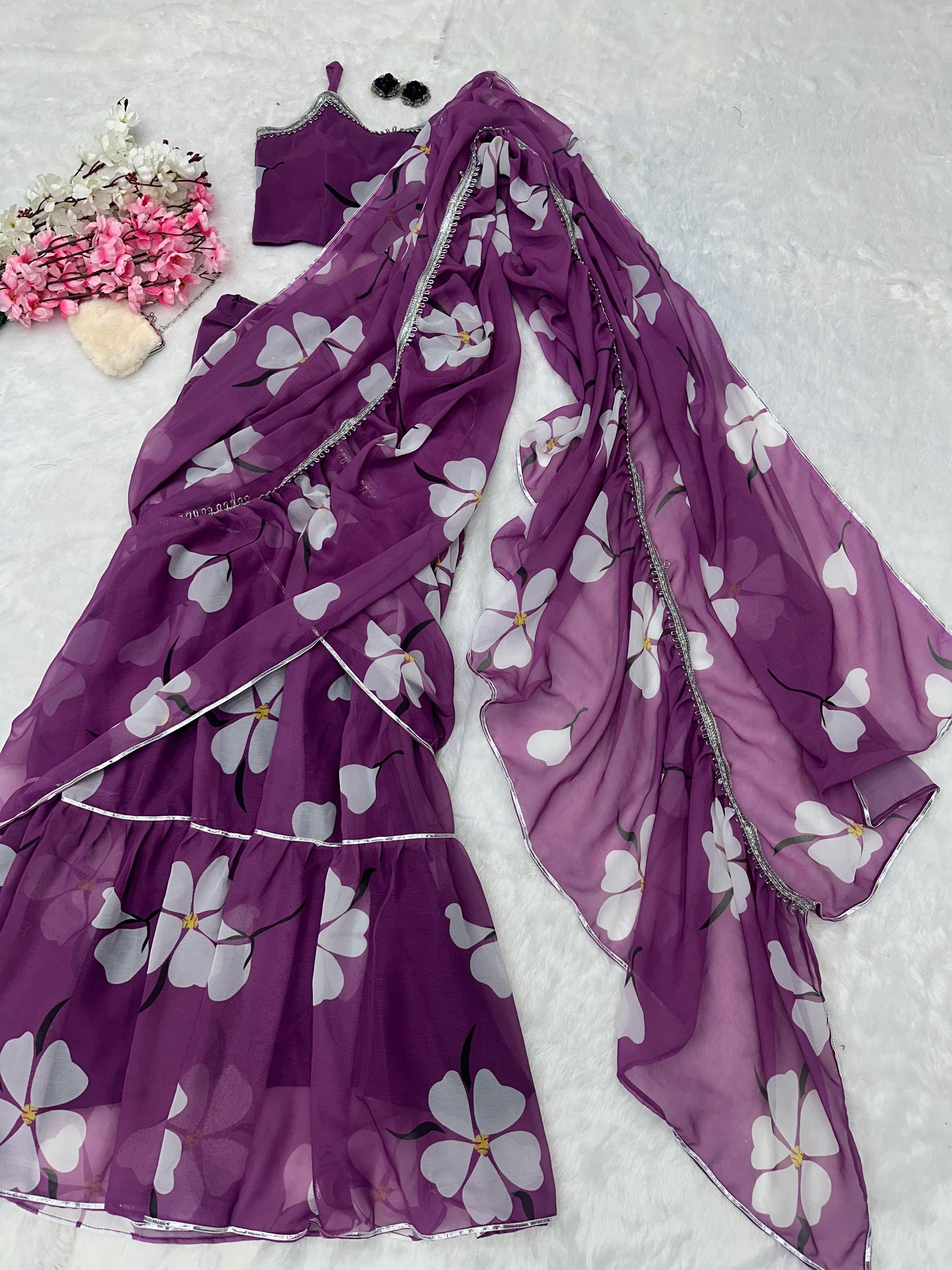 Lehnga Saree - Georgette Ruffle Stayle Lehnga With Attatched Dupatta Style Pattern 🌸