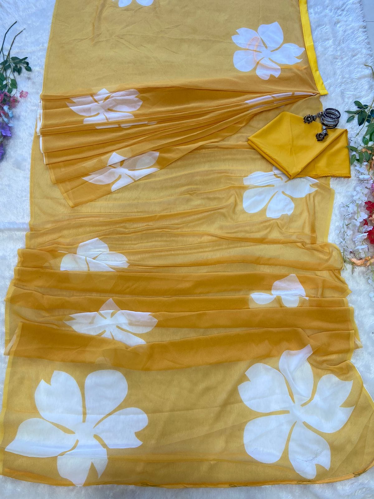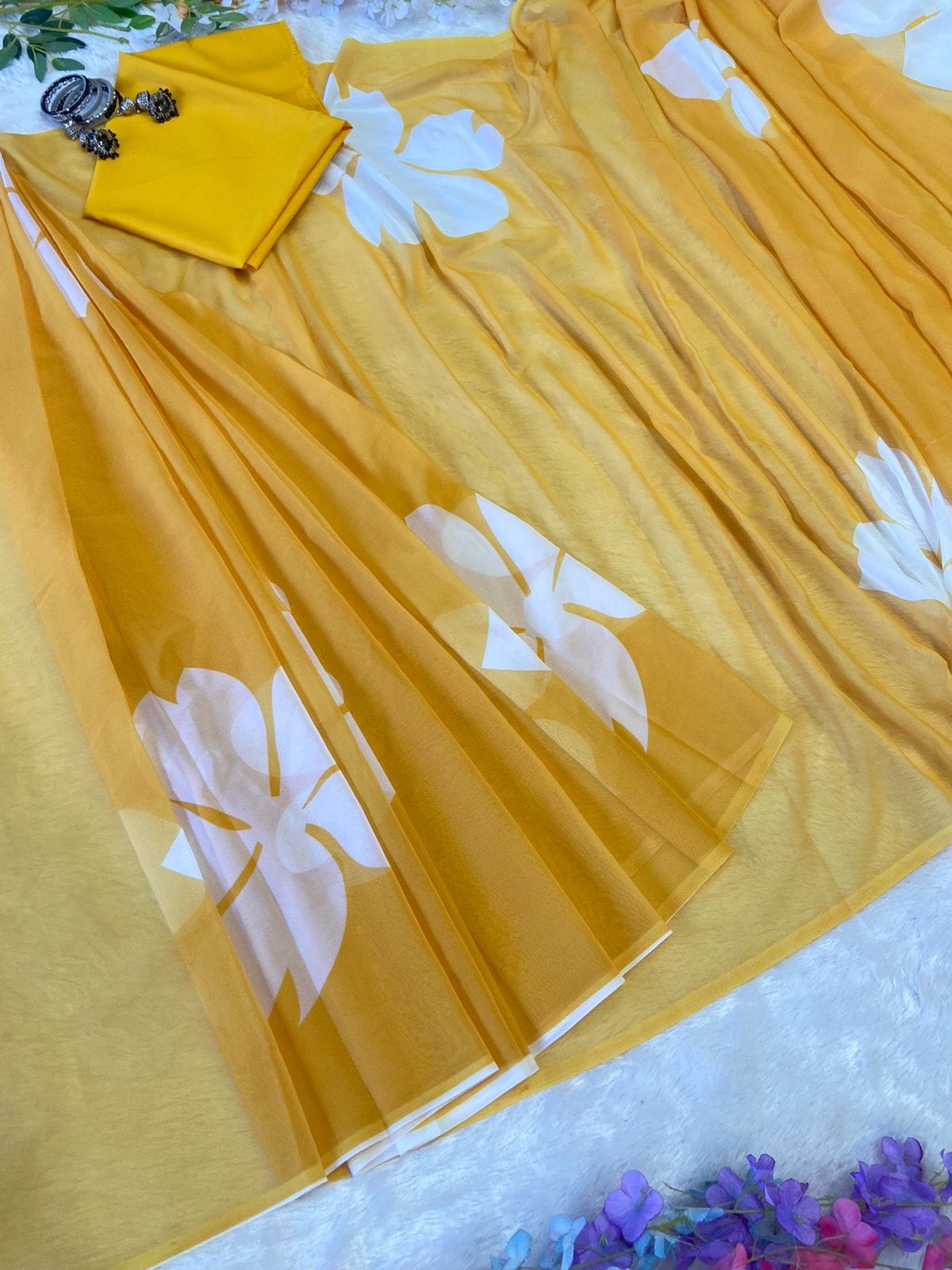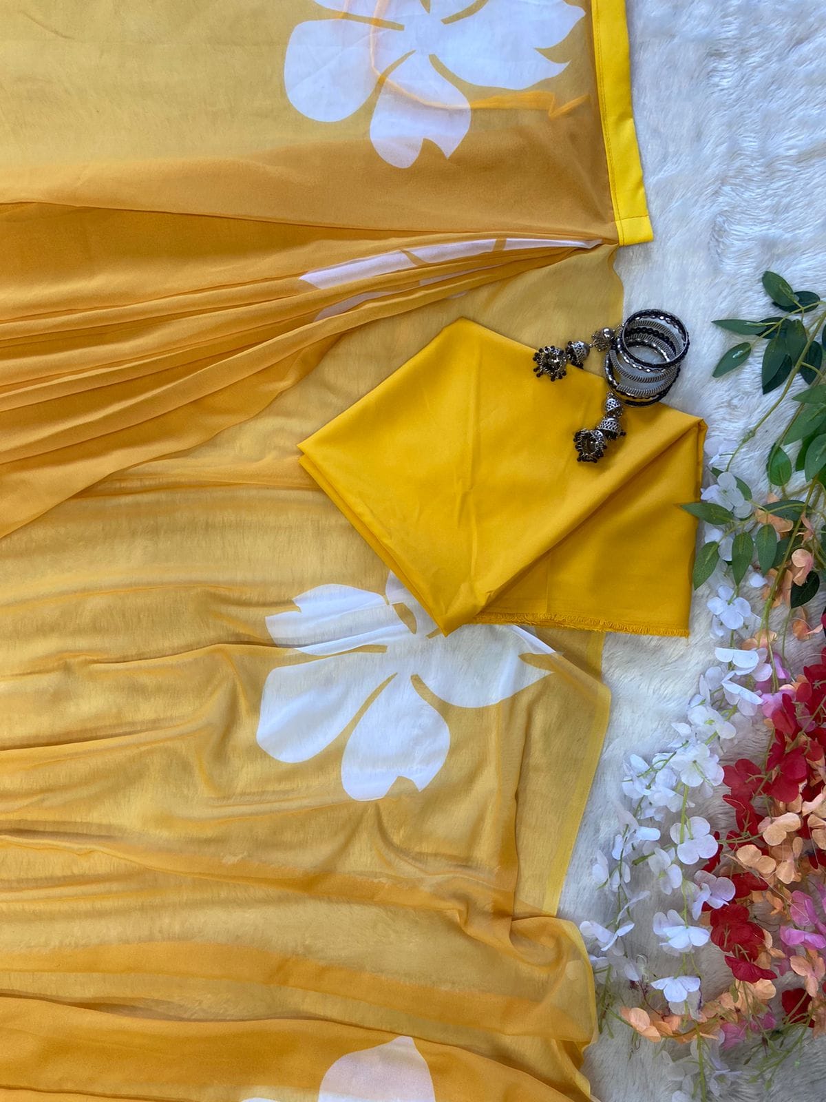 Fabulous Yellow Color Ready To Wear Printed Saree