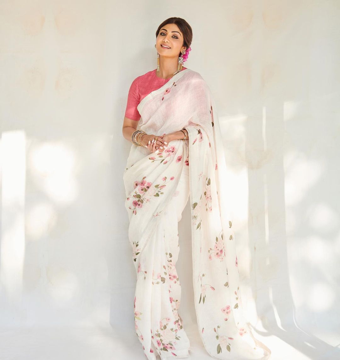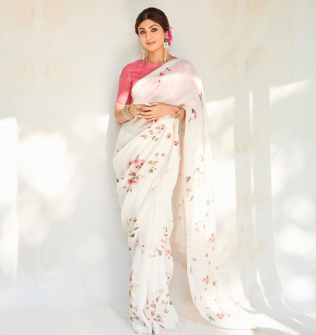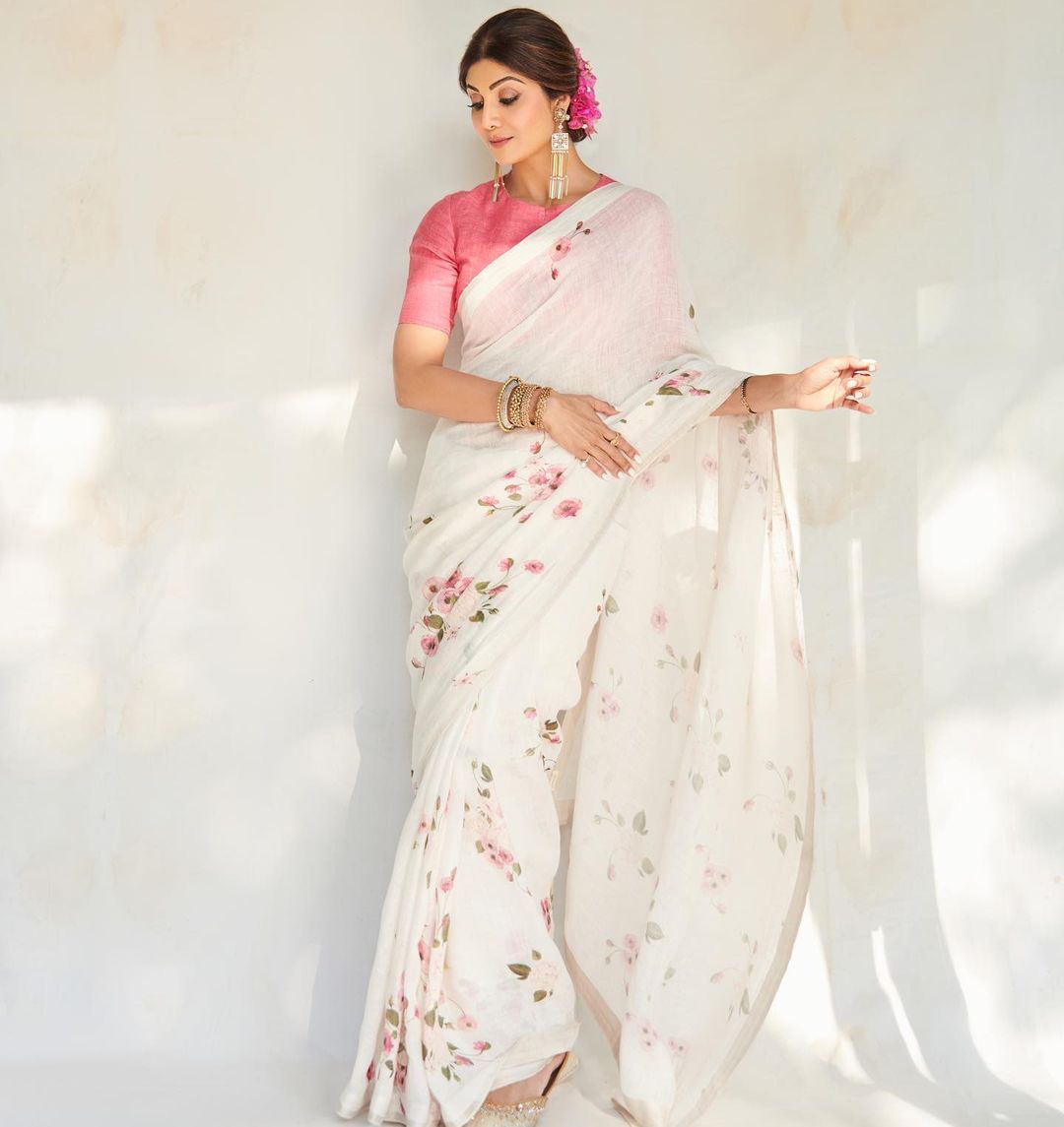 Fancy White Color Pure Cotton Lilen With Digital Printed Designer Saree