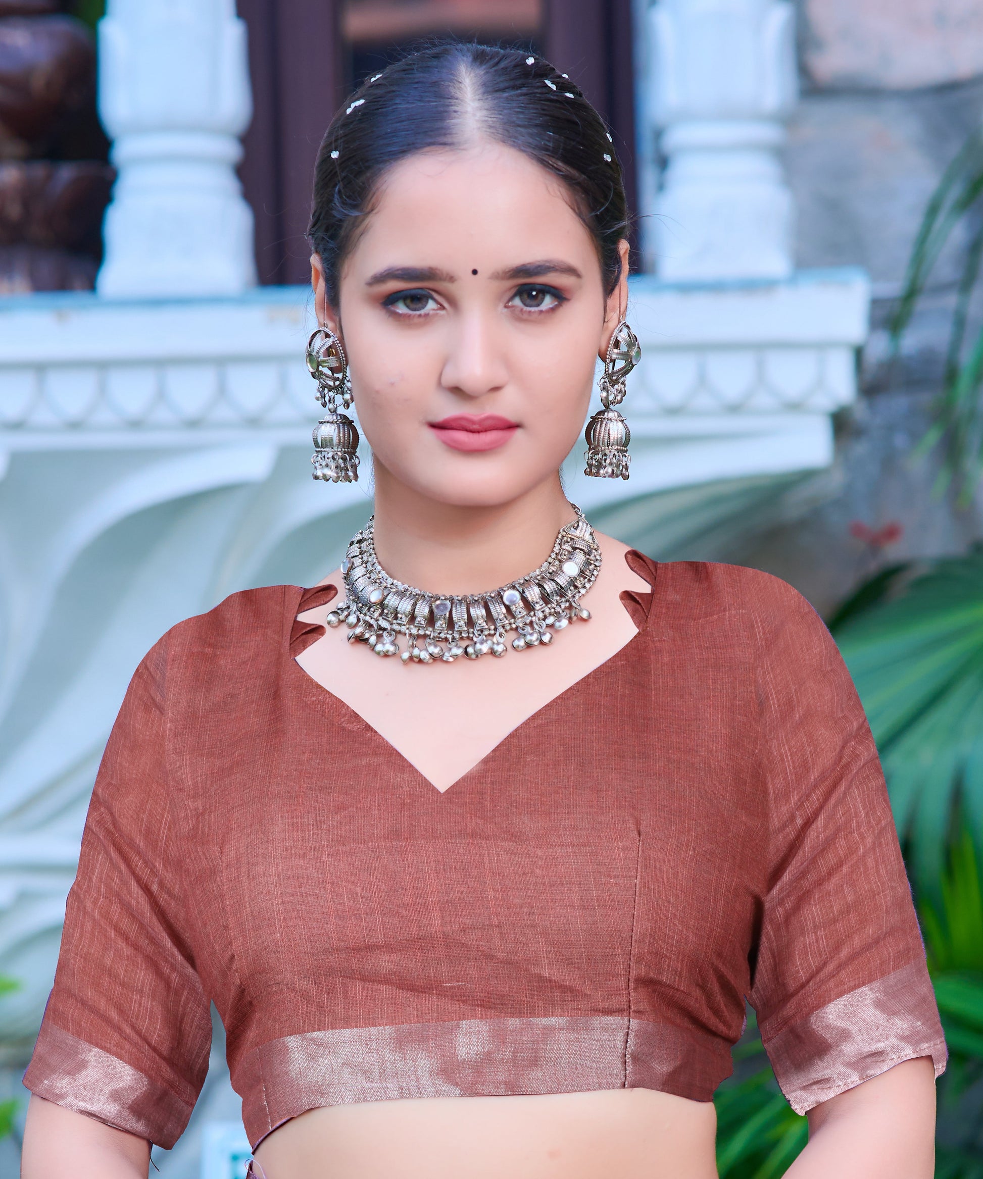 Fantastic Brown Color Color Pure Cotton Lilen With Digital Printed Designer Saree