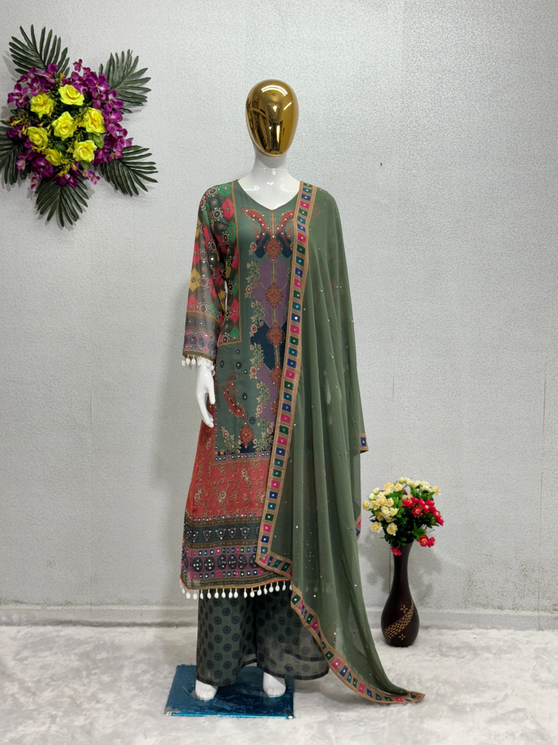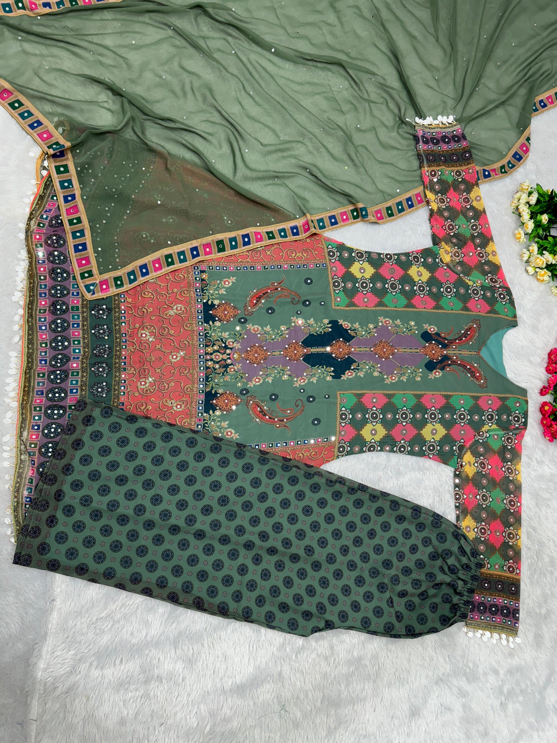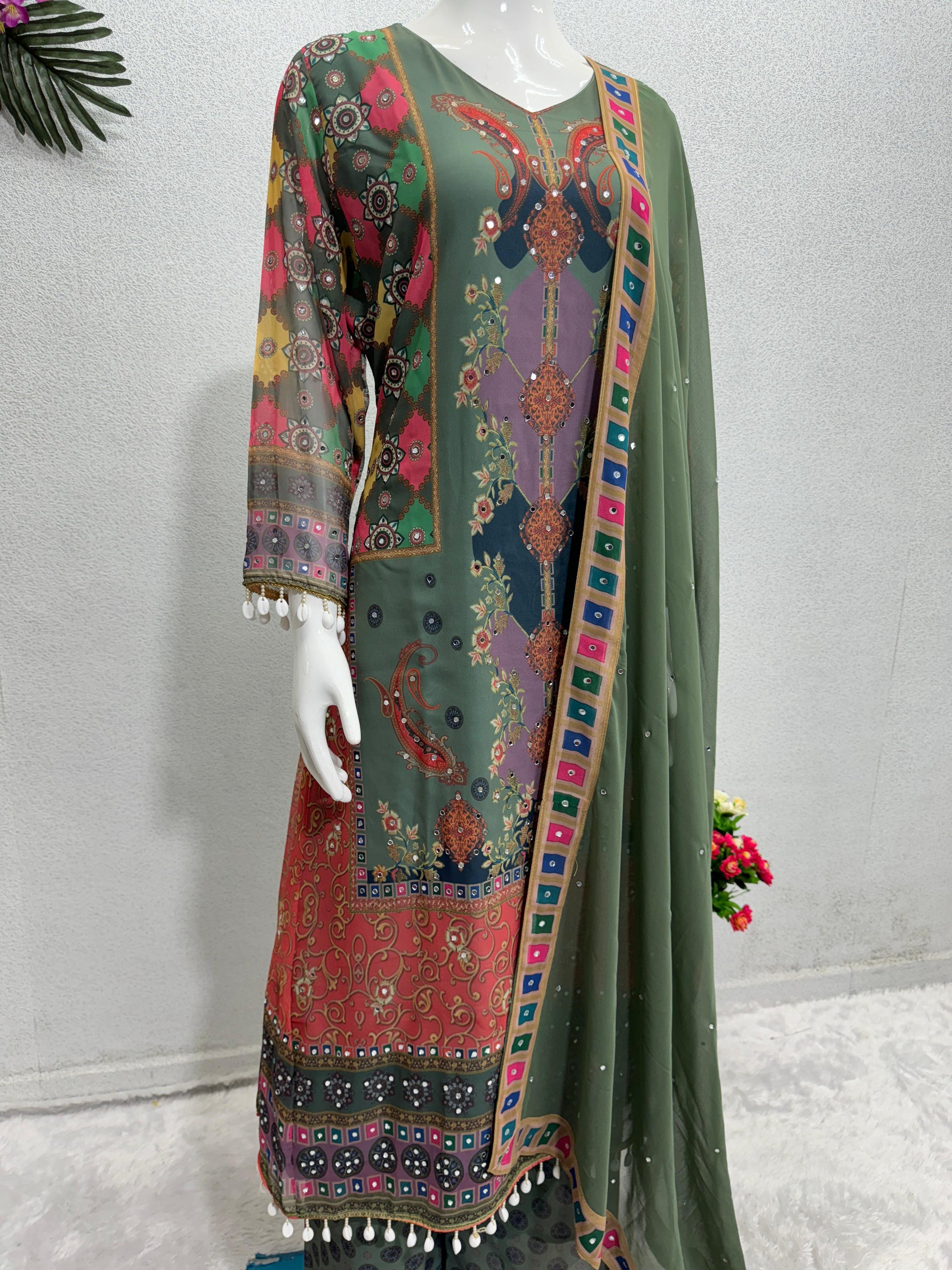 Work | Fancy Digital Print With, Real Mirror Hand Work And Kodi Lace |