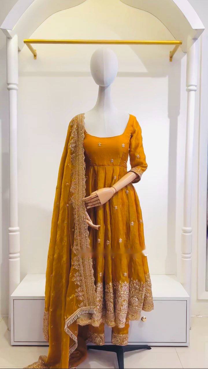 Fantastic Haldi Wear Yellow Color Pure Zimmy Cho Silk With Heavy Embroidery Sequence Work Anarkali Suit