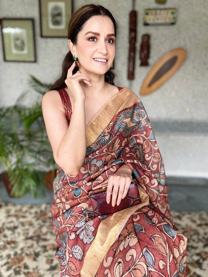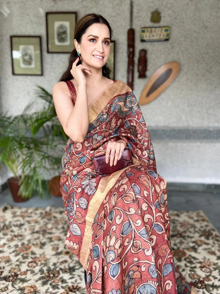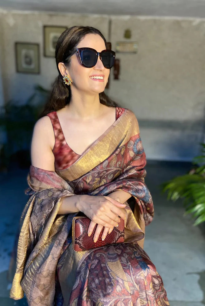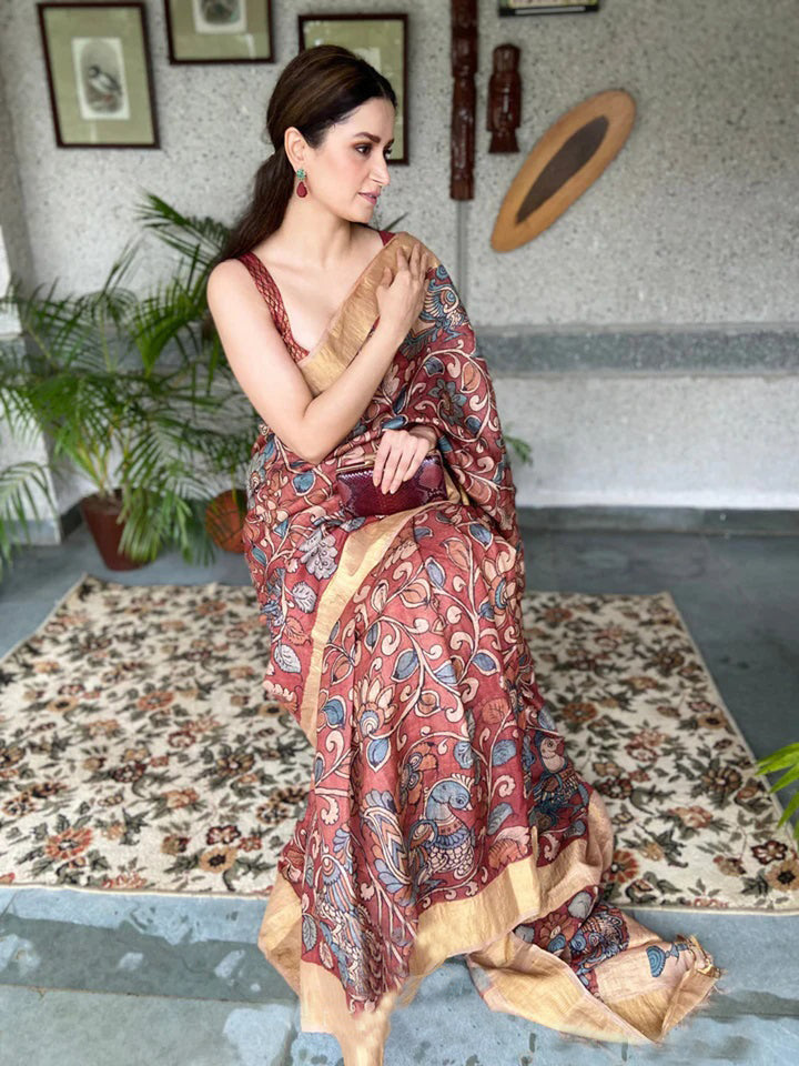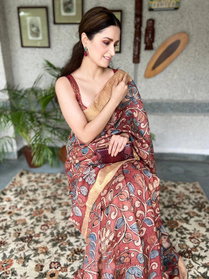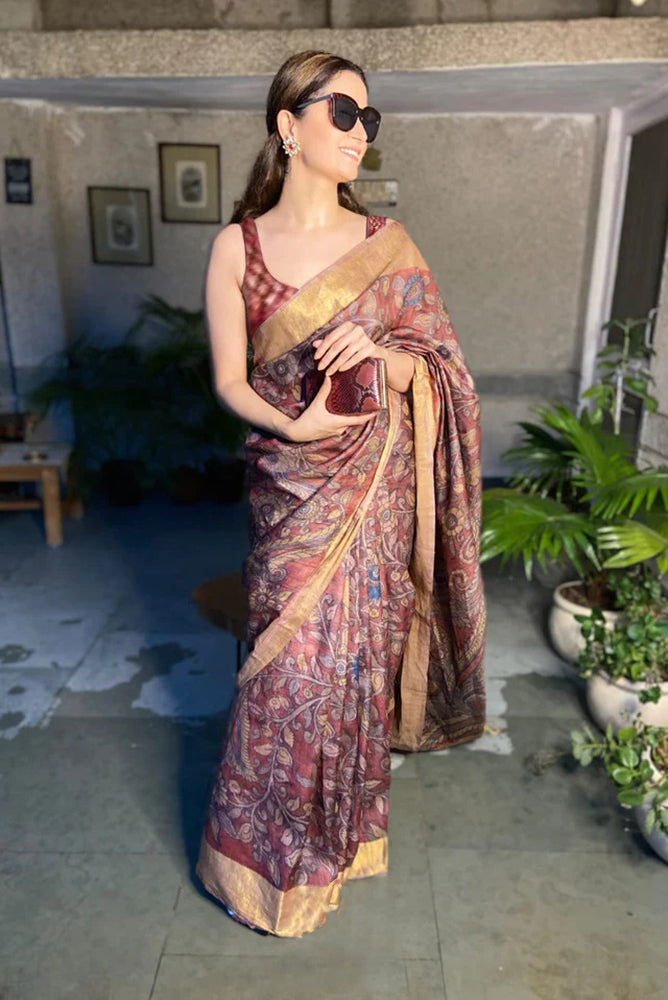Fantastic Maroon Color Color Pure Cotton Lilen With Digital Printed Designer Saree