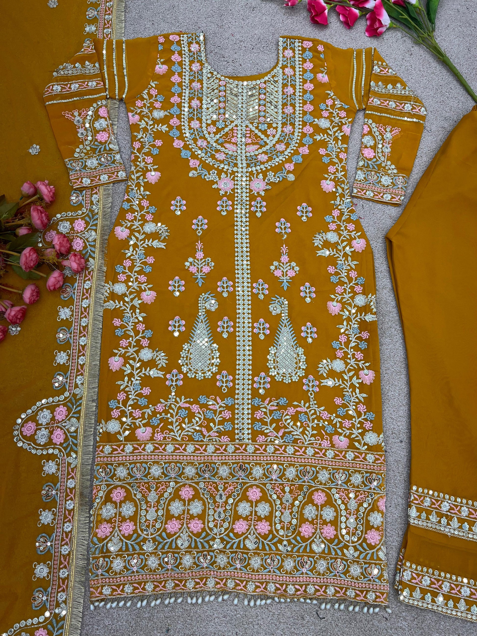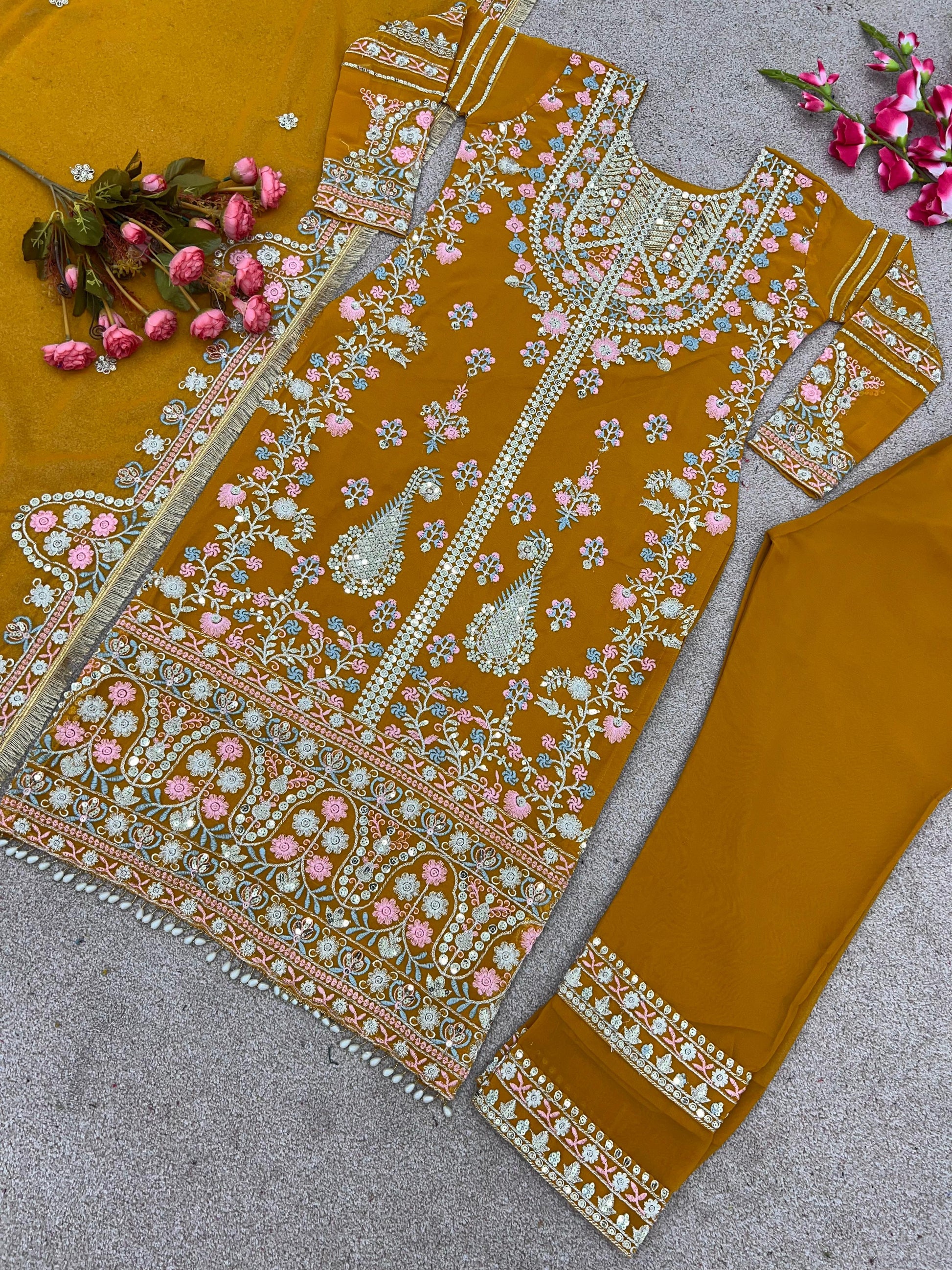 | Fabric | Heavy Faux Georgette With Embroidery Sequence Work |