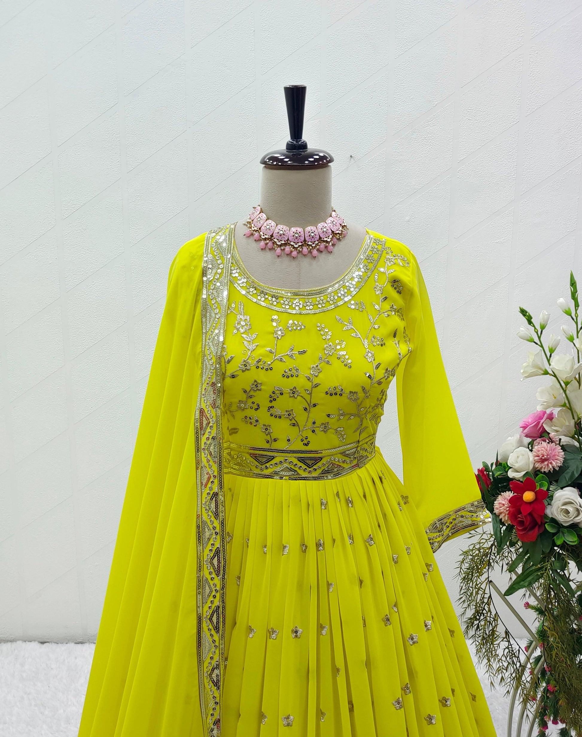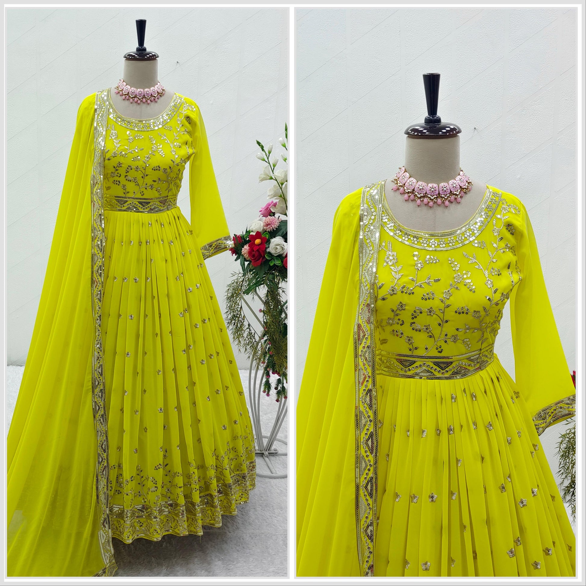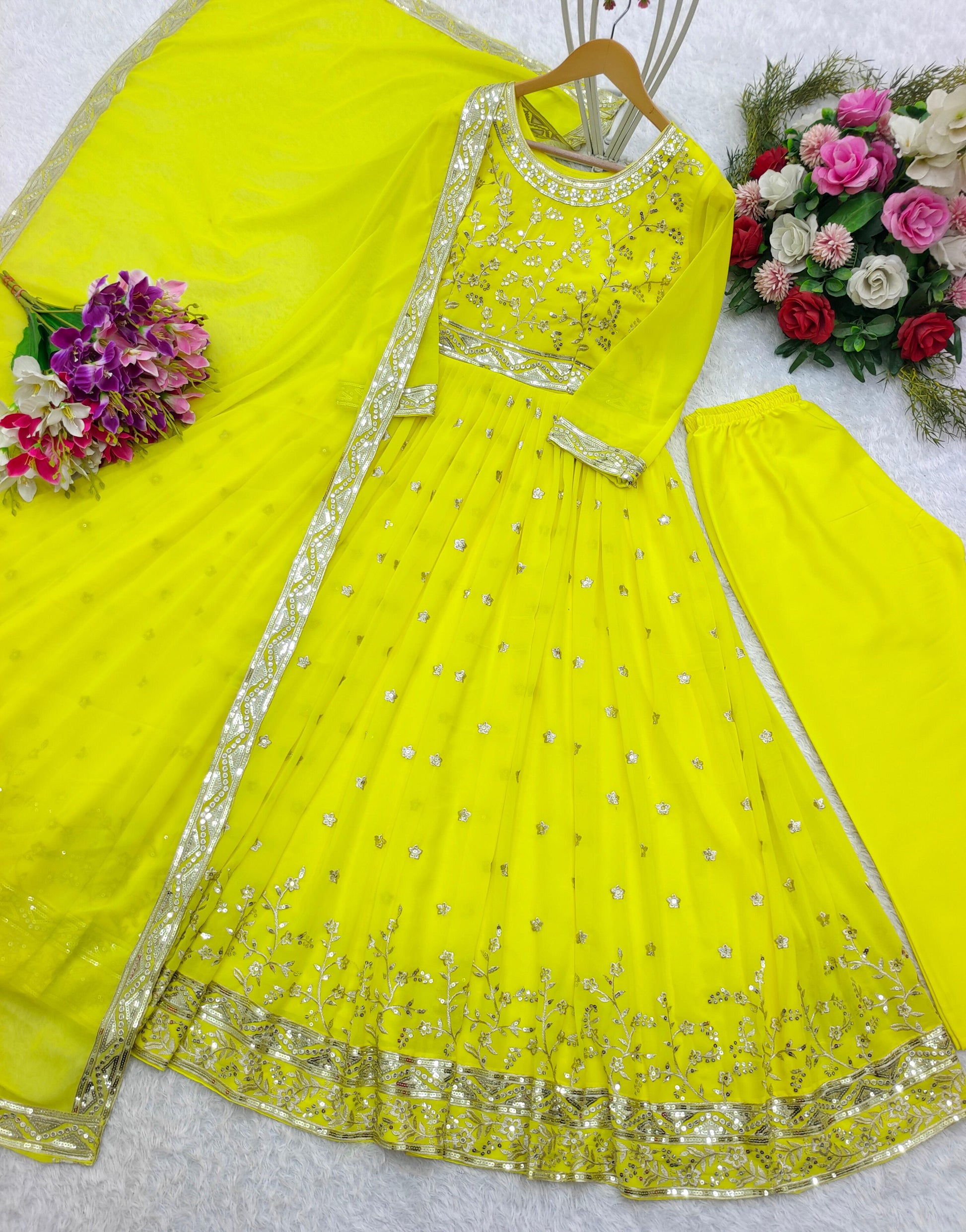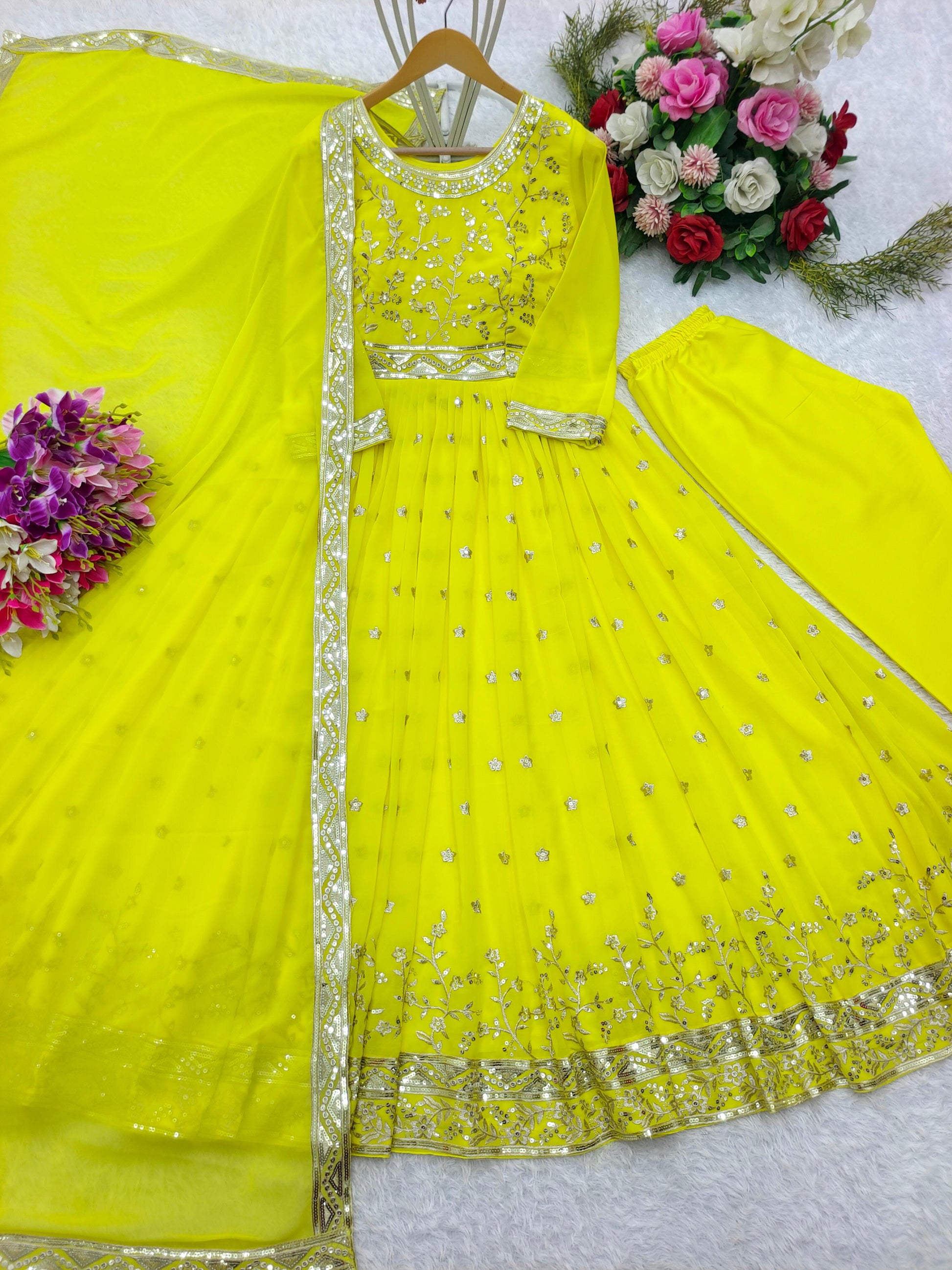 Gown Fabric : Pure Fox Georgette With Heavy Embroidery 5mm Sequence Work With Full-Sleeves With(Attached Ped)