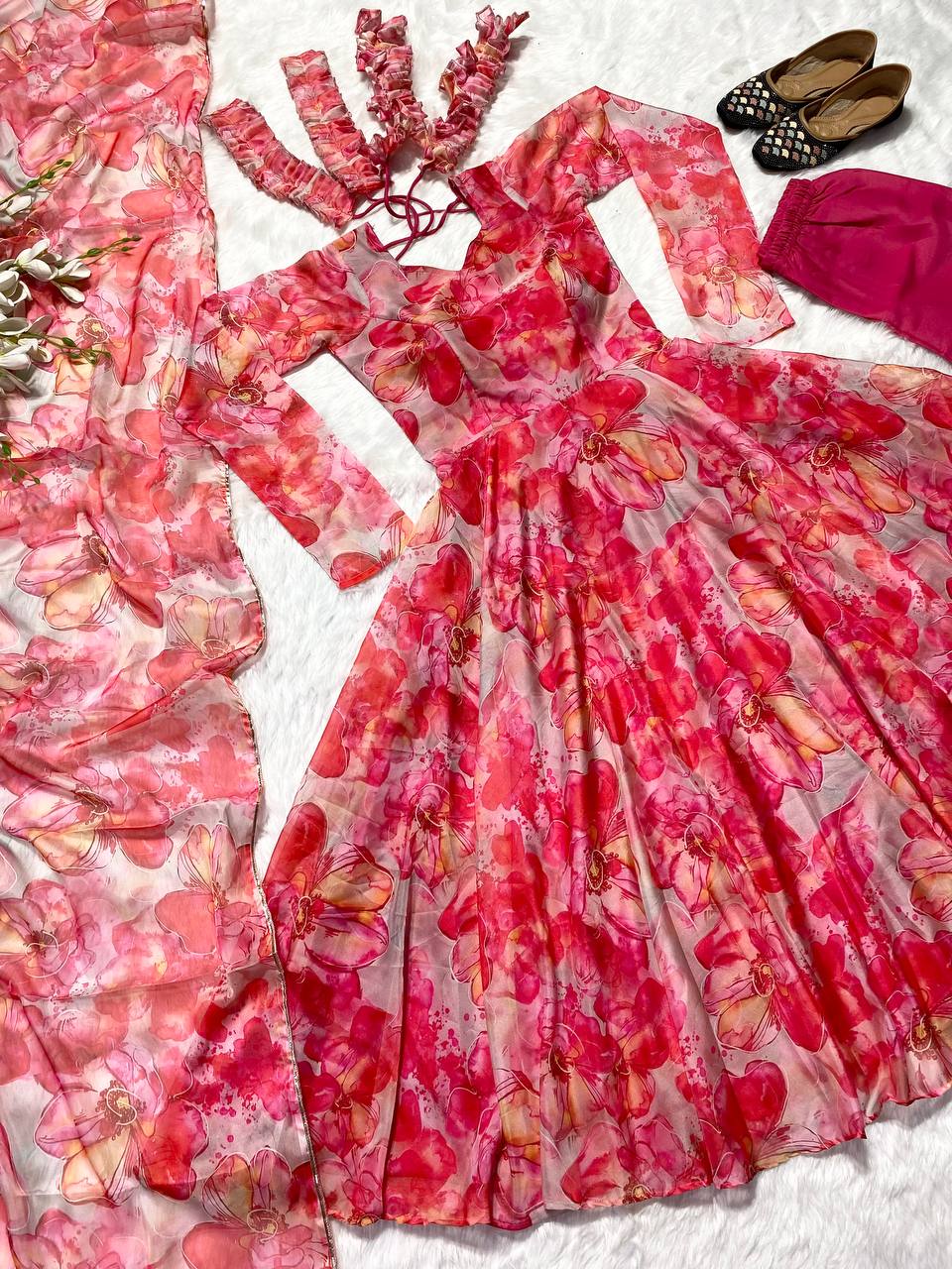 Fabric | Tabhi Organza Material With Fancy Less Work With Digital Print |