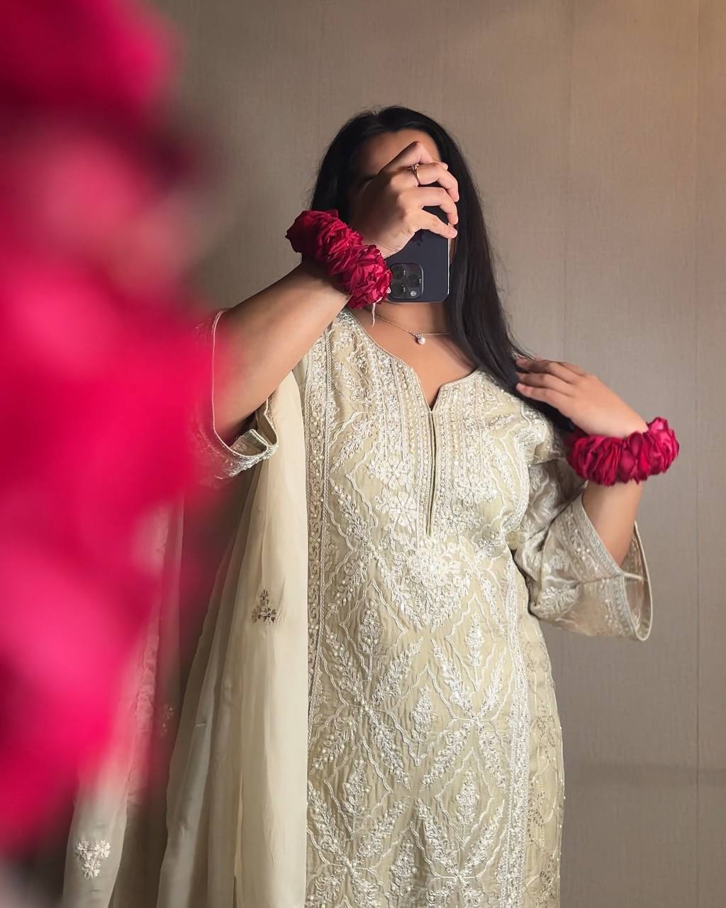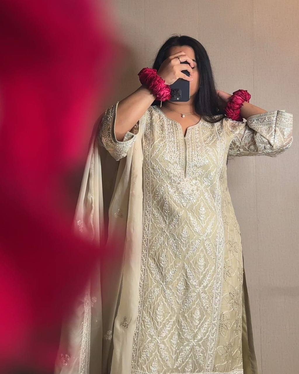 Festive Wear Off White Color Embroidery Sequin Work Salwar Suit