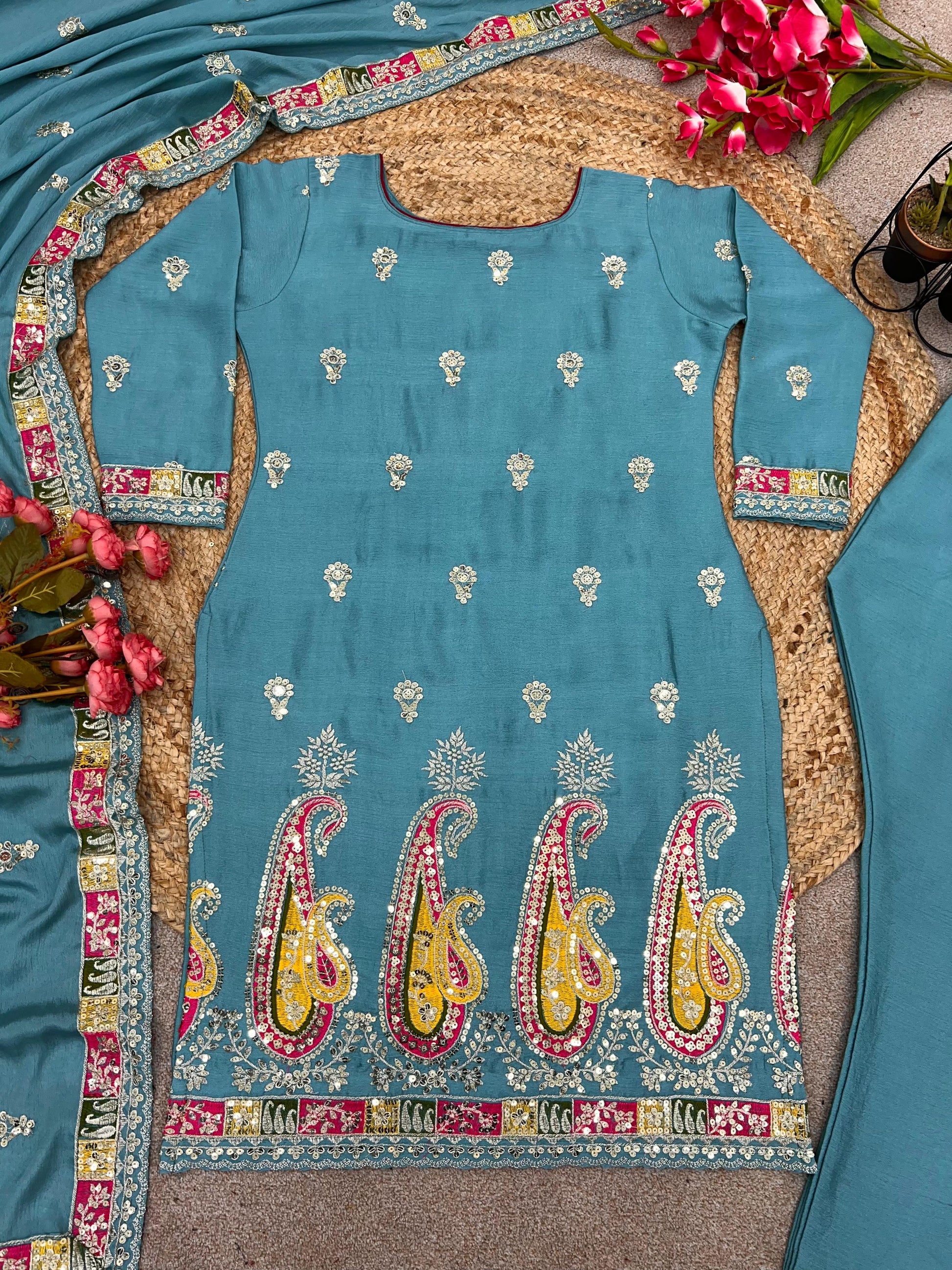 | Fabric | Pure Heavy Chinnon Silk With Embroidered Sequence Work |